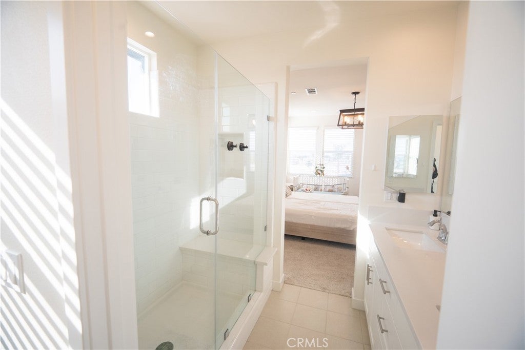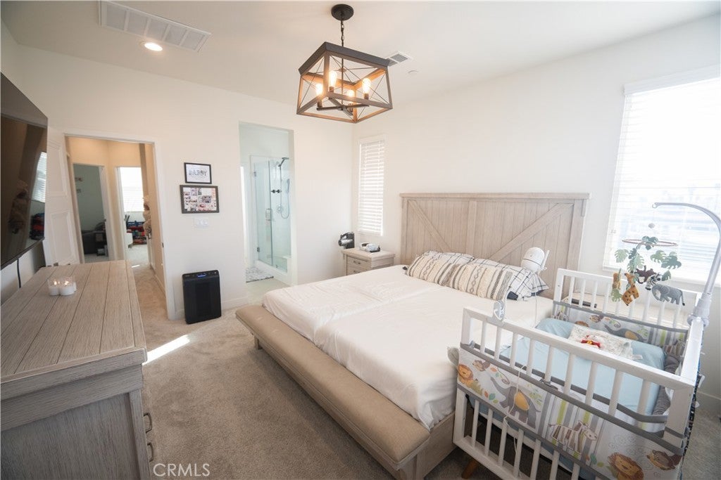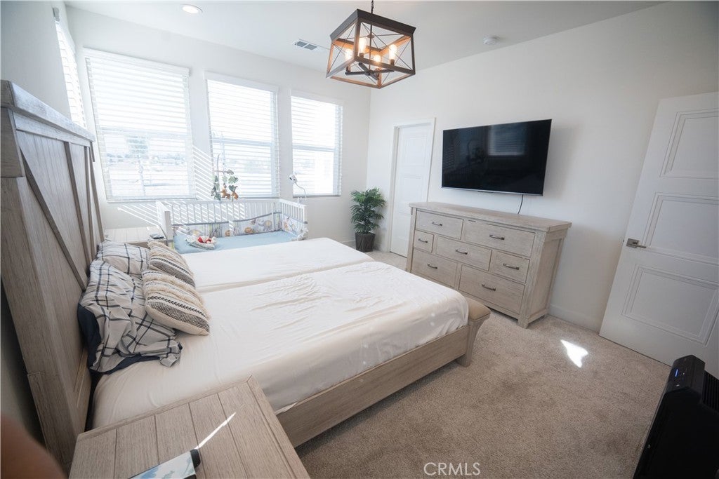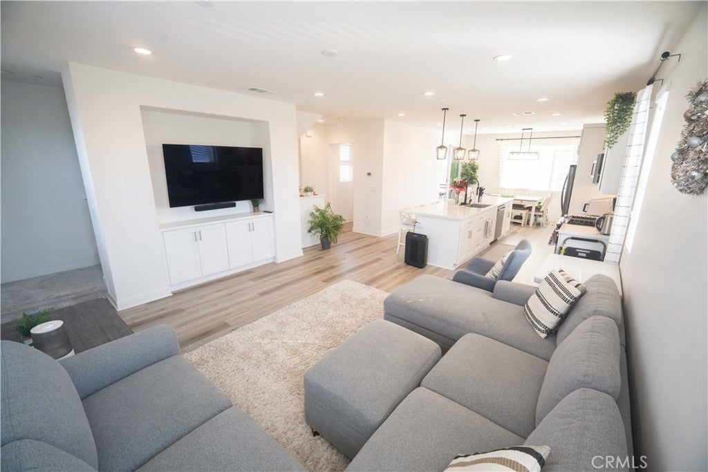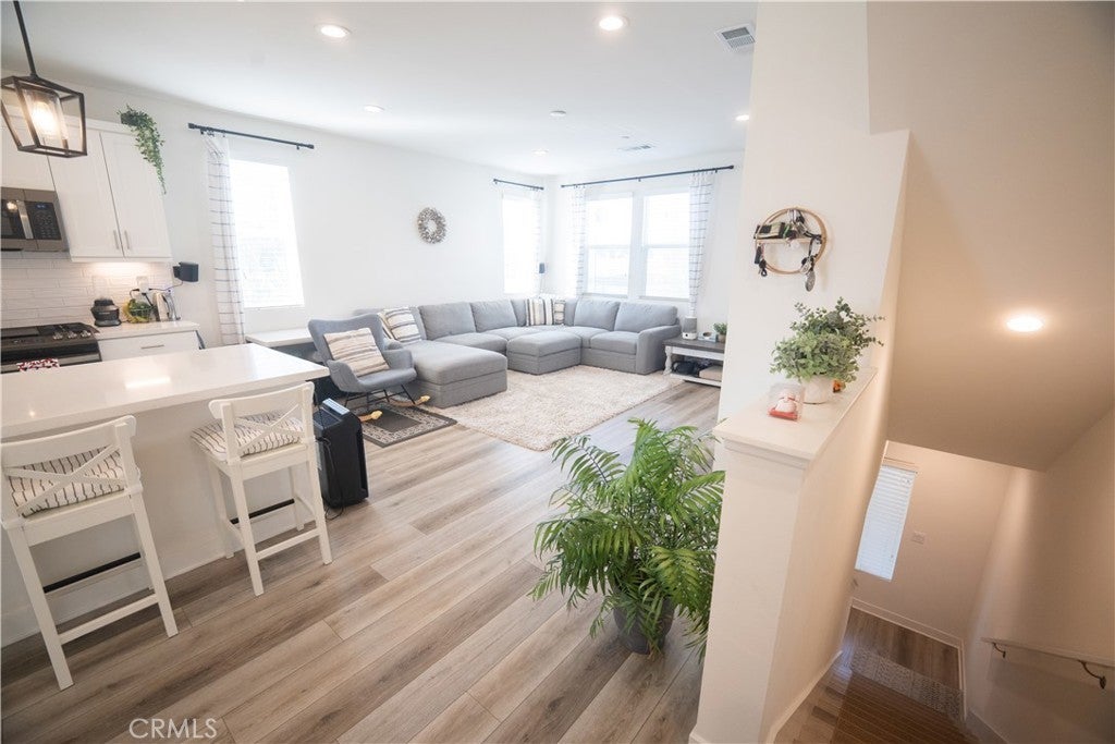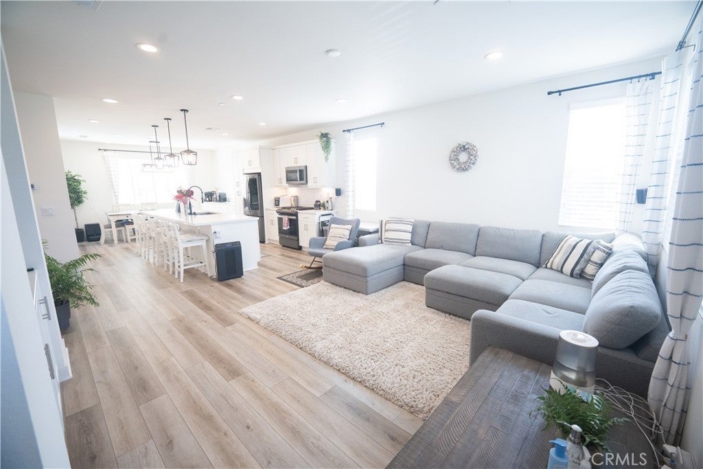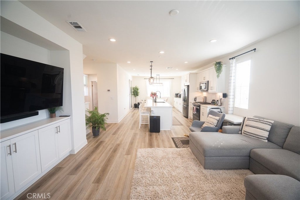 Built in 2021 and completed in 2022, this stunning modern Plan 4 townhome in a peaceful gated community, offering the largest layout in the neighborhood with only a quarter shared wall and abundant natural light. This near-end-unit features 4 bedrooms and 3.5 bathrooms, and 1,957 sqft of bright, modern living, including a first-floor bedroom with a full bath & walk-in closet-perfect for guests, office use, or rental potential. A rare private street-facing entrance enhances privacy and curb appeal. The open-concept second floor showcases a designer kitchen with quartz countertops, upgraded in cabinetry, backsplash, flooring, lighting, fingerprint-resistant stainless steel appliances, faucet, faucet basin, and a grand island, along with a convenient half bathroom perfect for guests. Plus, an exclusive double-arch balcony enhances natural light and mountain views. The third floor features an oversized primary suite with a walk-in closet and private bathroom, along with two additional bedrooms, a shared full bathroom, and hallway cabinetry. Additional highlights include fully paid solar, an epoxy-finished 2-car garage, included LG top-of-the-line washer and dryer. Community amenities feature a tot-lot, BBQ areas, a fire pit, a pet-friendly designated outdoor grass area, and a covered trellis. Low HOA, no Mello Roos, and a low tax rate. Sale is contingent upon the seller finding a replacement property.