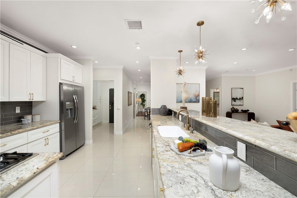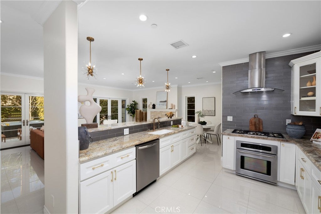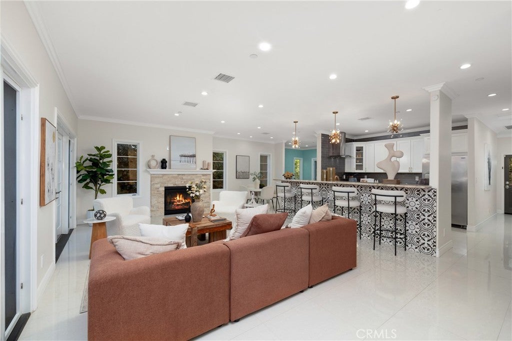 Set along a picturesque, tree-lined street in Arcadia’s coveted Lower Rancho / Hugo Reid neighborhood, this beautifully rebuilt custom residence offers the perfect blend of refined elegance, modern comfort, and exceptional livability, served by the highly acclaimed Arcadia Unified School District. From the moment you arrive, the home makes a lasting impression. A grand entry foyer welcomes you with soaring ceilings, gleaming floors, and a striking chandelier that sets the tone for the sophisticated design found throughout. Thoughtfully crafted for both everyday living and effortless entertaining, the formal living and dining spaces are filled with natural light and anchored by an eye-catching fireplace, creating an inviting yet polished atmosphere. At the heart of the home is a contemporary chef’s kitchen that seamlessly connects to the family room. Outfitted with stainless steel appliances, granite countertops, a generous breakfast bar, and a butler’s pantry, this space is as functional as it is stylish, ideal for hosting gatherings or enjoying quiet mornings at home. The flexible floor plan includes a first-floor bedroom with a full bath, perfect for guests, extended family, or a private home office. Upstairs, the luxurious primary suite serves as a true retreat, featuring a spacious walk-in closet and a spa-like ensuite with dual vanities. Two additional junior suites, each with their own bathrooms and walk-in closets, provide comfort and privacy for family or guests. A conveniently located upstairs laundry room adds everyday ease. French doors open to a beautifully landscaped backyard designed for low maintenance and high enjoyment. Whether entertaining or unwinding, the outdoor space delivers with a tiled patio, lush greenery, and a fully equipped outdoor kitchen complete with BBQ and bar seating, perfect for al fresco dining and relaxing under the Arcadia skies. Additional highlights include central air conditioning, an oversized two-car garage, and a generous lot that enhances the home’s sense of space and privacy. Ideally located just minutes from Santa Anita Park, Westfield Santa Anita, the Los Angeles County Arboretum, Hugo Reid Park, and major shopping and dining destinations, with easy access to the 210 Freeway. Impeccably maintained and truly turnkey, this exceptional home offers a rare opportunity to enjoy luxury living in one of Arcadia’s most sought-after neighborhoods.