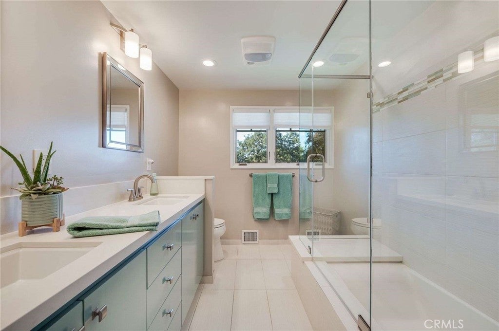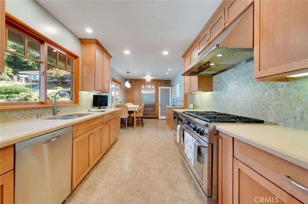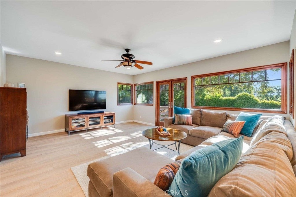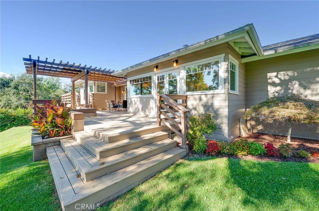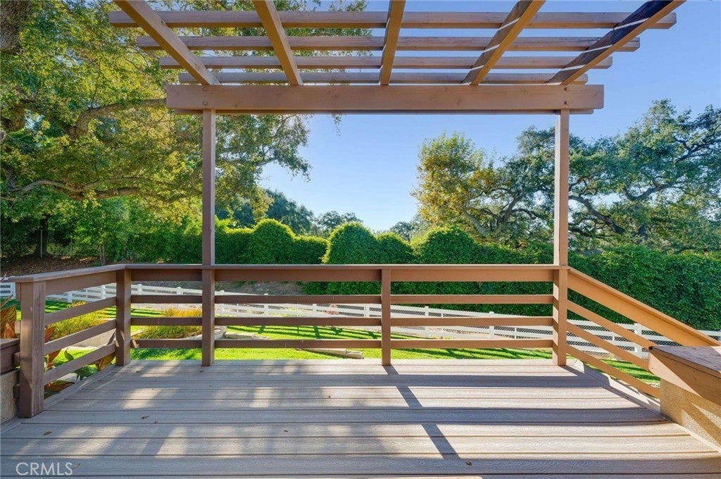 Located on a quiet cul-de-sac street in desirable North Monrovia. This private residence offers scenic views, inviting living areas and spacious outdoors, on this 16,000 sq. ft. lot. Front door entry that opens to a step down living room, with fireplace and views of outdoor patio area. This 3 bedroom 2 bath home offers a gourmet kitchen with breakfast area, quartz counter tops, ample cupboards and pantry area. Dacor dual fuel gas 6 burner stove with 2 electric ovens and built in Dacor refrigerator, that complete this easy to work in kitchen. From the kitchen step down to formal dining room with a fireplace, plenty of room for entertaining as it opens to the family room. The family room has double doors that lead out to the patio and expansive yard. Primary suite with scenic views of Bradbury Estates. His and Her closets complete with Elfa built-in systems in both closets. Full bath with double sinks, quartz counter tops. The two additional bedrooms show light and bright and both have the Elfa built-in closet systems. Over size double garage has plenty of storage, laundry area and direct access to the kitchen. Water heater is a 50gal with recycle pump. Exterior is Hardy board siding. Attic is all floored and has lighting and a attached ladder. Outside access to the work shop and additional storage. Outside shower with hot and cold water!
