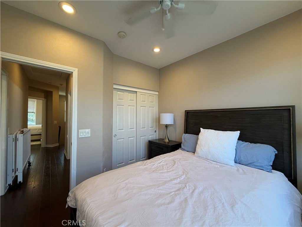 This gorgeous tri level end unit townhouse offers 3 bedrooms plus a ground floor bonus room that can serve as a fourth bedroom along with 2.5 baths and 1690 square feet of living space all filled with plenty of natural light. It was a former model home located in one of the best spots within Village Walk and features beautiful upgrades including hardwood floors granite countertops and top of the line KitchenAid stainless steel appliances. The light filled main level includes an open living area with a charming Juliet balcony perfect for morning coffee while all three upper level bedrooms offer custom Closet World organizers and the primary suite includes dual sinks and a spacious walk in closet. The attached two car garage and in unit laundry add everyday convenience and the community provides a park and playground with walkable access to Claremont Village restaurants shopping nightlife and the Claremont Colleges for easy turnkey living.