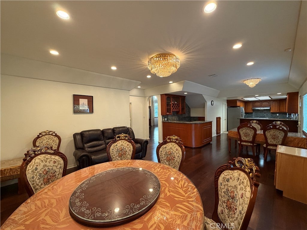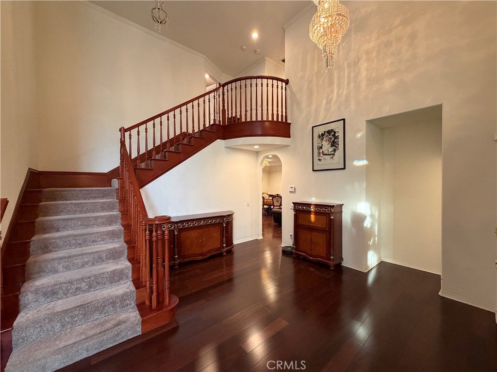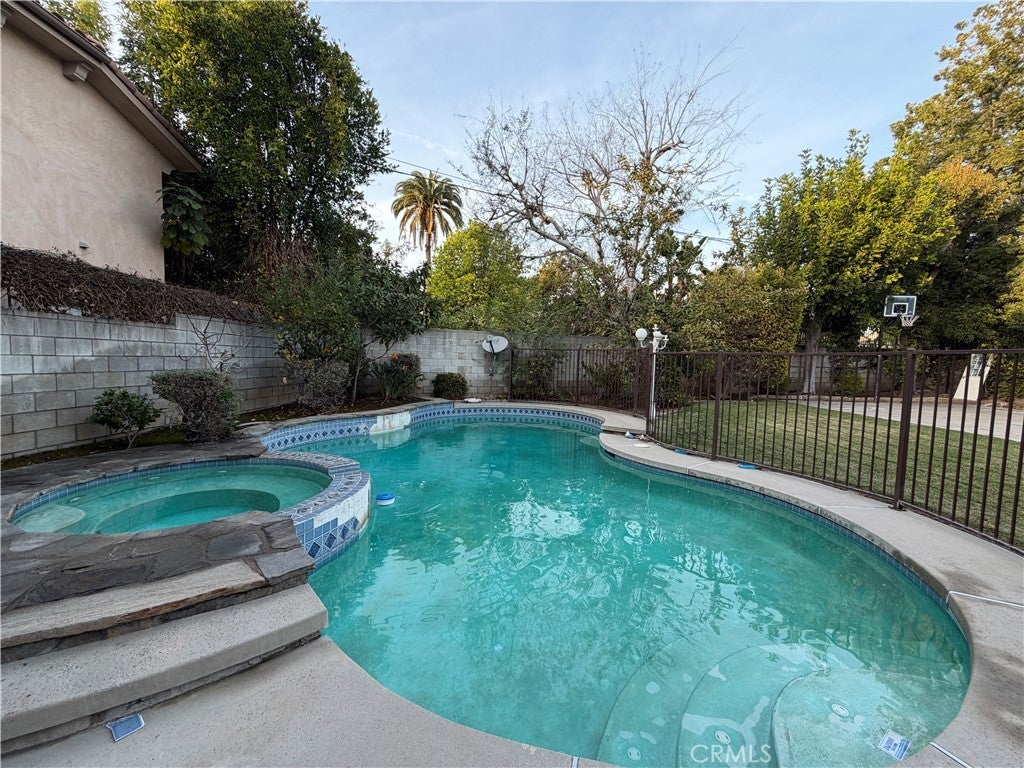 Located in a quiet and desirable North San Gabriel neighborhood within the highly acclaimed San Marino School District, this gated single family residence offers exceptional space, comfort, and lifestyle appeal. Built in 1995, the home features approximately 3,417 sq ft of living space on a 9,089 sq ft lot, highlighted by a dramatic high ceiling entry and living room filled with abundant natural light. The open kitchen is well appointed with granite countertops and a full suite of appliances, flowing seamlessly into the family room with wet bar and breakfast area overlooking the backyard. The flexible floor plan offers a total of 5 bedrooms and 4.5 bathrooms, including one bedroom and two bathrooms on the main level, ideal for guests or multigenerational living, and four bedrooms with three bathrooms upstairs. The spacious primary suite features walk in closets and a spa inspired bath with jacuzzi tub, bidet, separate toilet area, and large vanity countertops. Marble and wood flooring run throughout the home, adding timeless elegance. The private backyard is designed for both relaxation and recreation, featuring a fenced swimming pool, spa, patio, and dedicated basketball area, all enclosed by block walls and an automatic iron gate. Additional highlights include central air conditioning, a gated driveway, and a three car attached garage with additional driveway parking. Conveniently located just two blocks from Carver Elementary School, this well maintained home presents a rare opportunity to own in a peaceful neighborhood with access to top rated schools.