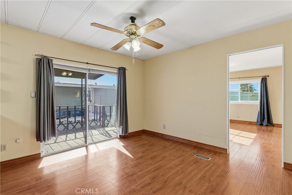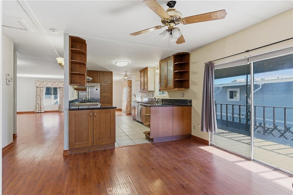 This great mobile home rests in a lovely La Verne neighborhood, and is conveniently located near the entrance of the highly sought-after Foothill Terrace 55+ senior park. The home offer a well-designed floor plan featuring a large living room with a row of windows allowing for plenty of natural light, and an inviting open dining area. The spacious kitchen has wood cabinets, granite countertops, ample cupboard space, open display shelves, tile floor, pantry, microwave shelf, double stainless steel sink, and stainless steel appliances, including the stove, refrigerator and dishwasher. The adjacent family room, with sliding glass door leading to the covered porch, is perfect for gatherings or to use as an office. The home offers a total of 2 bedrooms and 2 bathrooms, including the primary bedroom suite with a walk-in closet and a private bathroom with a large vanity, double sinks and granite countertop. Other amenities include 1,344 square feet of living space, wood laminate flooring, laundry room with washer and dryer, ceiling fans and central air and heat. The exterior space includes an inviting covered front porch, 2-car carport parking and a storage shed. The park offers two clubhouses, sparkling pool and spa, gym, library billiard room, and many enjoyable social activities.