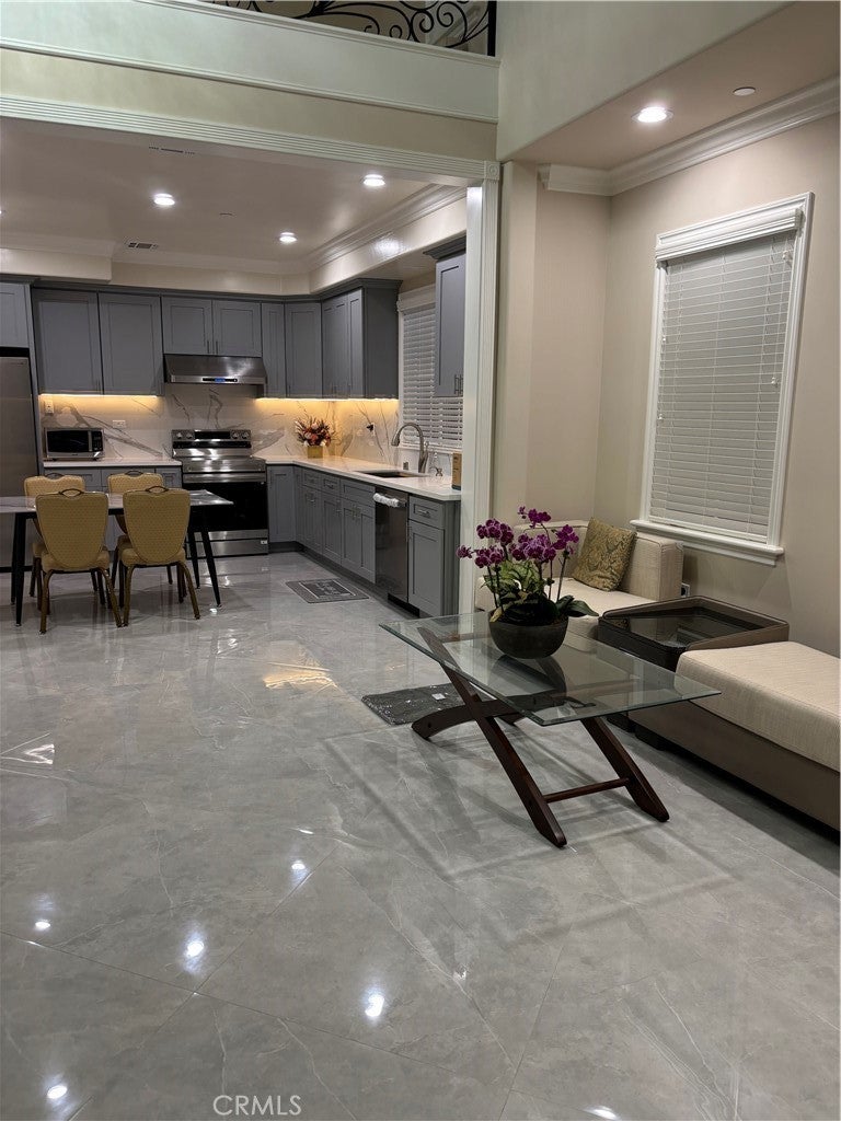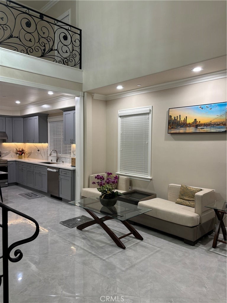 Eat-in Kitchen, High Ceilings, Open Floorplan, Quartz Counters, Recessed Lighting, All Bedrooms Up, Breakfast Area, Ceramic Counters, Crown Molding, Furnished, Loft, Storage, Two Story Ceilings
