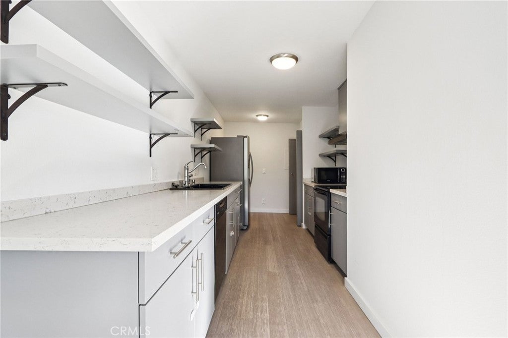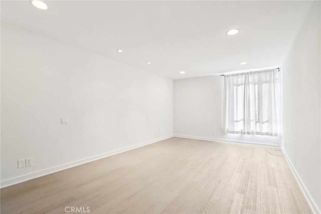 This light-filled modern condo is ideally located in the heart of Beverly Hills. A formal entry opens to a spacious living room with a wood-burning fireplace and floor-to-ceiling windows, seamlessly flowing into the dining area and a sleek galley kitchen with stainless steel appliances, updated countertops, and ample storage.Bamboo flooring, recessed lighting, and a full guest bathroom enhance the home’s inviting layout. The residence offers two well-sized bedrooms, including a primary suite with a walk-in wardrobe closet and an en-suite bathroom with dual sinks. Situated on one of 90210 most desirable tree-lined streets and moments from world-class dining, shopping, and entertainment, this secure, well-maintained building completes a move-in-ready opportunity in the coveted Beverly Hills school district.