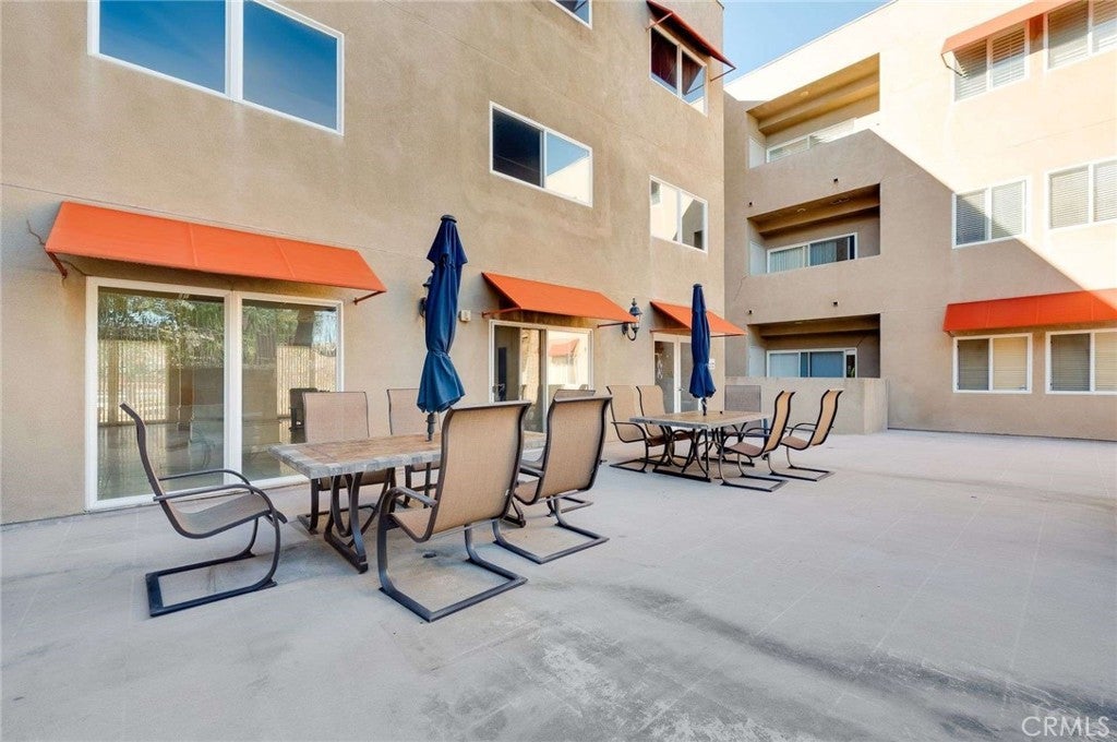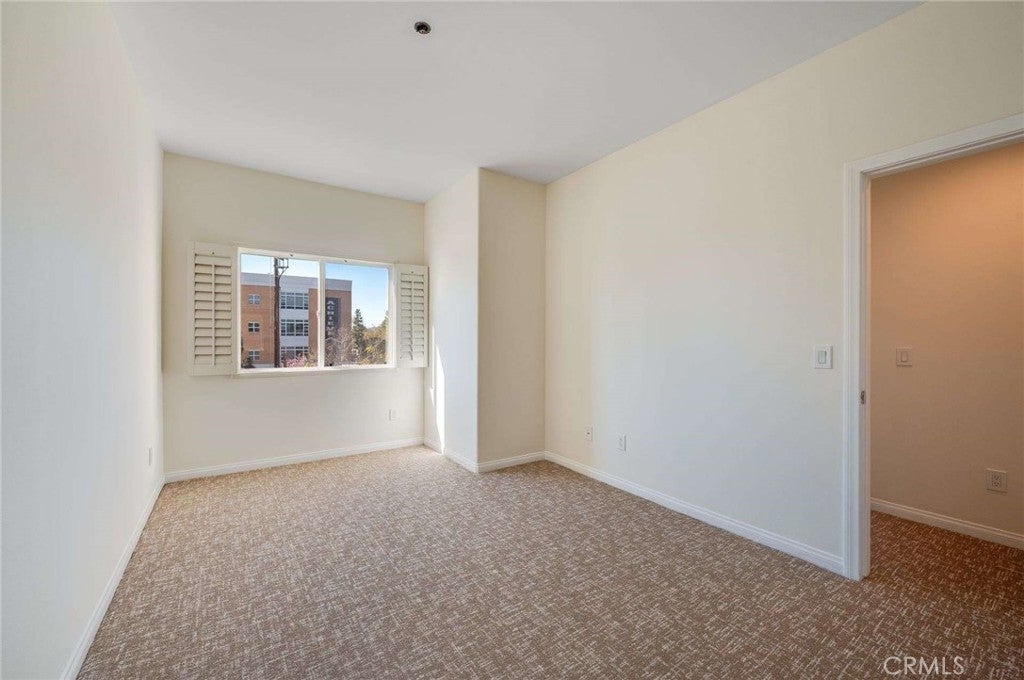 Top-floor condominium located adjacent to CSUN with serene treetop views. This light and bright unit features fresh interior paint and newer carpet. The open-concept kitchen overlooks the living room and dining area. Kitchen is equipped with stainless steel appliances, including a built-in microwave, refrigerator, dishwasher, recessed lighting, and ample cabinetry. The living room offers crown molding and sliding glass doors to a private balcony, perfect for enjoying the peaceful treetop setting. Primary bedroom offers a walk-in closet and an en-suite bathroom with a separate tub and shower. Two additional bedrooms feature plantation shutters and mirrored closet doors. A full hallway bathroom includes tile countertops and flooring, along with a convenient guest bathroom for added functionality. In-unit laundry closet includes a stackable washer and dryer. Community amenities include a pool, built-in BBQ areas, fitness center, and a welcoming lobby sitting area. This unit includes two tandem parking spaces. An ideal opportunity for owner-occupants or investors seeking a prime Northridge location near CSUN.
