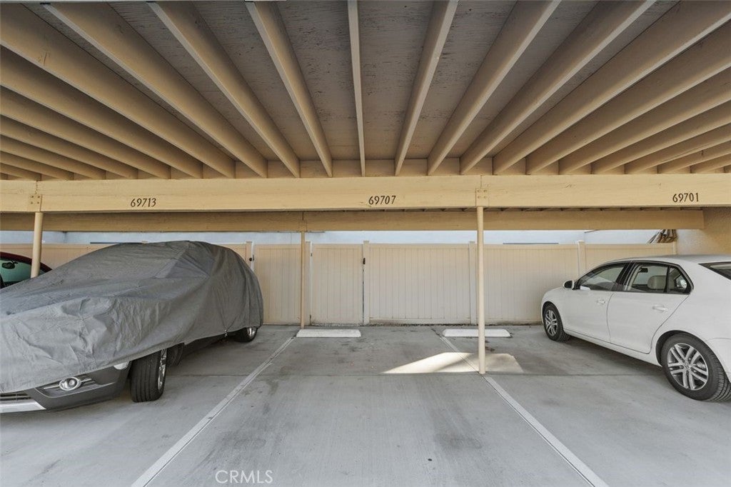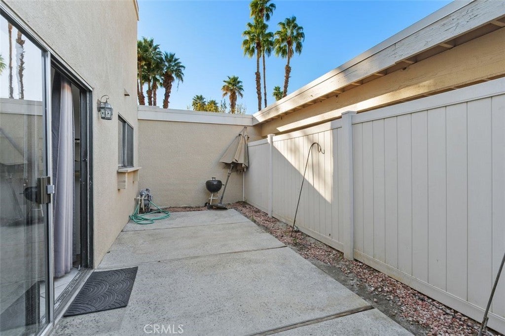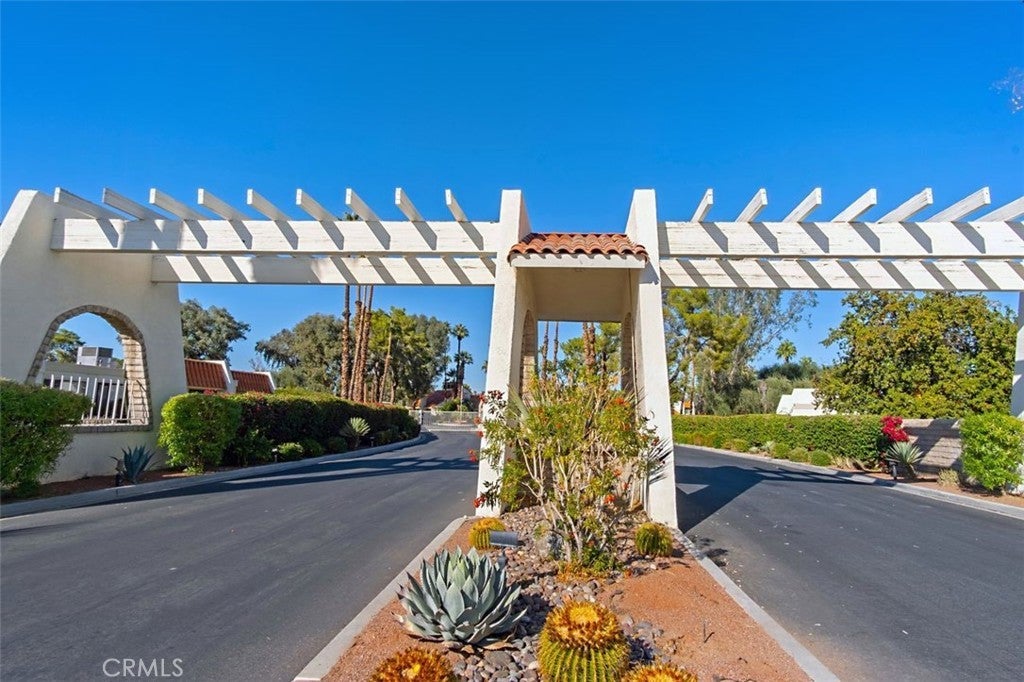 Welcome to this inviting 3-bedroom, 2-bath townhome located in the desirable gated community of Rancho Mirage. Surrounded by beautifully maintained grounds, lush greenbelts, and mature landscaping, this home offers comfort, convenience, and peaceful resort-style living in the heart of the desert. The spacious living room features vaulted ceilings, creating an open and airy atmosphere filled with natural light. The thoughtfully designed floor plan includes a downstairs primary bedroom, offering ease and privacy. Upstairs are two additional bedrooms and a full bathroom. The kitchen offers ample cabinet space, a breakfast bar, and stackable washer and dryer hookups for added convenience. Adjacent to the kitchen is a separate dining area, ideal for entertaining or everyday meals. Central air and heat ensure year-round comfort. Step outside to a private, enclosed patio, perfect for relaxing, outdoor dining, or enjoying the desert sunshine. The unit also includes a one-car carport. Residents of this well-maintained community enjoy exceptional amenities including five sparkling swimming pools and spas, tennis and pickle ball courts, and a clubhouse, all within a secure gated setting. Ideally located close to shopping, dining, golf courses, and Eisenhower Medical Center, and just minutes from downtown Palm Springs and the Coachella Valley, this townhome is perfect as a full-time residence, seasonal retreat, or investment opportunity. HOA dues cover internet, trash, exterior insurance, roof maintenance, and common area upkeep, providing excellent value and peace of mind.