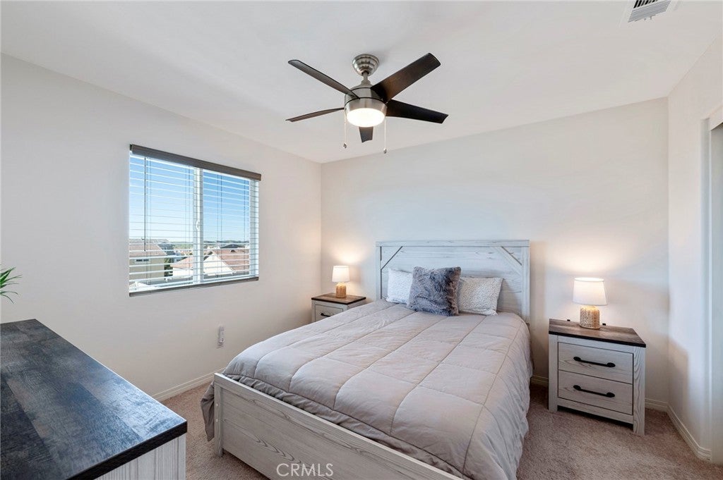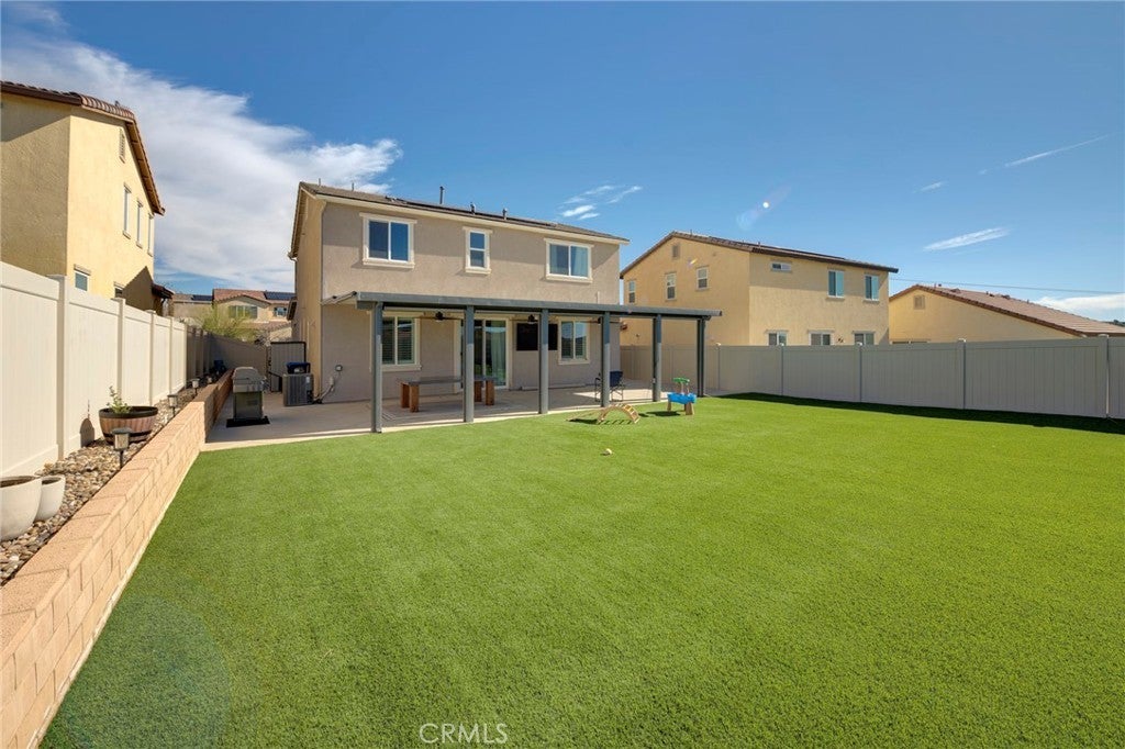 Major price reduction. Exceptional opportunity to own a nearly new, move-in ready home with owned solar and premium upgrades in one of Beaumont’s most desirable communities. This immaculate 4-bedroom, 3-bath residence, built just five years ago, shows true pride of ownership and presents like a model home. Thoughtfully designed with comfort and functionality in mind, the home features a bright open-concept floor plan and a spacious kitchen with a large center island, generous cabinetry, and stainless-steel appliances, creating the perfect space for daily living and entertaining. Upstairs bedrooms offer beautiful scenic views, while the home includes numerous valuable upgrades such as owned solar panels, synthetic turf, ceiling fans throughout, a covered front porch roof, and a dedicated EV charger. Every detail reflects careful maintenance and thoughtful improvements. The professionally upgraded backyard is designed for both relaxation and entertaining, featuring a covered patio with ceiling fans, fire pits, and an inviting outdoor setting with peaceful views. The low-maintenance landscaping allows you to enjoy the space year-round with ease. Located in a desirable community with low HOA fees, residents enjoy access to two pools, a jacuzzi, recreation center, and a community park with basketball and volleyball courts, playgrounds, picnic areas, and a community EV charging station. Conveniently located near schools, shopping, parks, and major commuter routes, this home offers the ideal combination of modern comfort, lifestyle amenities, and outstanding value.