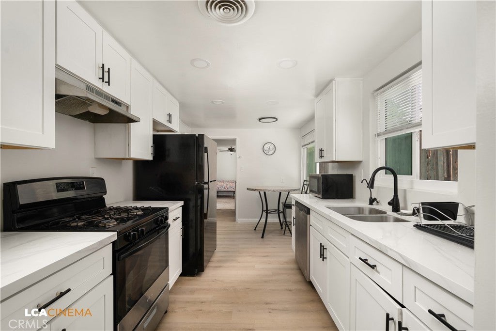 Curb Appeal. This beautiful 5 bedroom 2 bath home in a great area in Bakerfield is calling you. It boasts openness and design for the new owner. It has been recently renewed. With a beautiful living room fireplace, all new windows and window treatments, new plank flooring, a tankless water heater, alarm/video system, newer HVAC system and a host of other amenities, it is a great move in ready home. Seller is extremely motivated. Send your offer.