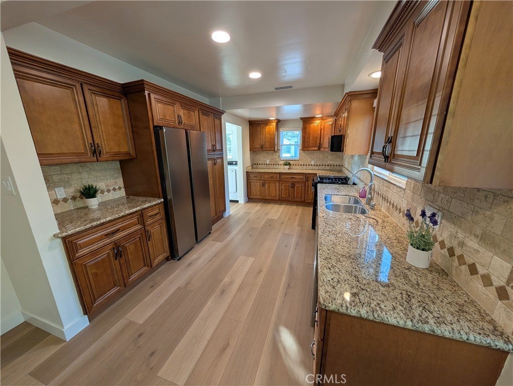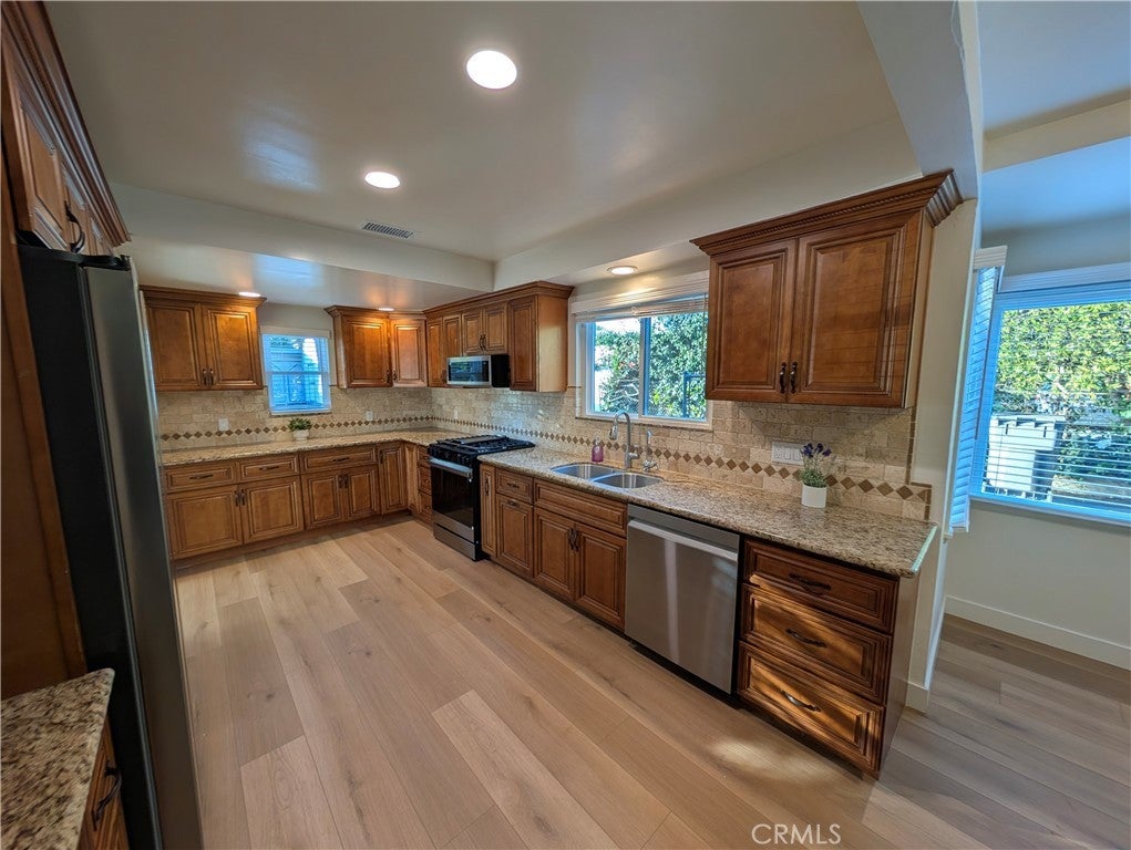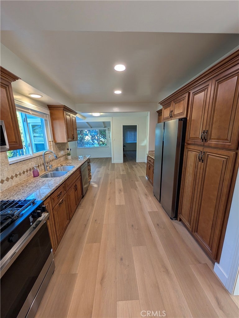 Welcome to this beautifully updated residence located within the highly sought-after Arcadia School District. Resting on an expansive half-acre flat lot (25,485 sq. ft.), this 2,423 sq. ft. home seamlessly blends comfort, style, and functionality—perfect for today’s modern lifestyle. Step inside to a formal entry that opens to a spacious living room, inviting family room with fireplace, and a versatile den ideal for a home office or study. The family kitchen features granite countertops, brand-new stainless steel appliances, and a generous dining area perfect for gatherings and entertaining. This home offers 4 bedrooms and 2 bathrooms, including one that has been completely rebuilt with modern finishes, while the second features a separate tub and shower for added convenience. Throughout the home, you’ll find new vinyl flooring, fresh paint, recessed lighting, and high-quality 2-inch wood blinds, creating a clean and sophisticated atmosphere. Enjoy California living at its best with a covered back patio overlooking a large, fenced pool, perfect for relaxing or hosting outdoor events. Additional amenities include existing solar panels that help offset electricity costs, a California basement, large Tuff Shed, spacious 2-car garage, and a workshop adjacent to the garage. The extra-long driveway accommodates 15+ vehicles, providing both privacy and convenience. This exceptional property combines timeless charm with modern updates and sits in a prime Arcadia location near top-rated schools, shopping, dining, and parks.