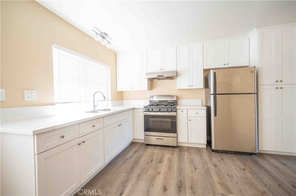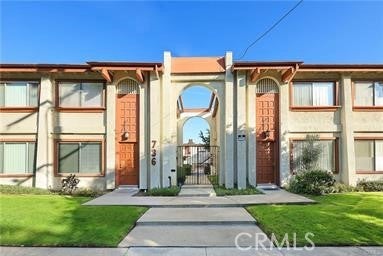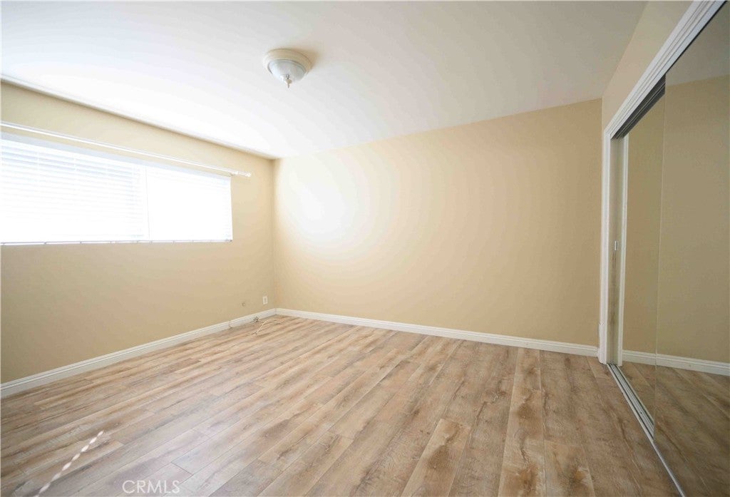 This cozy, updated upper-level condo overlooks a peaceful courtyard and features 2 bedrooms and 1 bathroom. The remodeled, spacious kitchen showcases white cabinetry, quartz countertops, and a dedicated breakfast area. The updated bathroom includes a white vanity with a quartz countertop. Waterproof vinyl flooring runs throughout the unit. Additional features include central air conditioning and heating. The property offers two assigned parking spaces, one of which is covered, along with access to a community laundry room. Conveniently located within a short distance to the golf course, Almansor Park, and schools, and close to restaurants, supermarkets, and shops. Move-in ready and ideal for comfortable living.