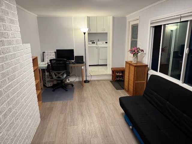 Bright & beautiful home. Living room with fireplace, dining room, 2 bedrooms and 1 bath, plus a den that could be used as an office or third bedroom, kitchen with quartz countertop, vinyl floors, tile floors in kitchen, dining room and bathroom, Laundry machine & dryer included and by the kitchen. Two carports, low maintenance backyard, front yard with lemon tree. Built in Ethernet to have home networking, built in drinking water filter under the kitchen sink. Photos were taken while it was furnished, currently property does not have furnishing. Ready to move in.