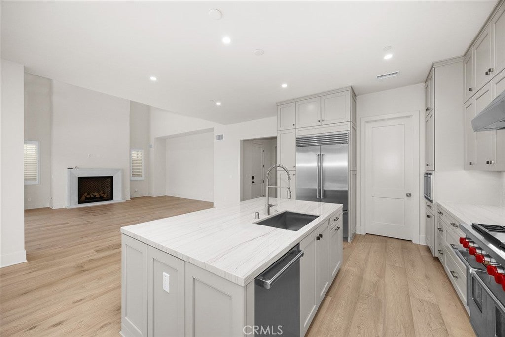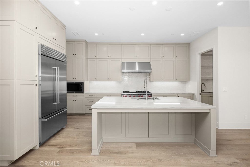 Nestled on a single loaded street within the prestigious gated enclave of The Groves at Orchard Hills, this newer home offers an exceptional blend of privacy, luxury and functionality. Appointed with $300,000 in designer upgrades, this residence features 4 bedrooms, 4.5 baths, with 3,361 sqft living space on a 5,130 sqft lot, presenting avocado orchard view surrounded by nature. Walking through the front door, you’ll pass by the downstairs bedroom and full bath with upgraded shower wall, flooring and floating mirror. Louvre Collection Aged French Oak hardwood throughout the first floor. Spacious living room with high ceiling and cozy fireplace, sliding door to a private and low maintenance backyard with trees, flowers and artificial grass. Highly upgraded gourmet kitchen with a large island, designer color cabinets, quartz countertop with beautiful movement, and selected backsplash. Top-of-the-line appliances like Sub Zero 42'' French door built-in refrigerator, Wolf 48'' Stainless steel 6 burner gas stove with griddle, double oven, microwave, single basin sink, and luxury faucet. Prep kitchen with Wolf stove, sink, custom shelf and glass French door to the yard, better than the model! Dining room with picture window. Upstairs you will find an enclosed loft, perfect for a library/den/family room. Expansive primary bedroom, bathroom with double sinks, free-standing tub, shower room with wall-to-wall tiles, two walk-in closets and storage cabinets. Next, you’ll encounter 2 en-suite guest bedrooms with amazing avocado orchard views, offering relaxation and privacy. One of the guest rooms has a private balcony. The large laundry room is designed to feature a deep sink and ample cabinet storage space. Attached two-car garage with epoxy flooring. Paid off solar. Close to award-winning Tustin schools. Resort-style community amenities include swimming pools, club house, tot lot, barbecue and picnic table, tennis court, basketball court, etc. This house is a must see!
