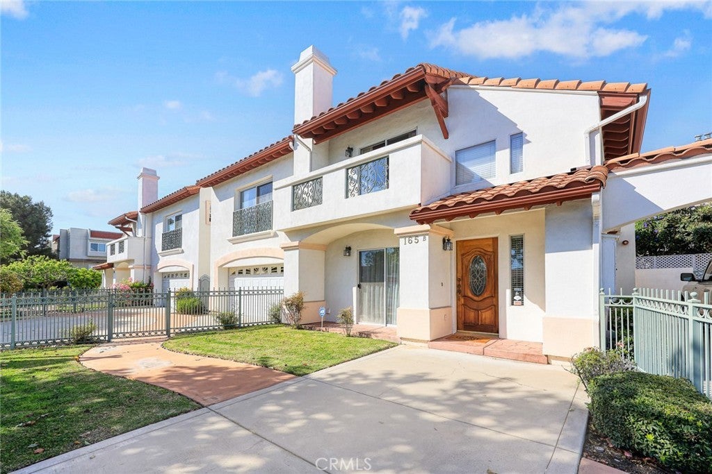 Location, Location, Location! Experience sophisticated living in this desirable South-facing PUD-style home, tucked away in an exclusive gated complex of only three units. Offering a rare combination of privacy and value, this home features a low HOA of just $250/month and sits within the prestigious Arcadia School District. The main level is designed for both comfort and elegance, featuring a bright, sun-drenched living room anchored by a cozy fireplace, a formal dining room perfect for hosting, and a well-maintained kitchen. Additionally, a main-floor bedroom provides the perfect setup for guests, a home office, or multi-generational living. The upper level boasts a spacious, light-filled loft—ideal for a family room or entertainment space—alongside a versatile den that can easily be converted into a 4th bedroom. The grand master suite is a true sanctuary, featuring a private balcony, marble countertops, a soothing spa tub, and a separate shower stall. Outside, enjoy a charming front yard and a low-maintenance private backyard. Strategically located near premier shopping, dining, and the 210 freeway, this home offers the best of Arcadia in a secure, intimate setting.