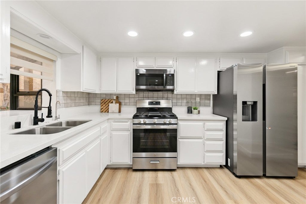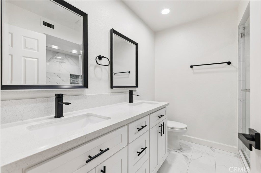 A rare combination of updates, space, and location. This beautifully remodeled two-bedroom, two-bath condo offers 1,222 sq ft of comfortable, move-in ready living on the first floor of a quiet, gated community. Thoughtfully updated throughout, the home features a modern kitchen and two fully renovated bathrooms, including a spacious primary suite with a dual-sink vanity. Both bedrooms are generously sized, offering flexibility for a home office, nursery, or guest room. In-unit laundry adds everyday convenience, and two dedicated garage parking spaces are included. The first-floor location means easy access in and out — no elevators or waiting. Residents enjoy amenities that truly enhance daily living, including a sauna, fitness center, and a large recreation room perfect for gatherings. The gated entry provides added privacy and peace of mind. Centrally located with convenient access to major freeways, public transit, shopping, dining, and everyday essentials, this home makes commuting and day-to-day errands simple. With stylish updates, strong amenities, two parking spaces, and a location that works for just about any lifestyle, this is a home worth seeing in person.