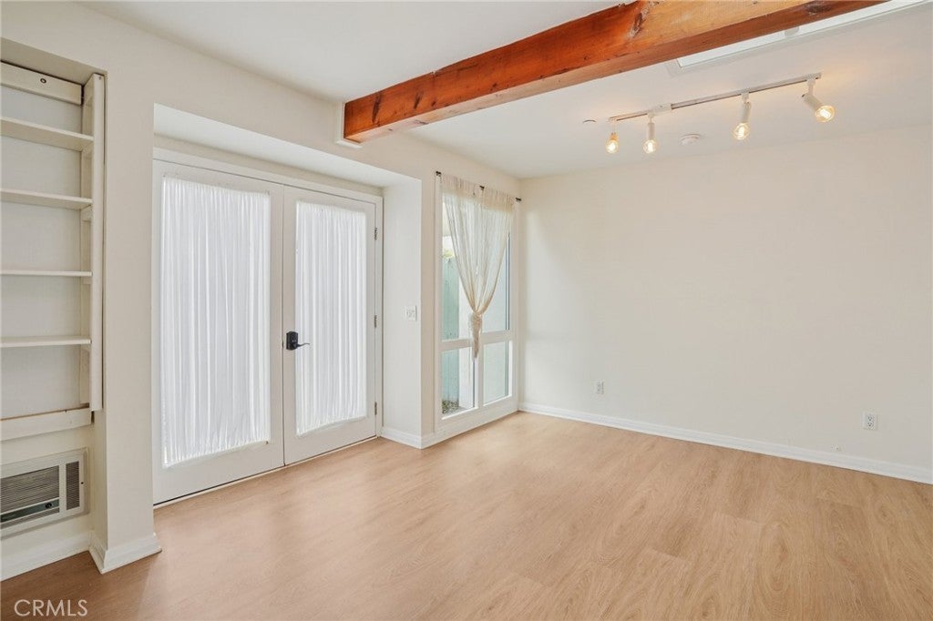 Charming 4bed/3Bath single-level home in the heart of Beverly Hills, inspired by the English countryside. This light-filled home features newer hardwood floors, curved archways, a gas fireplace, bay window, and an open-concept living and dining area. The updated kitchen offers stainless steel appliances, quartz countertops, tile flooring, decorative backsplash, and cozy office area with access to the side yard. Two secondary bedrooms share a full hallway bath, while the primary suite includes a walk-in closet, en-suite bath, and direct access to the backyard. The spacious backyard is ideal for entertaining, complete with mature landscaping, a covered patio, storage shed, and a permitted back house with exposed wood beams and a full bath. Additional features include newer HVAC, fresh interior and exterior paint, stackable washer and dryer for the main house and a separate laundry room for the back guest house. Located in the Beverly Hills School District and close to shopping and dining on Pico and Olympic Blvd.