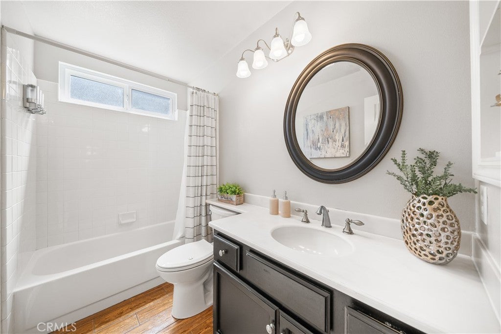 EXCEPTIONAL & TURN-Key 4 bedroom/3 bath home located in the highly desirable community of Chino Hills! NO HOA!!! Boasting great curb appeal as you arrive, neat and tidy landscape and there is also gated RV parking for anyone with an RV or recreational vehicle, a huge bonus! As you enter the home you will appreciate the dramatic soaring ceilings in the entry that lead to the living room & formal dining space. The kitchen remodel is exceptional! The kitchen opens to the family room which enjoys a cozy (gas) fireplace. Access from family room leads to the backyard and covered patio. Convenient downstairs bedroom with 3/4 downstairs bathroom, Great for elderly or family visits. Also come with a separate laundry room at the first floor. Master bedroom and 2 other good size bedrooms are all located upstairs. Master suite feels very spacious and light. It has 2 closets, one in the bedroom and other located off the master bath. Home provides an abundance of storage both upstairs and down. Secondary bedrooms are nicely sized and one has a private balcony facing the street. Low maintenance vinyl fencing looks clean and sharp in the side and backyard. Backyard is private and with large covered patio, 1/2 sport court and lush lawn area. Attached 3 car garages, plenty storage space. Upgraded wood tile plank flooring in many area, easy to clean and maintenance, shutters as well. Great quiet neighborhood at a good price.