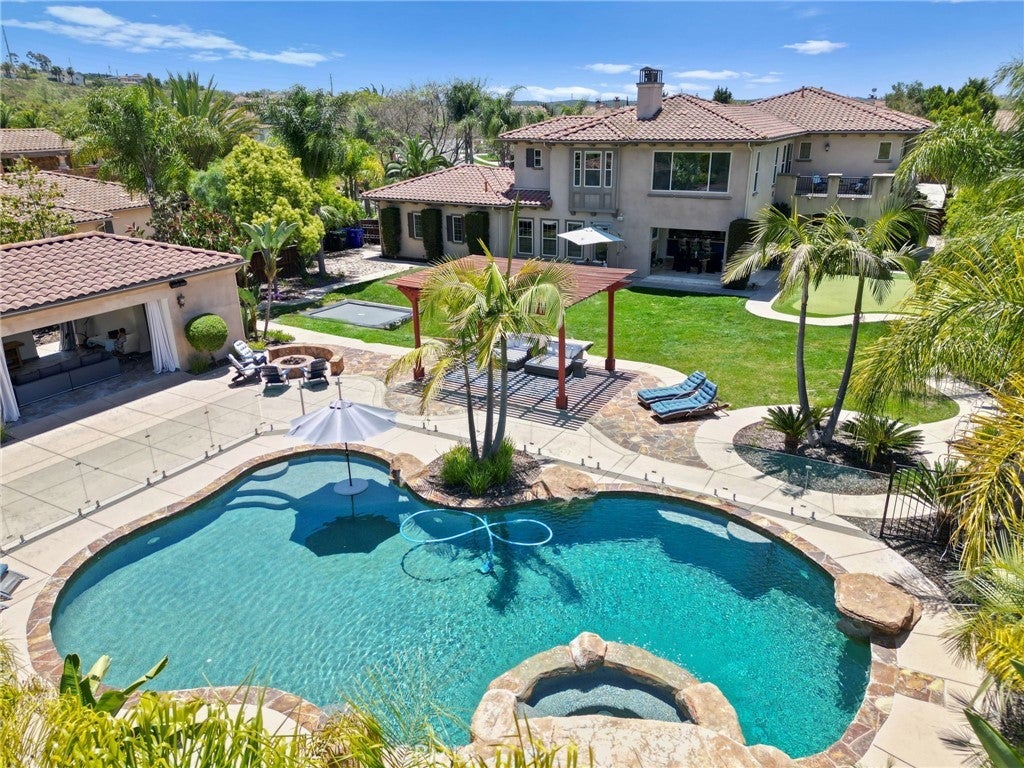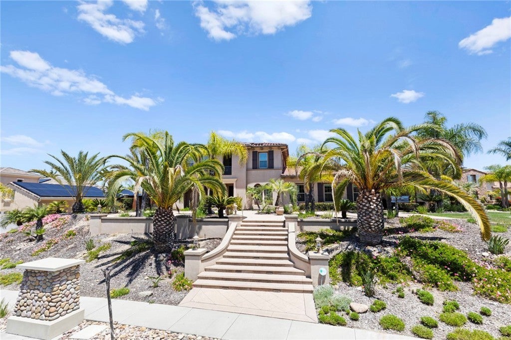Welcome to your private tropical oasis in the prestigious Sanctuary at Stonebridge Estates. This stunning estate sits on an expansive, beautifully landscaped lot and is an entertainer’s dream. The resort-style backyard features a sparkling pool and spa, fully equipped outdoor cabana, manicured lawns, putting green, raised garden planters, fire pit, glass pool fencing, and owned solar. Inside, enjoy a chef’s kitchen that opens to spacious living areas, a first-floor guest suite, and an upstairs primary retreat with mountain views, dual walk-in closets, spa-like bath, and private sitting area. Over $250K in recent upgrades include soundproofing between floors, pocket sliding doors in the dining room, crown molding, casita remodel, full interior paint, and more. A true blend of luxury, comfort, and indoor-outdoor living.