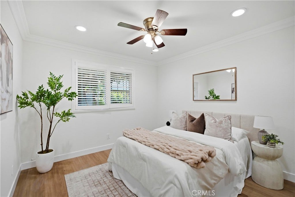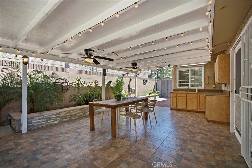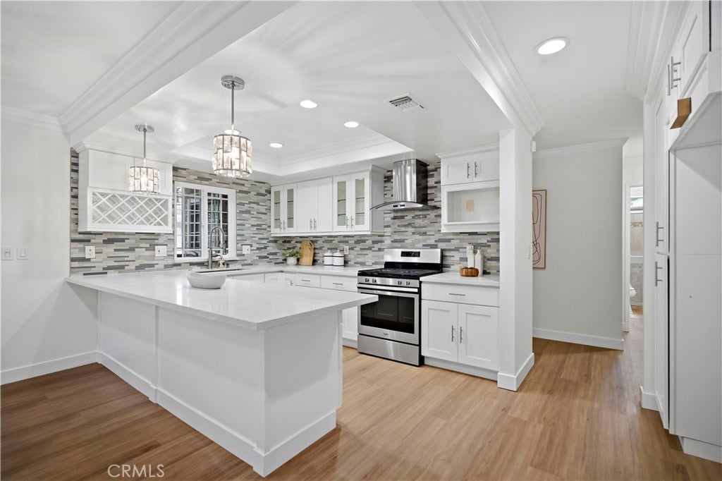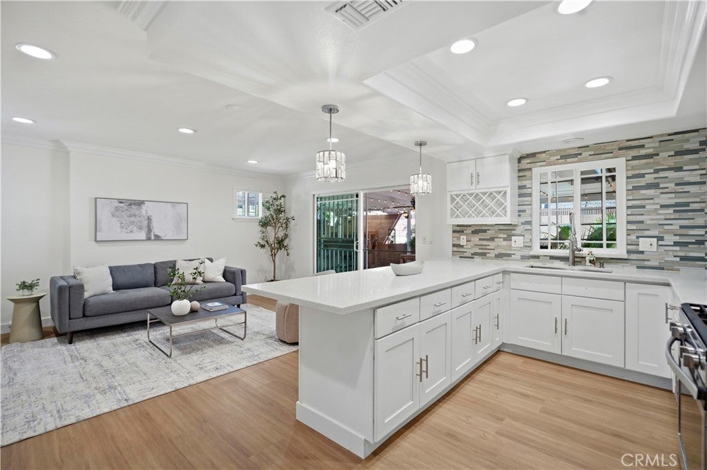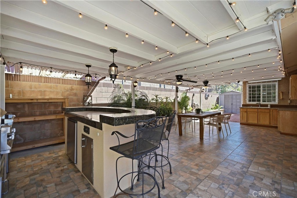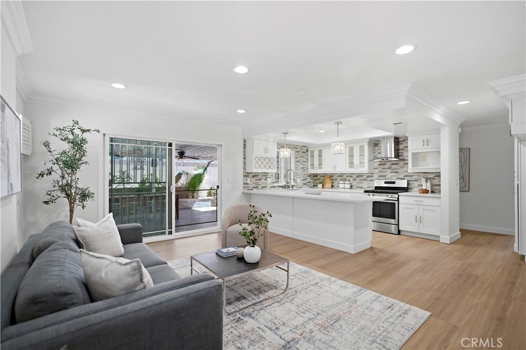 Beautifully maintained single-story home with great curb appeal, located on a quiet cul-de-sac close to shopping and dining. The property features an automatic front gate, a front yard finished with artificial turf, and a tile entry for attractive, low-maintenance landscaping. The interior has been freshly painted and features luxury vinyl plank flooring throughout. An open and inviting family room flows into the kitchen, which offers quartz countertops, a center island, and ample space for everyday living. The home includes a spacious layout with a primary bedroom and updated bathroom, along with two additional well-sized bedrooms. The custom covered patio, finished with tile flooring, features two refrigerators, a sink, and a gas BBQ/bar with built-in cabinets, making it ideal for entertaining. The backyard offers a hot tub and a variety of fruit trees along the side yard.. The garage includes additional built-in cabinets for extra storage. Move-in ready with comfortable indoor-outdoor living.