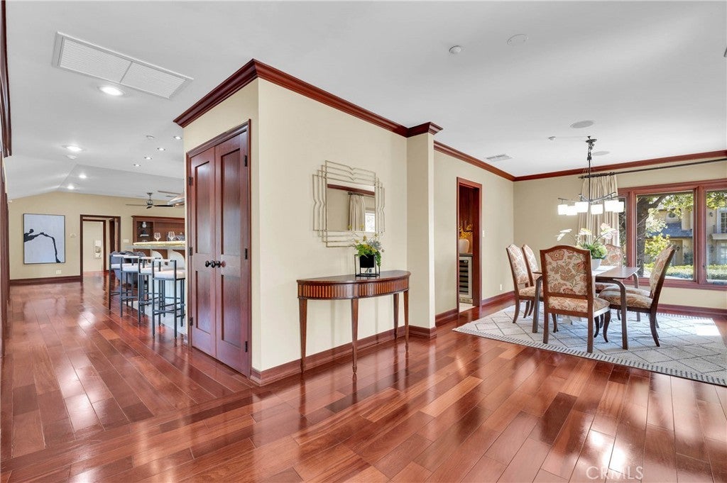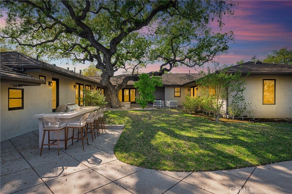 Exquisite Resort-Style Living in Prestigious Arcadia , Nestled in one of Arcadia’s most prestigious and highly sought-after neighborhoods, within an award-winning school district, this beautifully upgraded and meticulously maintained residence offers an exceptional blend of elegance, comfort, and refined living.Outside a spacous circular driveway offers both convenience and impressive curb appeal, welcoming you home in style This stunning home features 4 bedrooms and 4 bathrooms, thoughtfully designed to provide both functionality and luxurious living. Upon entry, you are welcomed by a graceful and light-filled formal living room, showcasing rich hardwood flooring, large picture windows, and a charming fireplace, creating a warm and inviting ambiance. Adjacent is a sophisticated formal dining room, perfect for hosting elegant dinners and special gatherings. The home then opens into an expansive and impressive family room, offering soaring ceilings, abundant natural light, and a cozy yet elegant atmosphere—making it the perfect space for everyday living and entertaining. Seamlessly connected to the family room is the gorgeous open-concept gourmet kitchen, featuring custom cabinetry, premium appliances, sleek countertops, and a spacious center island, designed for both style and functionality. The layout allows for effortless interaction and a true open-concept living experience. The luxurious primary suite serves as a private retreat, complete with a spa-inspired bathroom featuring a soaking tub, walk-in shower, and a beautifully designed walk-in closet with custom built-ins, offering both comfort and ample storage. Step outside into your own breathtaking resort-style backyard oasis, complete with a sparkling pool and spa, lush mature landscaping, and multiple relaxing seating areas. A custom outdoor bar and entertainment space makes this home ideal for hosting unforgettable gatherings or enjoying peaceful California evenings. This rare and exceptional property truly captures the essence of indoor-outdoor California living at its finest.