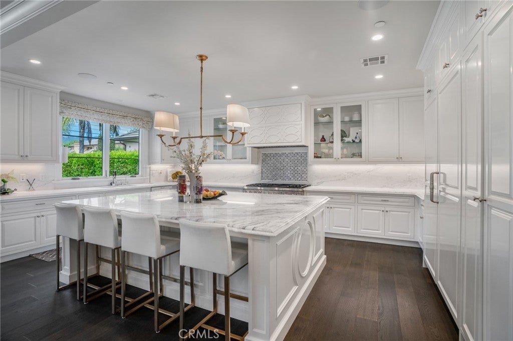 Welcome to this stunning custom-built estate in the heart of Arcadia offering approximately 6,621 sq ft of living space on a generous 15,382 sq ft lot, completed in 2017. Behind a beautifully gated front yard, the home impresses with a paved driveway, manicured landscaping, and exceptional curb appeal. A grand marble foyer sets the tone, leading to an elegant formal living room and dining room on one side, and a refined study/library along with a private home theater on the other. Designed for both everyday living and upscale entertaining, the open-concept layout showcases a gourmet kitchen featuring high-end stainless steel appliances, a large center island, separate wok kitchen, and walk-in pantry. The inviting family room is complemented by a striking double glass-door wine cellar, creating the perfect setting for gatherings. Upstairs, four spacious bedrooms each offer en-suite bathrooms, while the luxurious primary suite features a spa-inspired bath with a soaking tub, separate steam shower, and an expansive walk-in closet. Step outside to a private, resort-style backyard designed for relaxation and entertaining, complete with a sparkling pool, soothing spa, and beautifully appointed patio area. Additional highlights include custom luxury furnishings included, and a prime location near parks, shopping, the library, and within the highly sought-after Arcadia Unified School District. This exceptional home offers the perfect blend of elegance, comfort, and lifestyle — a rare opportunity not to be missed.
