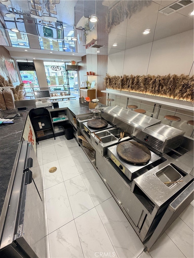 Rare turnkey opportunity to own a sleek, modern restaurant in Diamond Bar’s premier, H-Mart-anchored shopping destination, newly renovated in 2025. This highly efficient 903 SF space is perfectly positioned for maximum foot traffic, situated directly next door to Kumon and steps from Planet Fitness, capturing a consistent stream of gym-goers and parents who shop and snack while their children are in class. The interior features a sophisticated open bar counter complemented by a fully functional back kitchen equipped with a commercial hood, stovetops, and extensive refrigeration. With a remarkably reasonable all-inclusive monthly rent of $4,875 (covering CAM, taxes, and insurance) and a secure lease through 2031 plus a renewal option, this is the ultimate low-overhead, high-visibility location for an owner-operator looking to skip the cost and delay of construction in a plaza that truly has it all.