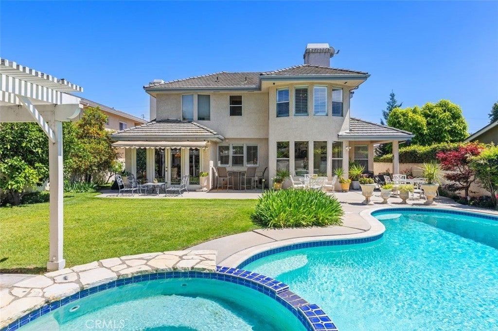 This magnificent custom built home is situated in the Prime location of Award Winning Arcadia Schools. Located on one of the quiet street in the city. The custom home built by the owner in 1993 features 4 bedrooms, 3.5 bathrooms, 3 car attached garages. 2 story, high ceiling Foyer, welcomes you to a beautiful custom home with sky lights, plantation shutters. Very spacious living room with fireplace, sky light and formal dining room. Large family room opens to gourmet kitchen with center island, custom cabinetry, wet bar, built-in oversized refrigerator, built-in gas fireplaces, walk-in pantry. Breakfast bar area and 2nd dining area for fabulous family gatherings and entertaining many people. Downstairs 1 bedroom en-suite with walk-in closet can be the guest suite/hobby room/home office, special oversized laundry room has lots of cabinet spaces, built-in sink and long counter space for easy laundry. 3 bedrooms up stairs including the very spacious unusual primary en-suite with custom, oversized walk-in closet, separate soaking tub, shower and large sitting area for relaxation. Very spacious front drive-way accommodates an extra 3+ cars. There are 3 beautiful fireplaces in the living room, the great family room and the large primary suite. Dual central A/C system and newer AC. The entertaining backyard has heated Pool, Spa and built in covered BBQ area. There are many sitting areas in the backyard for California life style. Many trees, flowers, plants, green lawns and fruits trees in the backyard. Two covered patio areas for the great outdoor parties. this property located near Top rated Arcadia schools, variety of restaurants, the Santa Anita Golf Course and Santa Anita Racetrack, Westfield Shopping Mall for conveniences in life. This is your dream home, so do not miss this great opportunity with great pricing!