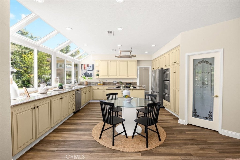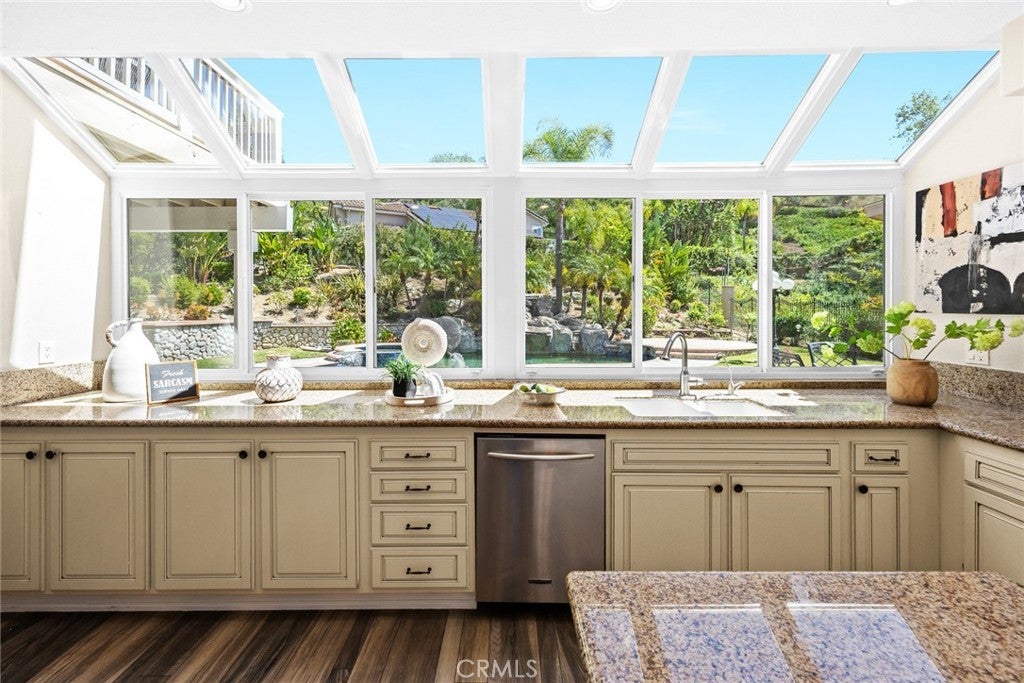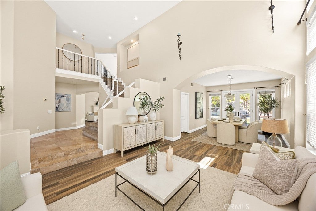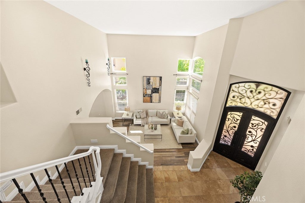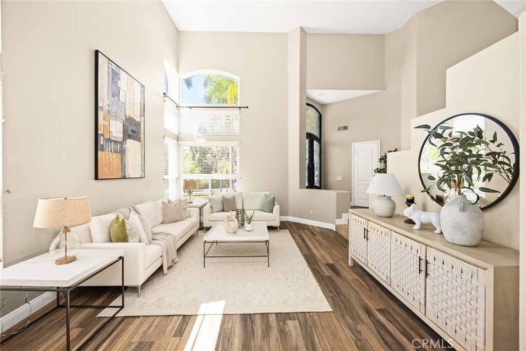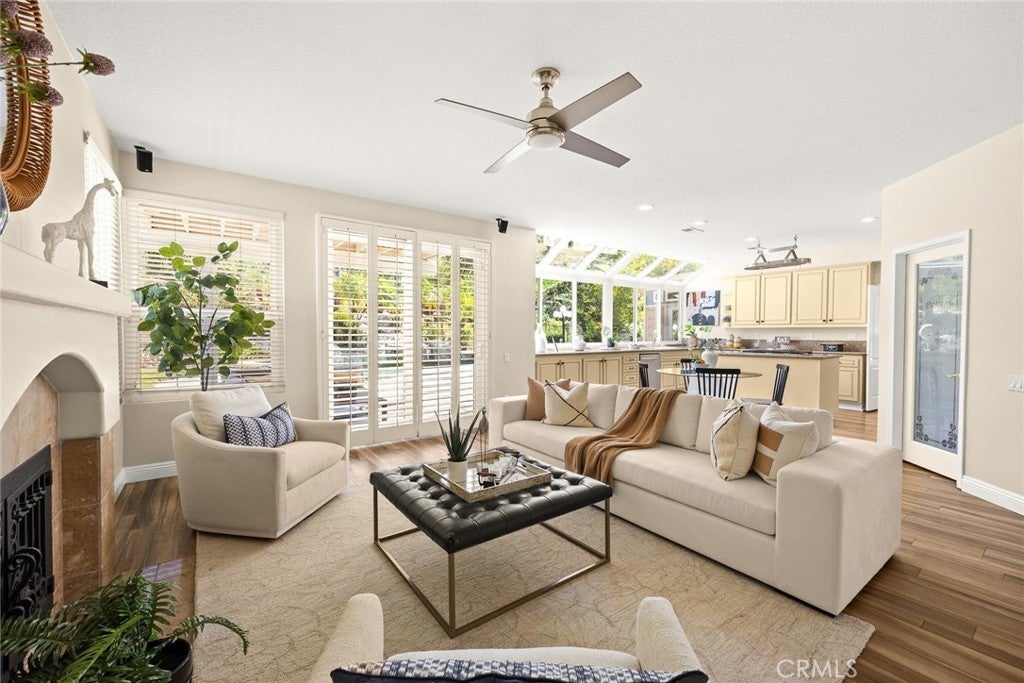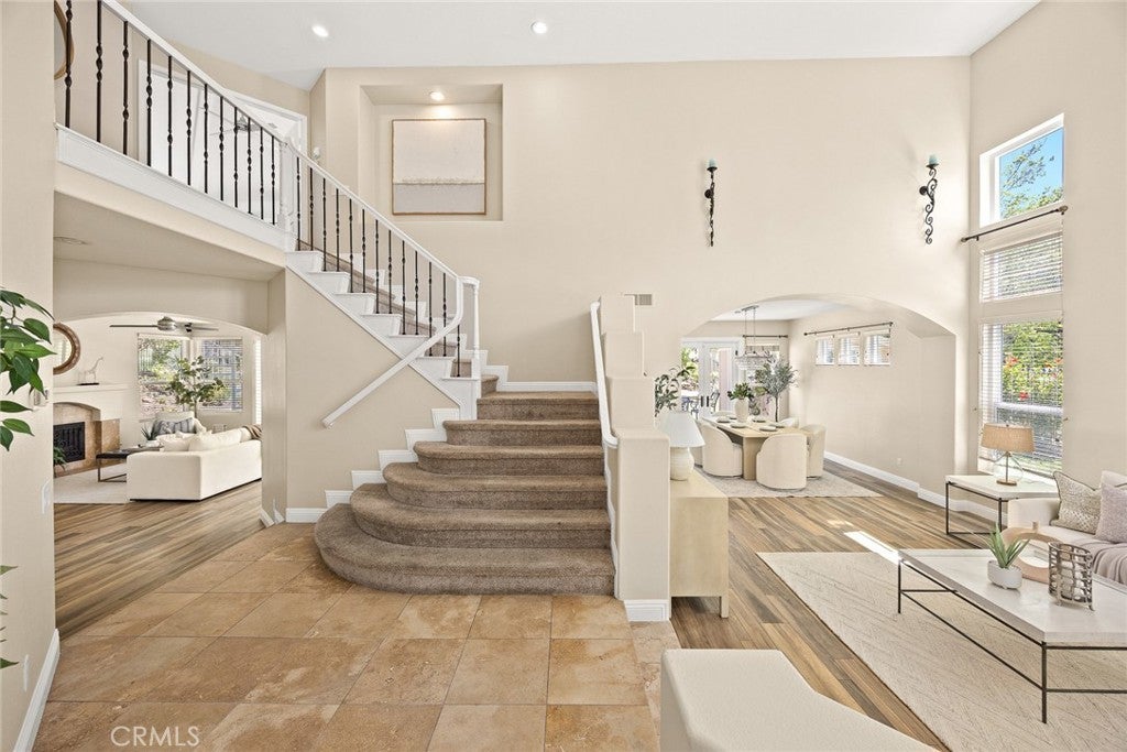 Nestled on one of Yorba Linda’s most picturesque streets, this stunning 5-bedroom, 3.5-bath pool and spa residence offers the perfect blend of elegance, comfort, and resort-style living. From its exceptional curb appeal to the breathtaking backyard, every detail is designed to impress. Step through custom iron and natural wood double doors into a dramatic cathedral-ceiling living room, where soaring ceilings, rich wood flooring, and stone accents create a grand first impression. The formal dining room flows seamlessly to the outdoors, capturing serene views of the lush landscaping and sparkling pool. The gourmet kitchen is both stylish and functional, featuring granite countertops, a large center island, walk-in pantry, and expansive windows that flood the space with natural light while framing tranquil views of cascading waterfalls. Open to the kitchen, the inviting family room offers a cozy gas fireplace, custom French doors, and direct access to the backyard—perfect for effortless indoor-outdoor living. A highly desirable main-level ensuite bedroom, along with a guest powder room, provides ideal flexibility for guests or multi-generational living. Upstairs, the luxurious primary suite serves as a private retreat, complete with a balcony overlooking the resort-style backyard, a dual-sided fireplace shared with a sitting area, two walk-in closets, and a spa-inspired bath featuring a jetted tub, separate shower, and dual vanities. Additional bedrooms include two connected by a Jack-and-Jill bathroom, plus another bedroom and full bath. The backyard is a true showpiece—a tropical oasis featuring a sparkling pool and spa, cascading waterfalls, fire features, and beautifully landscaped grounds with ambient lighting. Multiple French doors, sliders, and expansive windows throughout the home create a seamless connection between indoor and outdoor spaces, making it an entertainer’s dream. Additional highlights include double-pane windows and doors, solar panels, and a versatile he/she shed ideal for a studio, workspace, or hobbies. Located within the highly sought-after Yorba Linda High School boundary, this exceptional home truly offers the best of luxury living. Look no further—this is the home you’ve been waiting for.