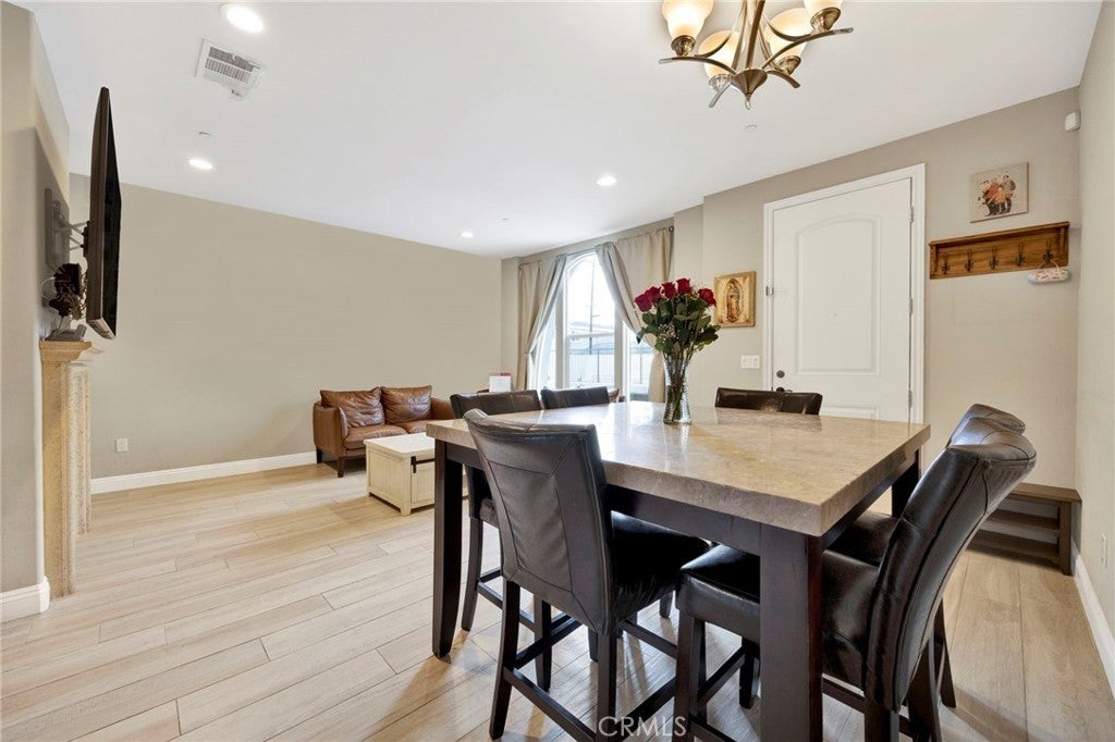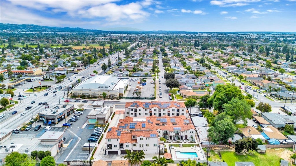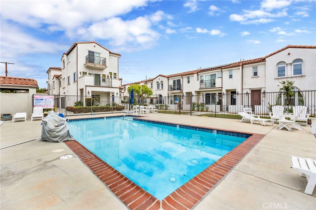 Nestled in the heart of Pico Rivera, this contemporary 3-bedroom, 3-bathroom townhouse offers a harmonious blend of style and functionality. The open-concept living area features a cozy fireplace, seamlessly flowing into a kitchen adorned with modern cabinetry and ample counter space. Upstairs, the expansive master suite boasts a walk-in closet and a private balcony, providing a serene retreat. Two additional well-sized bedrooms offer generous closet space and natural light. Laminate flooring throughout adds a touch of elegance and ease of maintenance. Enjoy outdoor living with a gated front patio and a second private patio accessible via sliding doors—ideal for relaxation or alfresco dining. Additional amenities include a 2-car garage, tankless water heater, and community solar panels covered by HOA fees, helping to keep electricity bills low. The community also offers a large swimming pool and a private entrance for added convenience. Located just 9 miles from Downtown Los Angeles and 4 miles from Whittier College, this condo is close to schools, shopping, and recreational areas, making it an ideal place to call home. This is a must see!!!