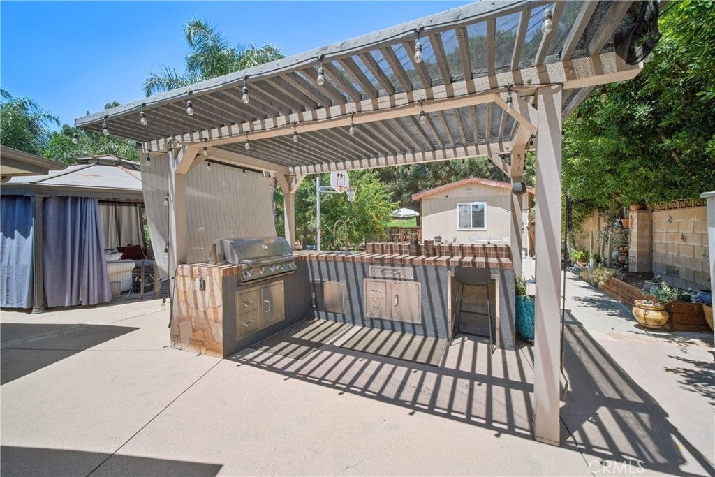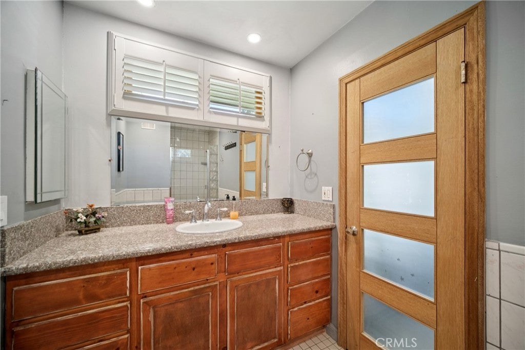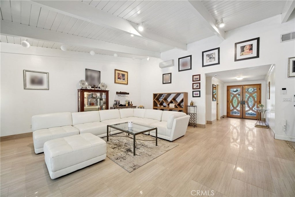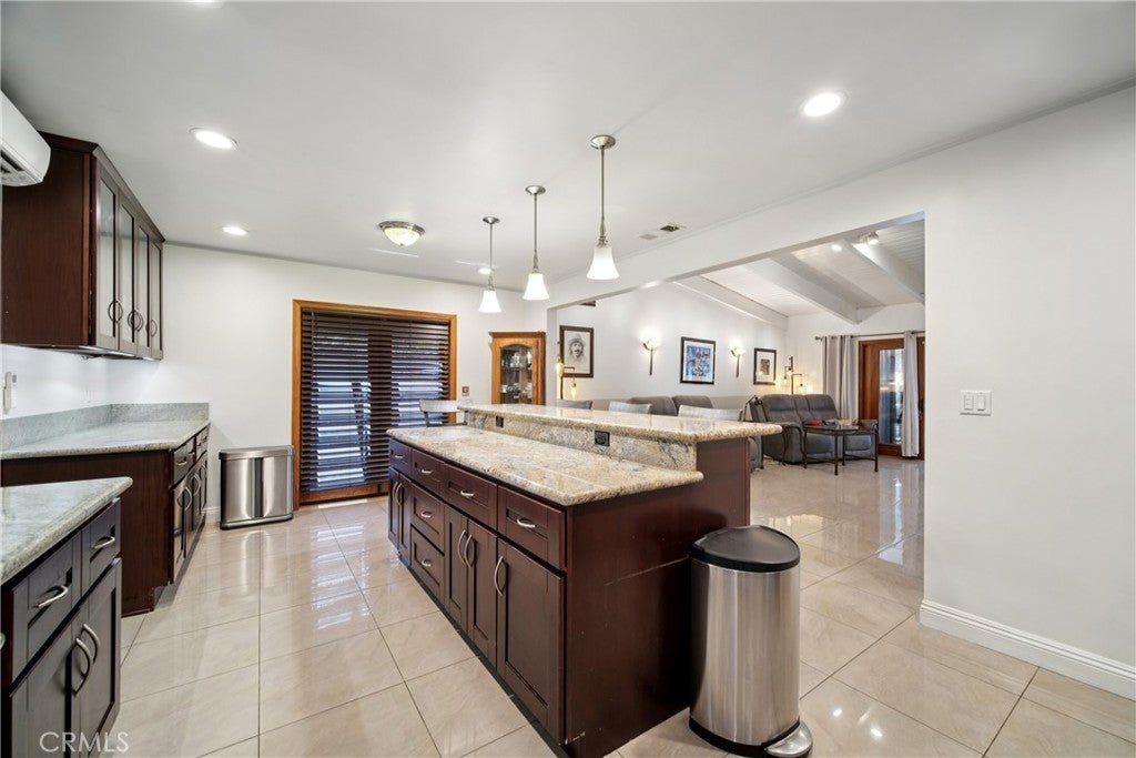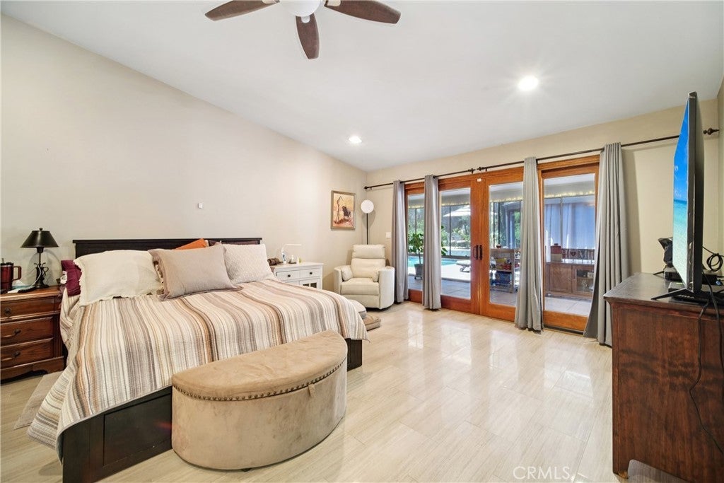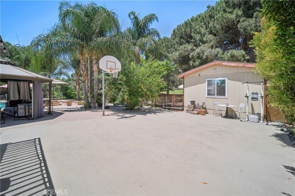 Welcome to 16857 Colven Rd, a beautifully upgraded and private Granada Hills retreat nestled on a rare 20,564 sq ft flag lot backing directly to the 14th tee box of Knollwood Country Club Golf Course. This 3-bedroom, 2.5-bathroom home measures approximately 2,516 sq ft of interior living space, with an additional 545+/- sq ft sunroom and 300+ sq ft pool house with bathroom—ideal as a guest retreat, studio, or flex space. It may be different from public records. Buyer to verify permit status and square footage. Upgrades include vaulted ceilings, recessed lighting, tiled floors, Marvin Windows with Plantation Shutters, a 60' glass-enclosed sunroom, and a finished garage with insulation, drywall, and recessed lighting. A tankless water heater ensures comfort and efficiency, and a 2021 mini-split system provides zoned cooling. Paid-off solar panels (installed in 2015) offer long-term energy savings. The property is accessed via a 160' private driveway leading to a sprawling ranch-style home. The front yard features custom lighting, fountains, ample parking, and a 320 sq. ft. 4-hole putting green. A custom wrought iron gate secures the front porch, blending curb appeal with peace of mind. The remodeled kitchen boasts rich cabinetry, a two-level granite island, tile floors, a garden window, and recessed lighting. It opens to a spacious den, and a solid wood French door connects to the west patio. The sunroom features tinted windows, recessed lighting, and French doors on both sides, plus two 10’ Longview sliders and a 13’ Marvin wood-clad French door. The primary suite offers tiled floors, recessed lighting, and a custom walk-in closet. The spa-style bathroom includes a stone accent wall, soaking tub, and a large shower enclosed with ¾” sapphire glass. Two additional bedrooms share a ¾ bath and feature mirrored closets, recessed lighting, ceiling fans, and mini-split AC. The backyard is a true resort-style oasis with terraced landscaping, remodeled PebbleTec pool and spa, built-in BBQ and fire pit, basketball court, toddler playground, and private driving range. Fruit trees—including Meyer lemon, orange, grapefruit, and pomegranate—along with a cactus garden and Queen Palms complete the scene. A rare opportunity to own a one-of-a-kind home on a premier lot with golf course access, quality upgrades, and lifestyle amenities.