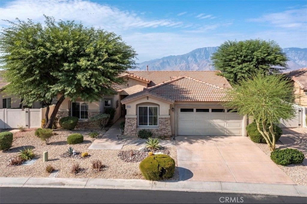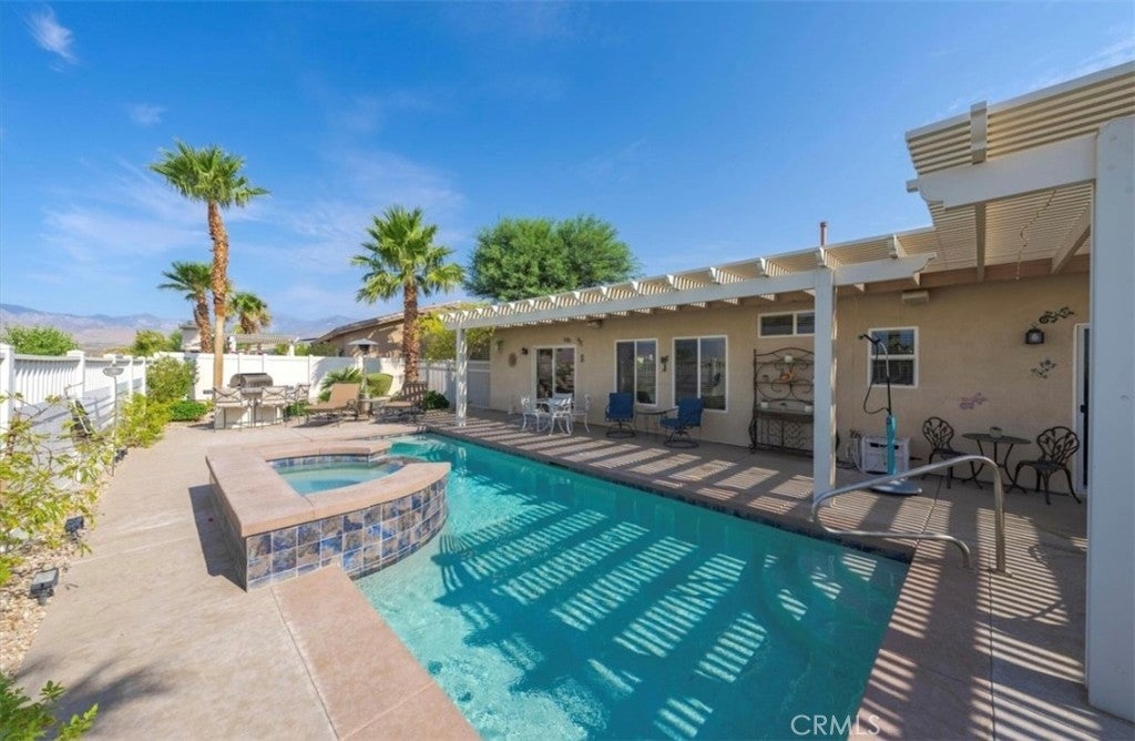 Furnished and all utilities included ! Can be rented 30 days for vacation or mid term rental. Welcome to our oasis in the desert. This home has it all ! Located in the gated community of Mountain View by Mission Lakes. Featuring 3 bed 3 full bathrooms. Heated pool & spa. 2 car garage. RV / Boat parking. Outdoor barbeque area. Patio with misters to stay cool. Amazing location with lots of amenities ! Just a few steps to country club and PGA 4 star golf course. Country club includes restaurant and bar. White House Canyon hiking trail us just across the street. Tennis court, Basketball court & Golf! Who can ask for more ? Just 20 min to Palm Springs. Minutes away from Joshua Tree, Coachella, Shopping, Casino, Outlets, & More ! The property features sweeping views of snow capped San Jacinto & San Gorgonio mountains. Views of the Coachella valley and windmills. Experience jaw dropping sunsets every night while you enjoy the pool and amazing spa underneath the stars and night sky. Outdoor BBQ grill and fully stocked kitchen inside. Spacious bedrooms includes a primary suite with Queen bed large enough to have a living / office area with a sofa, desk and access to the backyard and pool directly from the primary suite! Second bedroom is serene with a queen bed. Last bedroom has 2 double beds. Each bedroom has a full bathroom and all bedrooms are separated for privacy. Large living room is furnished for comfort and has a smart TV. Built in speakers throughout entire house and back yard allows you to play your favorite music and is sure to make your stay fun and entertaining ! Formal dining area as well as an eat in kitchen and a second desk to make working on your getaway possible. Fully stocked kitchen will delight any chef and there is a Nespresso Vertuo machine & Keurig available to please any coffee lover! Beautiful, clean, and comfortable home.
