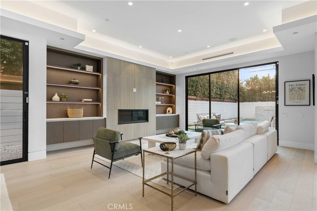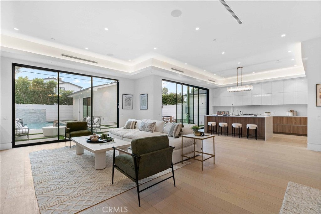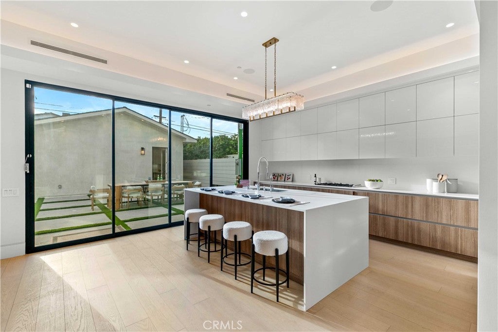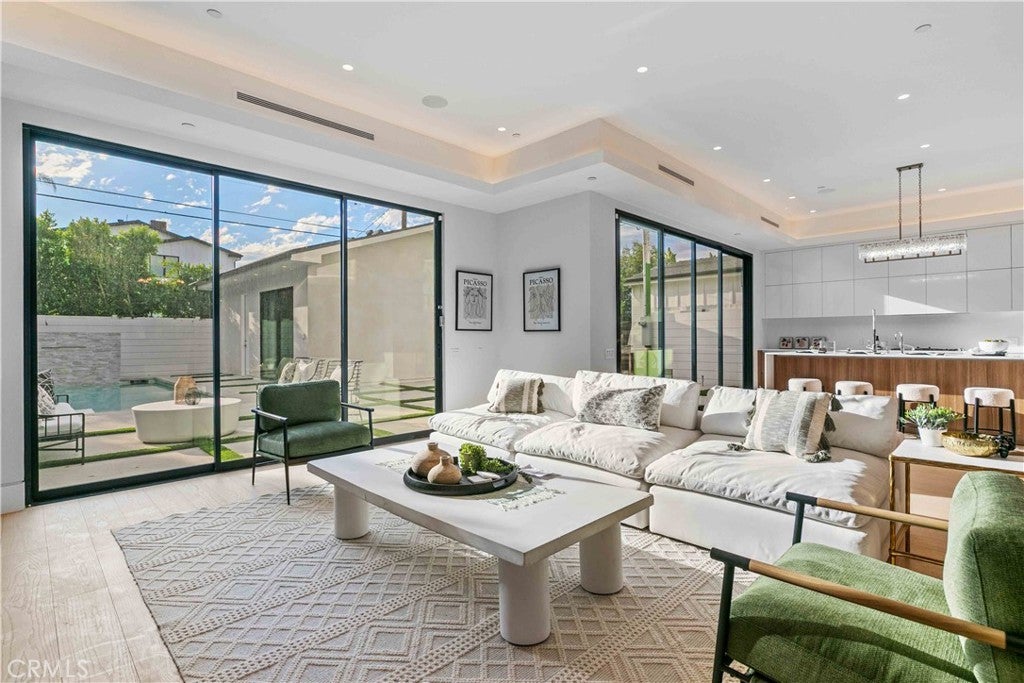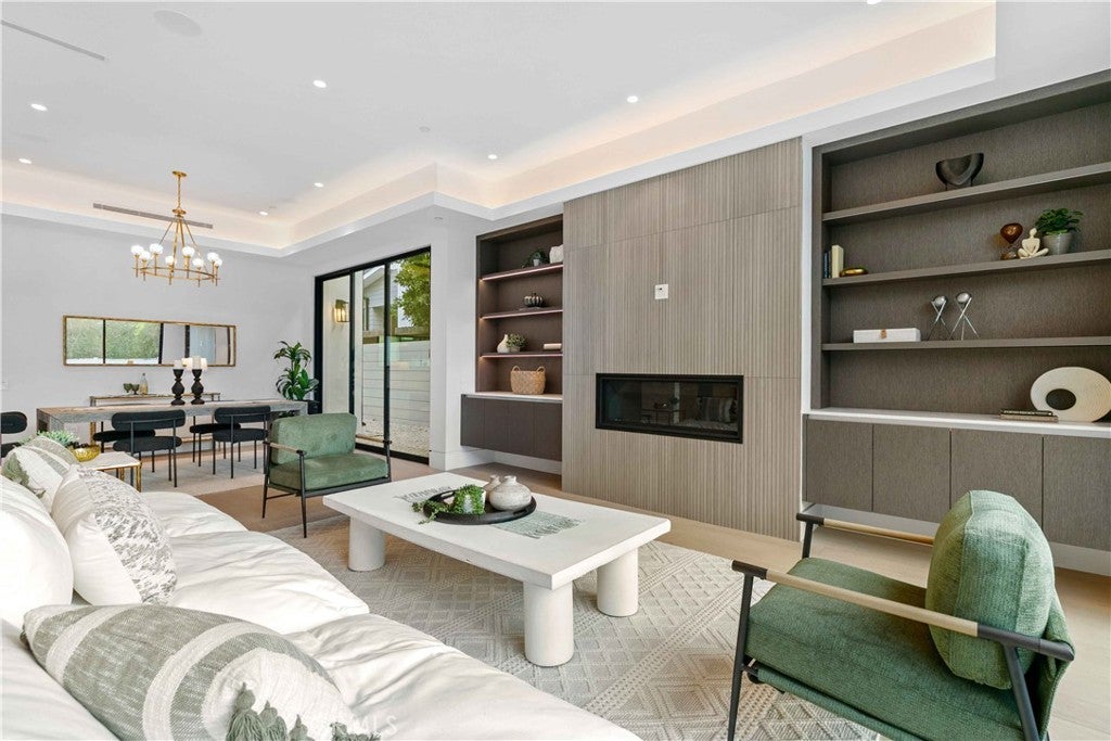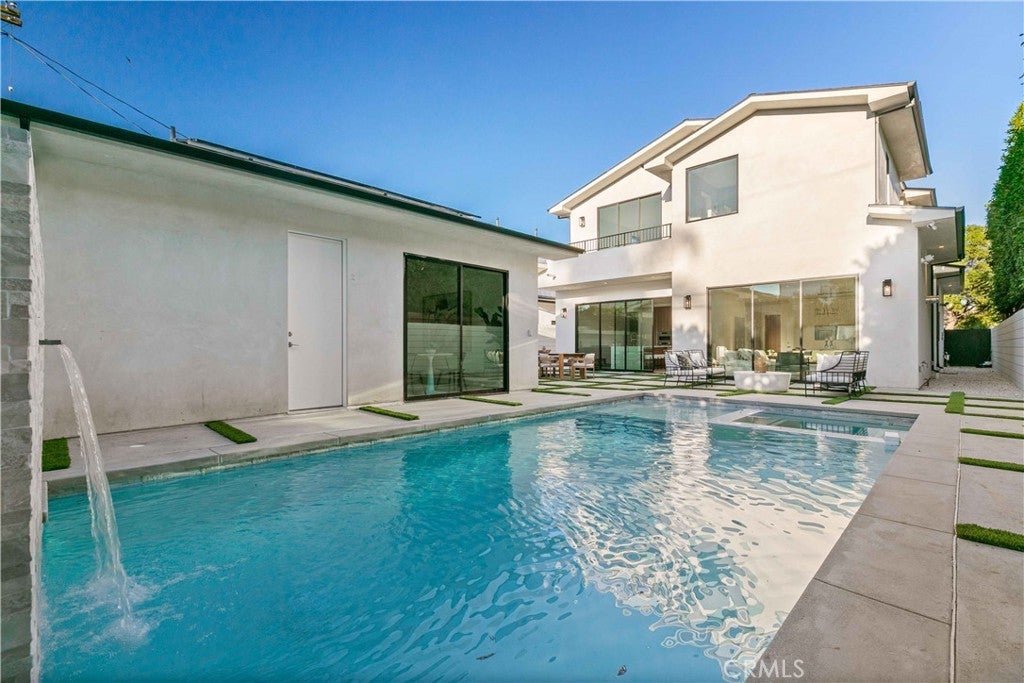 AMAZING NEW PRICE!!!!! Welcome to 4437 Calhoun Avenue — a brand-new, ground-up construction in the heart of the coveted Library Square neighborhood of Sherman Oaks. This gated modern residence offers 3,222 sq ft of expertly crafted living space with 5 bedrooms and 5.5 bathrooms in the main home, plus a fully finished 479 sq ft ADU complete with its own bedroom and full bath — ideal for guests or extended family. Designed with spaciousness and flow in mind, the home features soaring 11-foot ceilings on the first floor and 9.5-foot ceilings upstairs, creating a bright and open atmosphere. The living room is anchored by a sleek fireplace and floor-to-ceiling sliding doors that open to the backyard, delivering the ultimate indoor/outdoor California living experience. The gourmet kitchen is a true centerpiece, featuring high-end Bertazzoni appliances, custom cabinetry, designer finishes, and a built-in beverage cooler. Upstairs, the primary suite offers a tranquil retreat with a fireplace, built-in sink and beverage cooler, a spa-like en-suite bath, and a walk-in closet with custom shelving. This smart home is equipped with fully integrated technology to control lighting, fireplaces, HVAC, pool speakers, and a Sonos sound system, and it comes complete with a security camera system for peace of mind. Solar panels on both the home and the ADU make this home an energy efficient masterpiece. Additional highlights include Hansgrohe faucets throughout, an attached garage, three separate HVAC systems (for each floor and the ADU), and a dedicated laundry room with Samsung washer and dryer included. Set on a quiet, tree-lined street in Library Square, this gated, camera-secured property blends modern luxury, high-tech convenience, and timeless comfort in one of Sherman Oaks’ most desirable neighborhoods.