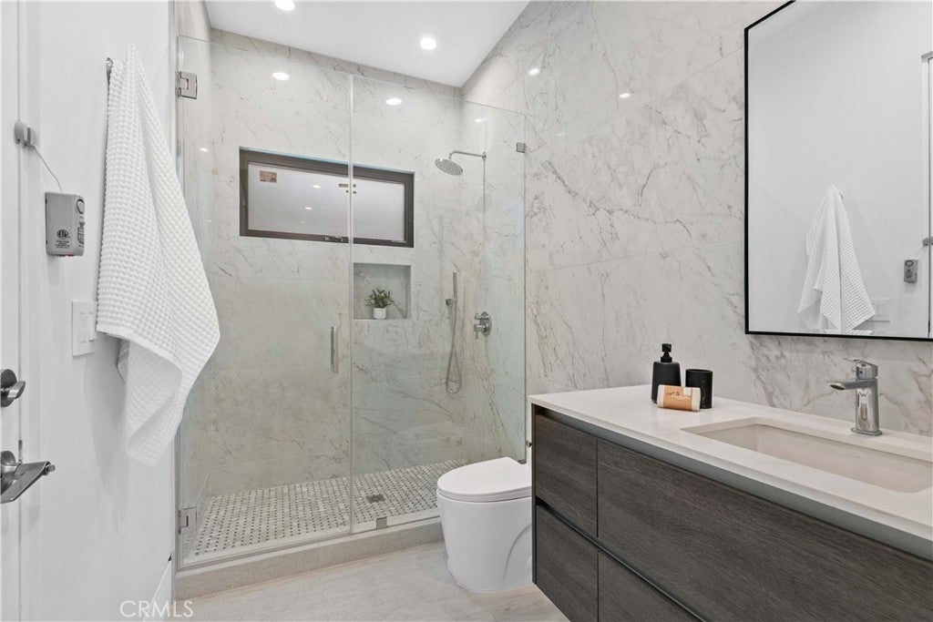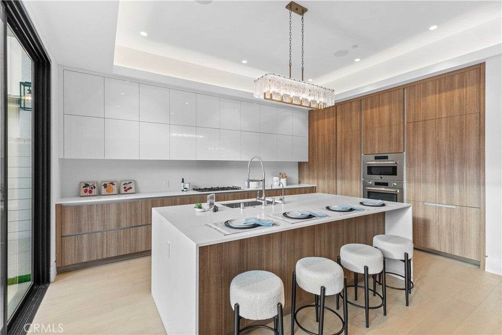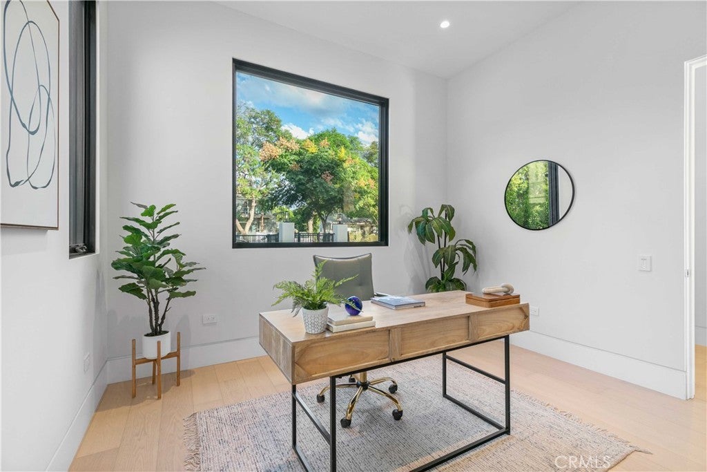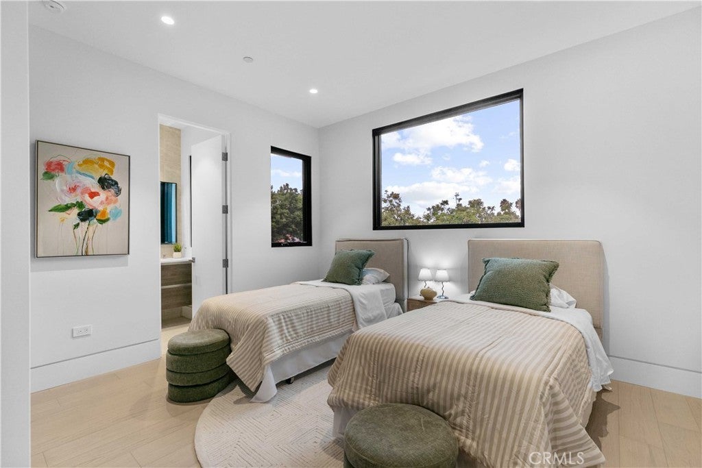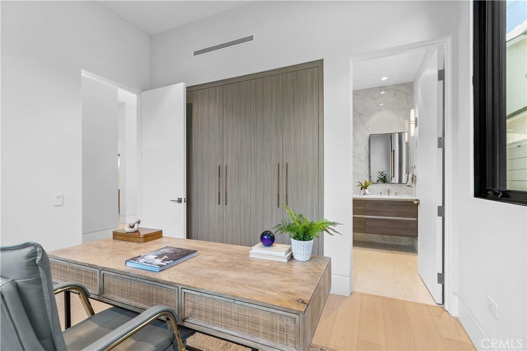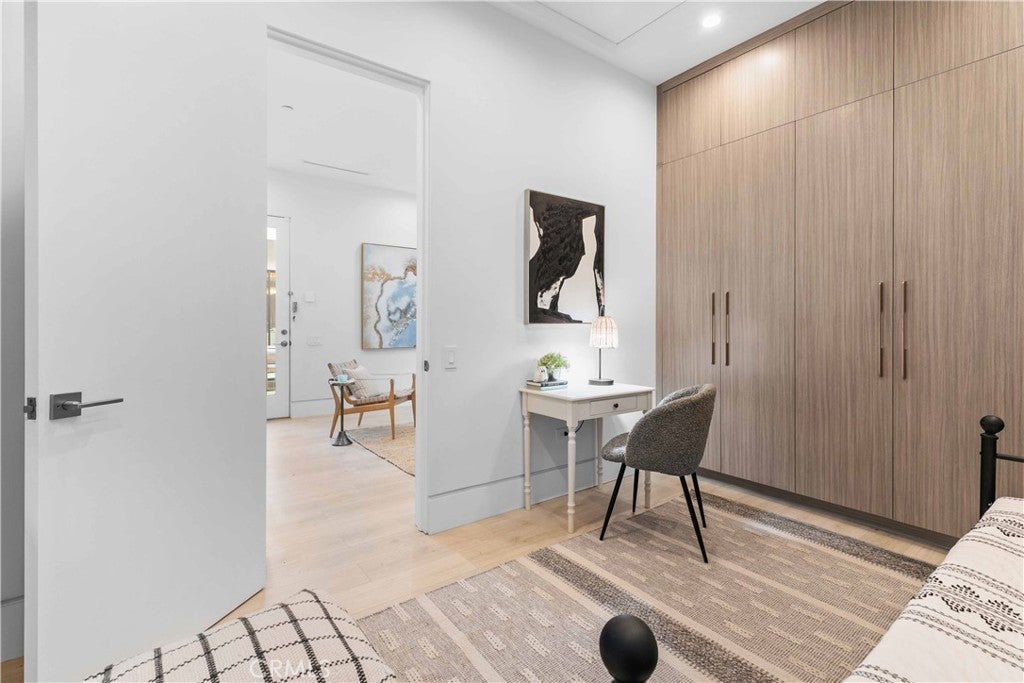 AMAZING NEW PRICE!!!!! Welcome to 4437 Calhoun Avenue — a brand-new, ground-up construction in the heart of the coveted Library Square neighborhood of Sherman Oaks. This gated modern residence offers 3,222 sq ft of expertly crafted living space with 5 bedrooms and 5.5 bathrooms in the main home, plus a fully finished 479 sq ft ADU complete with its own bedroom and full bath — ideal for guests or extended family. Designed with spaciousness and flow in mind, the home features soaring 11-foot ceilings on the first floor and 9.5-foot ceilings upstairs, creating a bright and open atmosphere. The living room is anchored by a sleek fireplace and floor-to-ceiling sliding doors that open to the backyard, delivering the ultimate indoor/outdoor California living experience. The gourmet kitchen is a true centerpiece, featuring high-end Bertazzoni appliances, custom cabinetry, designer finishes, and a built-in beverage cooler. Upstairs, the primary suite offers a tranquil retreat with a fireplace, built-in sink and beverage cooler, a spa-like en-suite bath, and a walk-in closet with custom shelving. This smart home is equipped with fully integrated technology to control lighting, fireplaces, HVAC, pool speakers, and a Sonos sound system, and it comes complete with a security camera system for peace of mind. Solar panels on both the home and the ADU make this home an energy efficient masterpiece. Additional highlights include Hansgrohe faucets throughout, an attached garage, three separate HVAC systems (for each floor and the ADU), and a dedicated laundry room with Samsung washer and dryer included. Set on a quiet, tree-lined street in Library Square, this gated, camera-secured property blends modern luxury, high-tech convenience, and timeless comfort in one of Sherman Oaks’ most desirable neighborhoods.