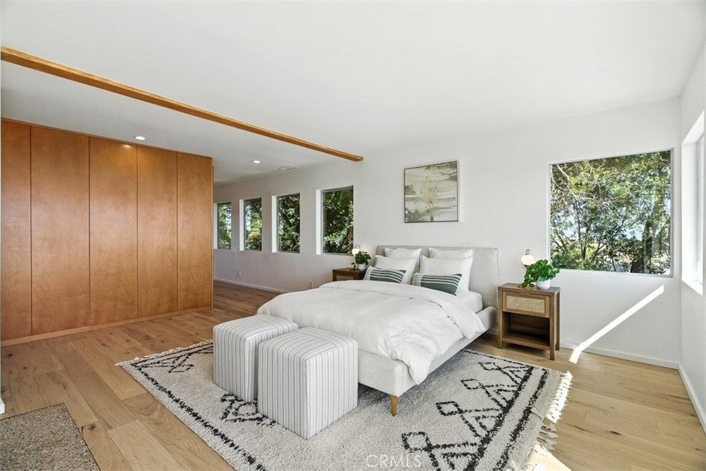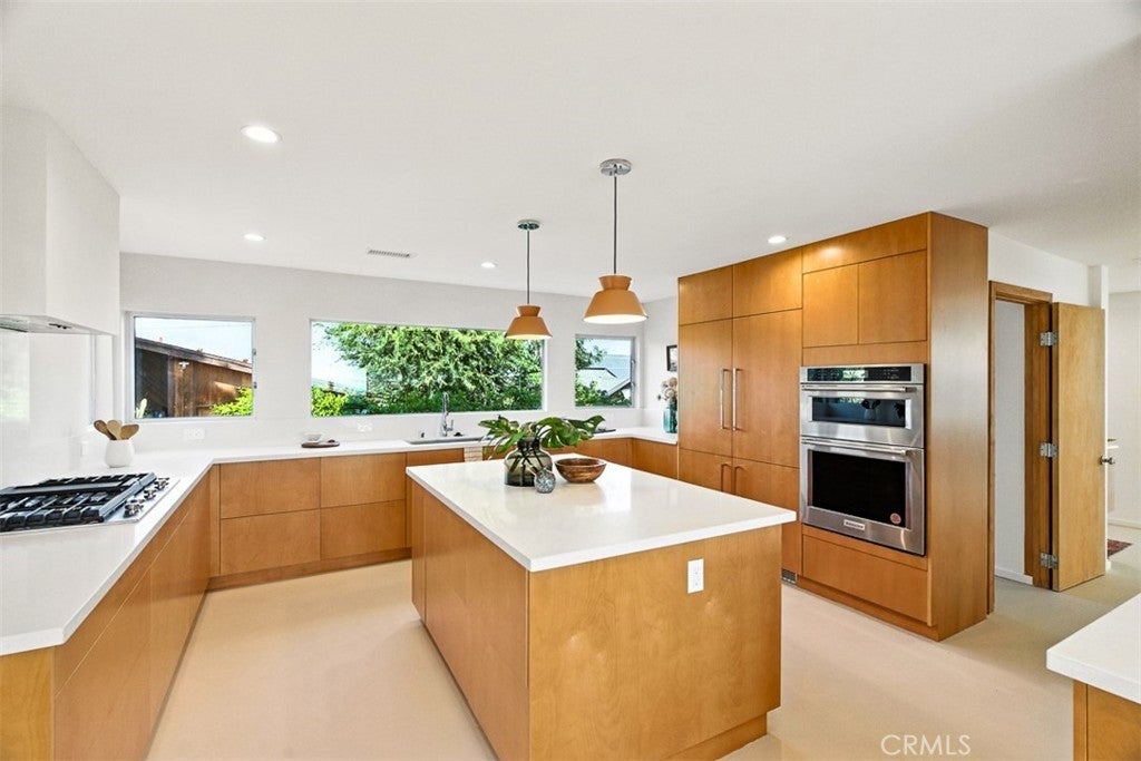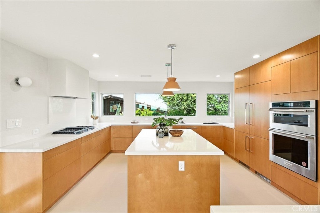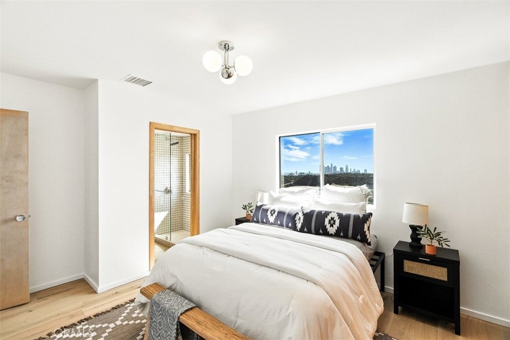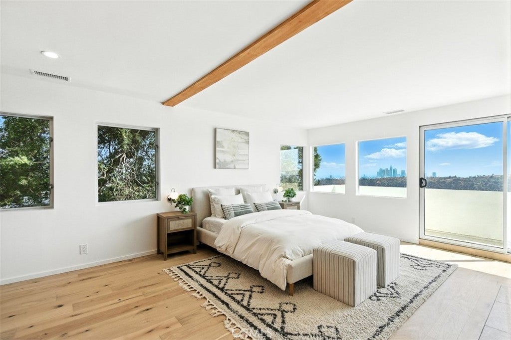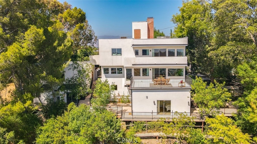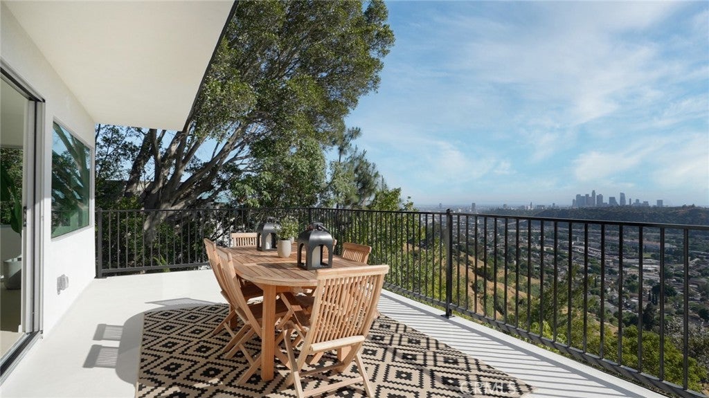 Architectural Mid-Century Compound with Panoramic DTLA Views Set high in the coveted hills of Mount Washington, this expansive 6-bedroom, 7-bathroom estate seamlessly fuses mid-century pedigree with elevated contemporary living. Originally designed by iconic architect Raphael Soriano, the 3,360 sq ft residence has been reimagined with sophisticated finishes that honor its architectural legacy while embracing the comforts of today. Walls of glass flood the main residence with natural light and offer uninterrupted views of Downtown Los Angeles from nearly every room. The entry level is anchored by polished ceramic concrete floors, an open-concept living and dining area, and a chef’s kitchen outfitted with sleek birch cabinetry and premium stainless steel appliances—designed for both style and functionality. Upstairs, four serene bedrooms offer peaceful retreats, including a luxurious primary suite with floor-to-ceiling closets, a private balcony, and a spa-inspired en suite wrapped in elegant tile. On the lower level, a fully self-contained suite with one bedroom, two bathrooms, a kitchenette, and its own living area opens directly to a wraparound view deck—ideal for guests, extended family, or creative workspaces. A detached three-car garage sits above a 600 sq ft bonus unit, complete with its own bedroom and flexible layout—perfect for a studio, rental income, or additional guest quarters. Designed for seamless indoor-outdoor living, the property includes multiple view balconies, sprawling decks, and a flat, terraced side yard—creating a dynamic setting for entertaining, lounging, and stargazing alike. This is more than just a home—it's a rare opportunity to own a revered piece of Los Angeles architecture, thoughtfully updated for the way we live now.