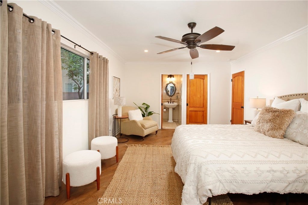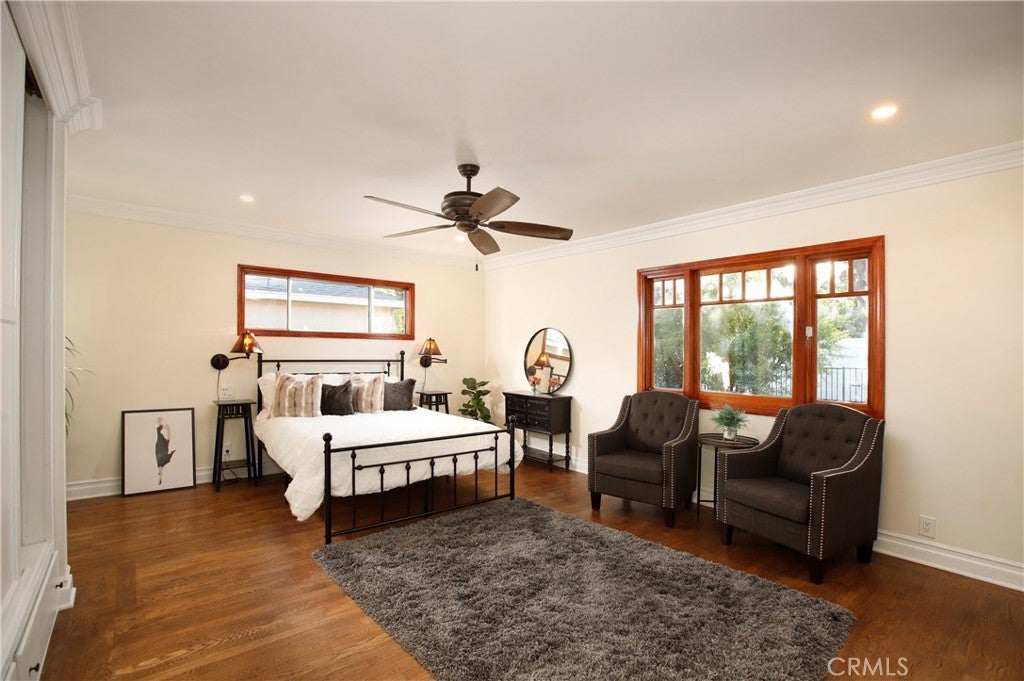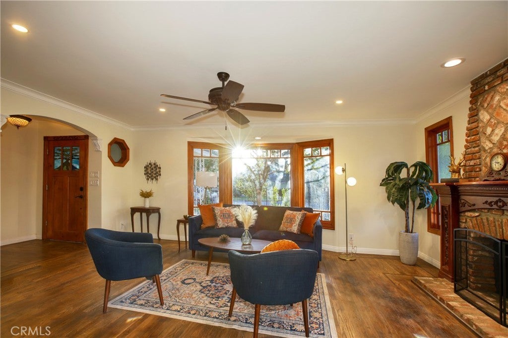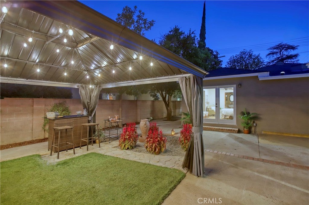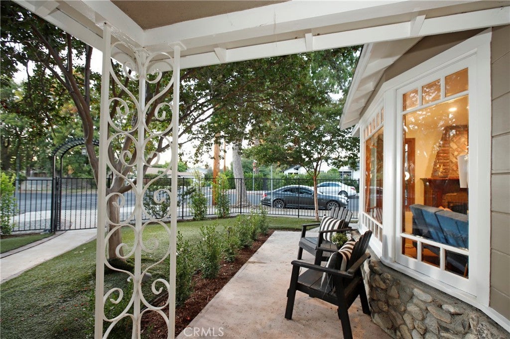 Classic California living in an enclave of well-established residences. This timeless home showcases the artistry, design, and craftsmanship of a bygone era. From the manicured landscaping to the panoramic picture window and color-saturated stained glass panels of the Arts & Crafts front door, every detail captivates. A formal entry welcomes you in and invites you to pause. Your eyes are drawn to the handcrafted herringbone brick fireplace framed by glass sidelights. You immediately experience the difference in the details — rich inlaid hardwood floors, architectural corbels, solid wood doors, classic moldings, and spectacular fireplaces reflect enduring quality. The expansive chef’s kitchen blends modern luxury with vintage charm, appointed with custom-built sage soft-close cabinetry, gleaming carrera quartz countertops, beveled subway tile backsplash, new stainless dishwasher and French-door refrigerator, and an abundance of storage. The coveted butler’s pantry—ideal for entertaining—includes a wine and champagne refrigerator, open wood shelving, prep sink, and designer fixtures make this space unforgettable. A sprawling floor plan flows to inviting rooms and gathering spaces, including a cozy den with built-in shelving and skylight — perfect for quiet moments, new memories, and relaxed living. Two generously sized bedroom suites provide flexibility for multi-generational living: one with a private balcony, the other with ensuite bath and French doors opening to a serene backyard retreat. Enjoy evenings under the covered cabana, with screens and curtains for comfort and privacy, surrounded by professional landscaping and warm lighting creating ambiance. A charming backyard gazebo is a sweet spot to use your imagination: Sunrise yoga stretches, an artist's atelier, a play space, poker, whiskey & cigars, afternoon tea, or a hammock, a good book and afternoon naps. Resting on an expansive 9,000+ sq ft corner lot, the home is framed by elegant wrought-iron fencing and an arched entry gate. The oversized garage includes a separate room—perfect as a home office or creative studio. A thoughtfully placed utility/mudroom with laundry hookups off of the kitchen enhances everyday convenience. A true character home in the heart of the Valley — blending craftsmanship, comfort, and classic California elegance. Convenient to Burbank Studios, Lake Balboa, the Arts District, NoHo haunts, and iconic dining at Norms Diner — “Where life happens.” Welcome Home.
