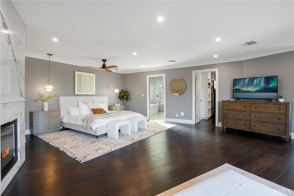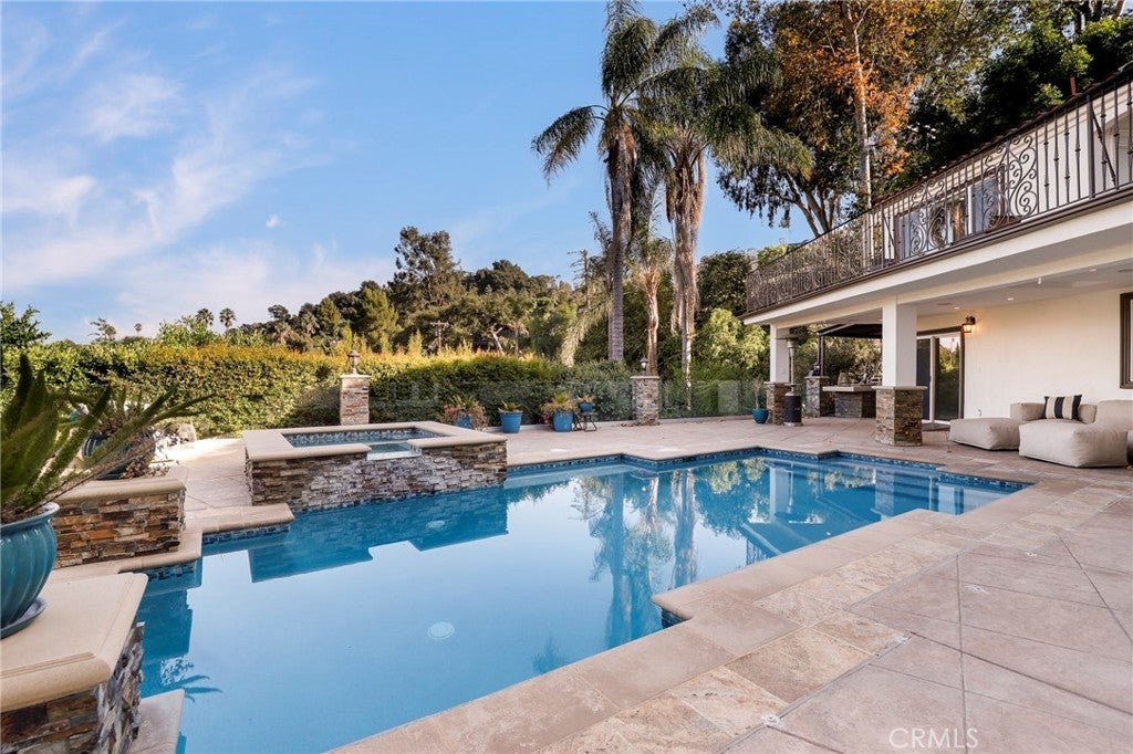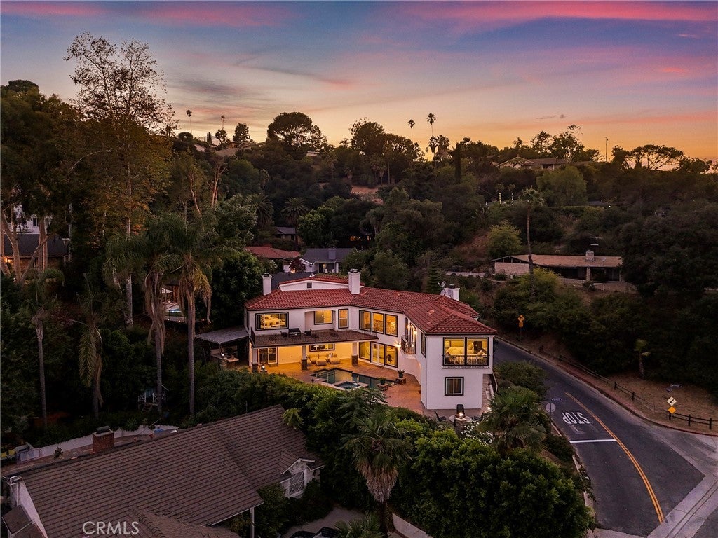 Experience unparalleled luxury and breathtaking views in this magnificent 4-bedroom, 5-bathroom home, spanning nearly 4,000 square feet. This smart and sophisticated residence is an entertainer's dream, boasting spectacular city and mountain views from almost every room. Step into your private backyard oasis, where a sparkling pool with elegant waterfalls and a relaxing spa await. The pool and spa lights and heater can be controlled via an app, making it effortless to set the perfect mood. The outdoor space also features a built-in BBQ area and a cozy firepit, ideal for gathering with friends and family. This home offers the perfect vantage point for watching the spectacular fireworks from Universal Studios on the 4th of July and New Year's Eve. Inside, the home is a testament to high-end living. The kitchen is a chef's delight with top-of-the-line Thermador appliances. An integrated sound system with speakers in the living/dining room ceiling, kitchen, and outside by the pool allows you to effortlessly stream music from Spotify, Sirius-XM, Pandora, and other apps. The lower level features a state-of-the-art theater room with seven plush leather recliner seats, perfect for a cinematic experience. You'll also find a convenient en-suite bedroom on this floor. The upper level is home to three en-suite bedrooms, including the spacious primary suite. The primary bath is a true sanctuary, complete with a jetted soaking tub and a steam shower. A second large bedroom is designed like a studio apartment, featuring a mini fridge, microwave, and sink, offering a private and comfortable space for guests. The upstairs loft with a fireplace provides a tranquil retreat with a great view deck. This home is as practical as it is luxurious. The attached two-car garage includes a Level 2 EV charger and the oversized driveway can accommodate 4-6 cars. The attic provides ample storage space with a convenient pull-down ladder, and a dumbwaiter adds to the home's functionality. Situated in a prime Studio City location, this home offers a quick 5-minute drive to Mulholland Drive and a 15-minute drive to the Sunset Strip, West Hollywood, and Burbank Airport. It also provides easy access to iconic attractions like Universal Studios and the Hollywood Bowl, as well as a wide array of fine dining restaurants. This is more than a home; it's a lifestyle of comfort, convenience, and spectacular views.