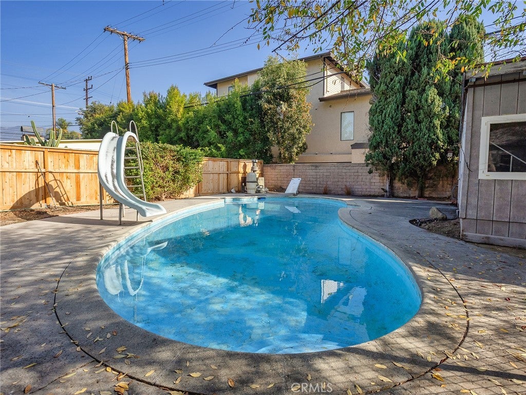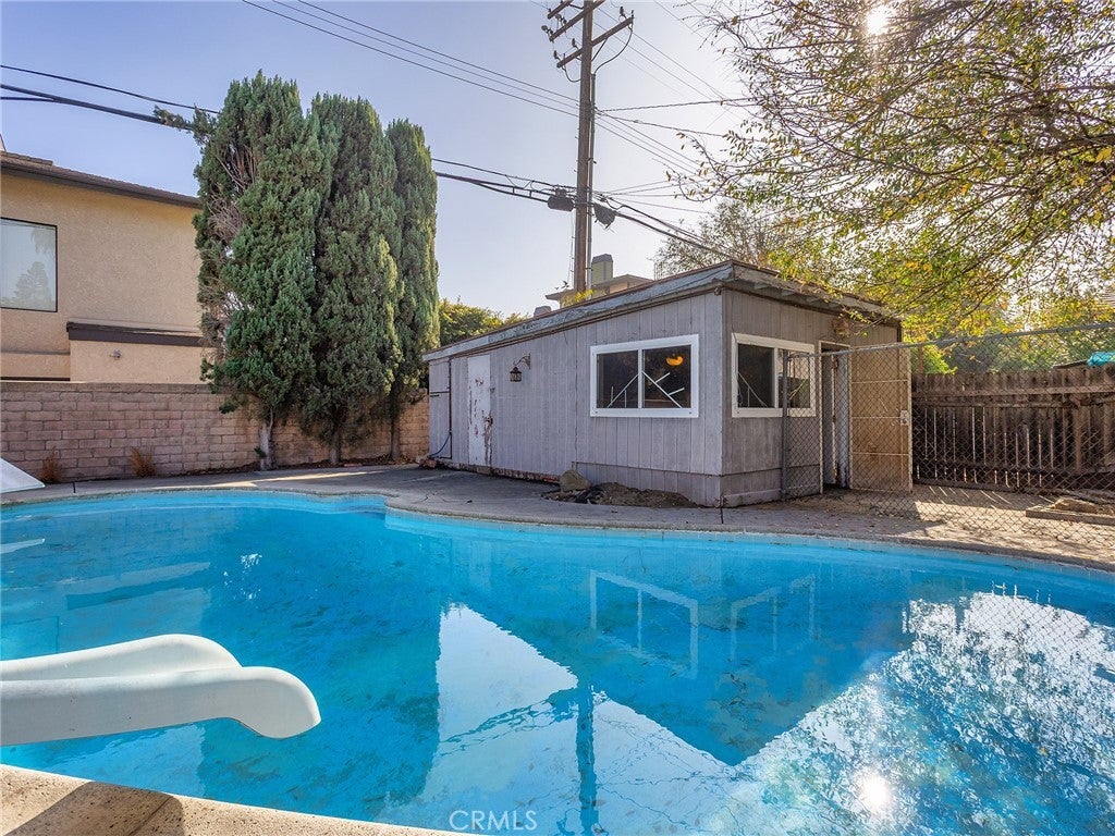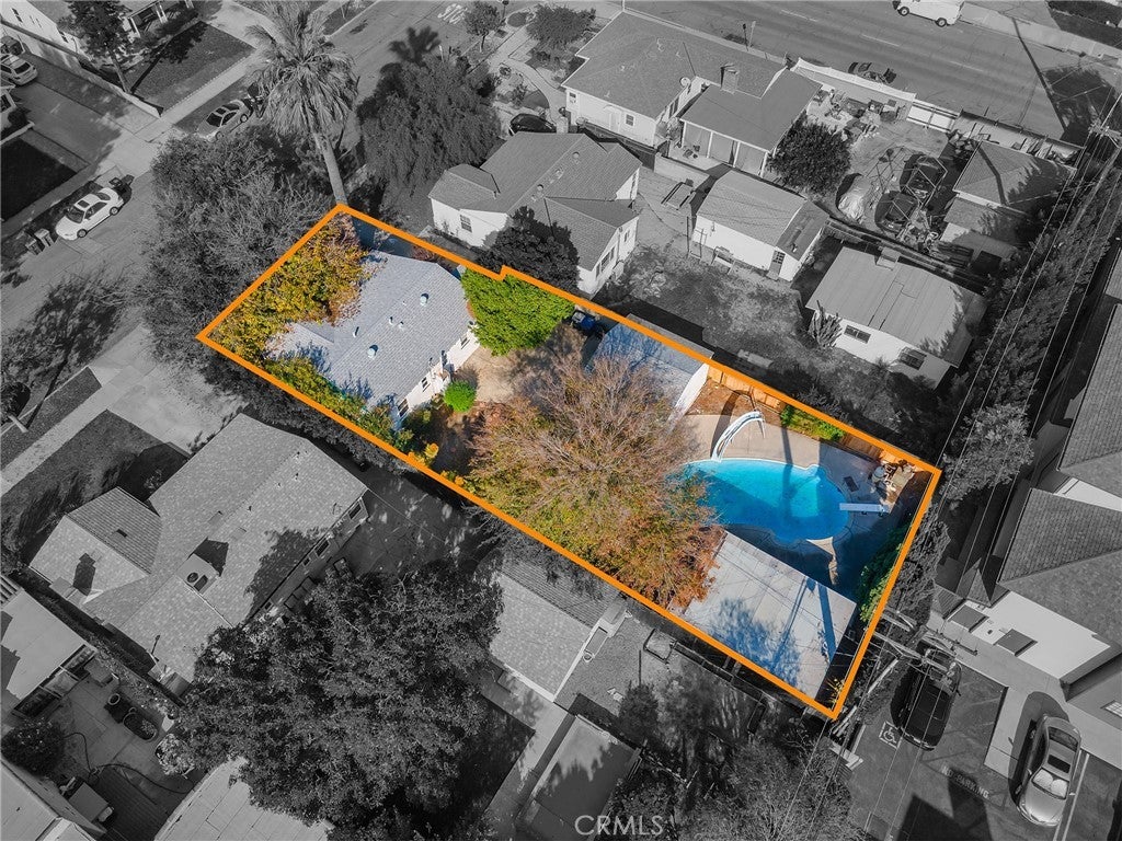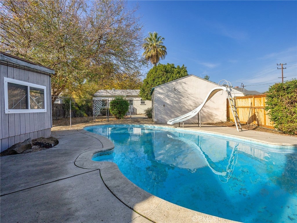 Tucked away on a quiet cul-de-sac, this charming home sits on a generous 7,100 square foot lot and offers 927 square feet of comfortable living space. Featuring two bedrooms and one bathroom, the home showcases beautiful hardwood floors throughout. The inviting living room includes a cozy fireplace, while the formal dining room provides an ideal setting for entertaining. The remodeled kitchen offers modern finishes and functionality, opening seamlessly to the living areas. Step outside to enjoy a patio that overlooks the backyard, complete with a pool, perfect for relaxing or hosting gatherings. Additional highlights include a versatile rumpus room, a two-car detached garage with a dedicated laundry area, and ample outdoor space for recreation or future possibilities. A rare opportunity to own a well-maintained home in a peaceful cul-de-sac location with classic charm and thoughtful updates.