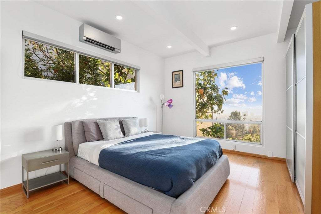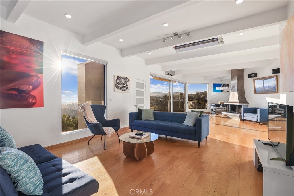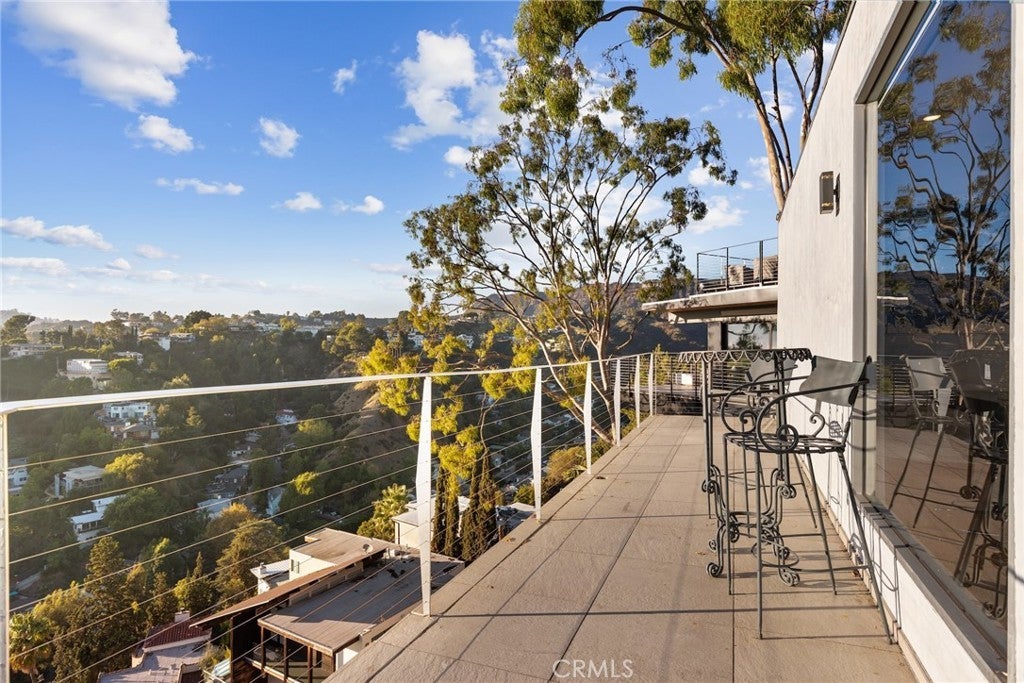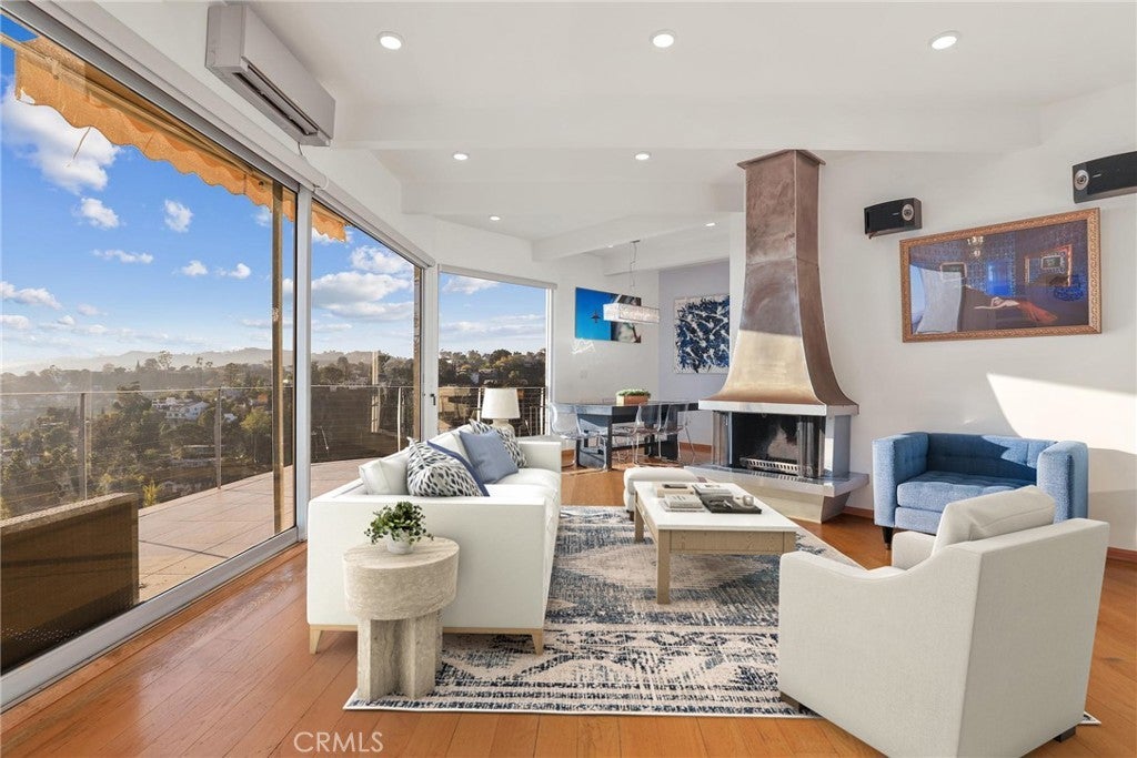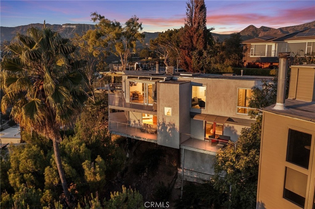 Tucked within one of Los Angeles’ most exclusive hillside neighborhoods, this stunning home offers a rare mix of tranquility, history, and cinematic views. Overlooking the city skyline with the Pacific shimmering in the distance, the property sits right beside the famous Griffith Park Observatory and Hollywood Sign hiking trails — a dream setting for those who love nature and culture in equal measure. Once home to an acclaimed Italian photographer whose work graced major fashion and art publications, the residence carries a creative spirit that’s instantly felt. Every room is designed to frame the sweeping views and fill with natural light, while wraparound balconies invite you outside and breathe in the hillside air. Inside, a European fireplace anchors the open living area, blending modern design with timeless charm. The kitchen features stainless steel appliances, quartz counters, and custom cabinetry — ideal for both quiet mornings and entertaining guests. A bright dining space flows seamlessly onto the terrace, creating the quintessential indoor-outdoor experience. The primary suite offers a peaceful retreat with its own private balcony shaded by a mature fig tree. Two guest bedrooms share the same incredible outlook, making the entire home feel like a serene escape above the city. Just minutes from the Sunset Strip, major studios, and LA’s best dining and nightlife, this home delivers both privacy and convenience. It’s a mid-century modern sanctuary where every sunset feels personal — a place to unwind, create, and be inspired.