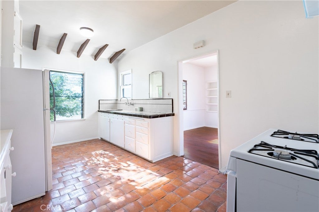 Step into timeless character and comfort in this beautifully maintained 1-bedroom, 1-bathroom Spanish-style home, located on the lower level of a classic 1930s triplex. Situated on a gently elevated lot, the property sits above street level, giving the home a sense of privacy while still being just steps from the sidewalk. This front-facing, downstairs unit enjoys easy access and abundant natural light, with its own unique character and vintage appeal. Inside, original hardwood floors stretch across a spacious layout that includes a large, light-filled living room and a separate dining area—perfect for entertaining or working from home. Beautiful stained-glass windows add a touch of old-world charm, while freshly painted interiors make the space feel bright, clean, and move-in ready. The kitchen includes a classic oven and charming cabinetry, staying true to the period style of the home. This West LA residence offers quick access to local shops, cafes, and major commuter routes, while still feeling tucked away on a tree-lined residential street. With its vintage details, generous square footage, and unbeatable location, this rare find won’t last long.
