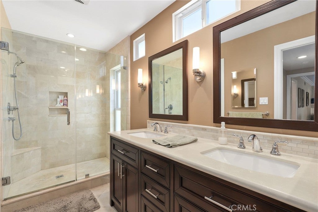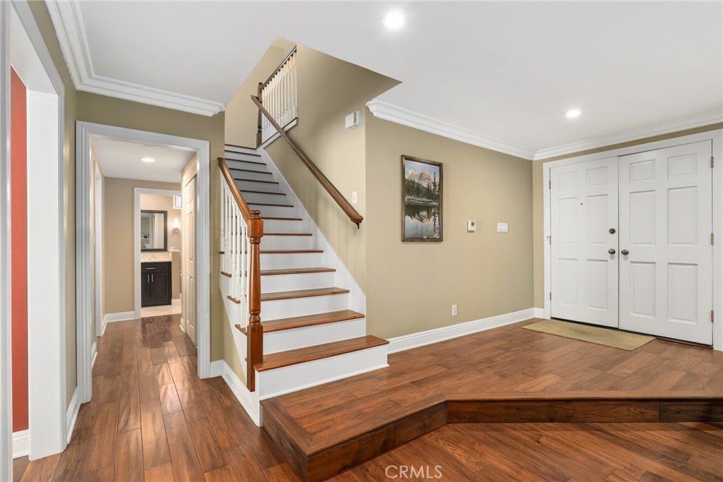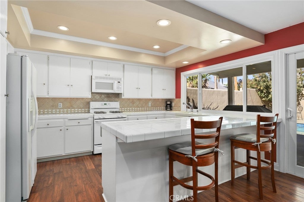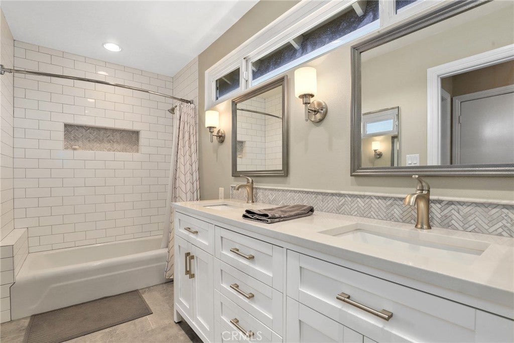 Welcome to this beautifully maintained four-bedroom, two-bath, 1,874 sq. ft. two-story home located on a quiet street in a desirable neighborhood. This home features a thoughtful floor plan with one bedroom and one full bath conveniently located downstairs—perfect for guests or multi-generational living. Enjoy bright, open living spaces, a spacious kitchen, and comfortable bedrooms filled with natural light. Fully remodeled bathrooms include vanities with quartz countertops, self-closing drawers, and double sinks. Step outside to your private backyard oasis with a sparkling pool—ideal for relaxing or entertaining. Additional highlights include a well-manicured yard, a Fuji apple tree and Navel orange tree in the backyard, space for gardening vegetables or flowers in the front yard with automatic sprinklers, ample parking, and a prime corner-lot location offering extra privacy and curb appeal. Don’t miss the opportunity to own this move-in-ready gem that perfectly combines comfort, functionality, and style!