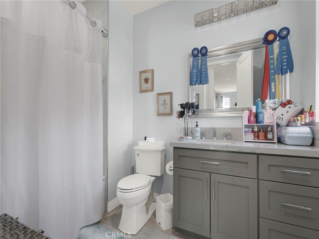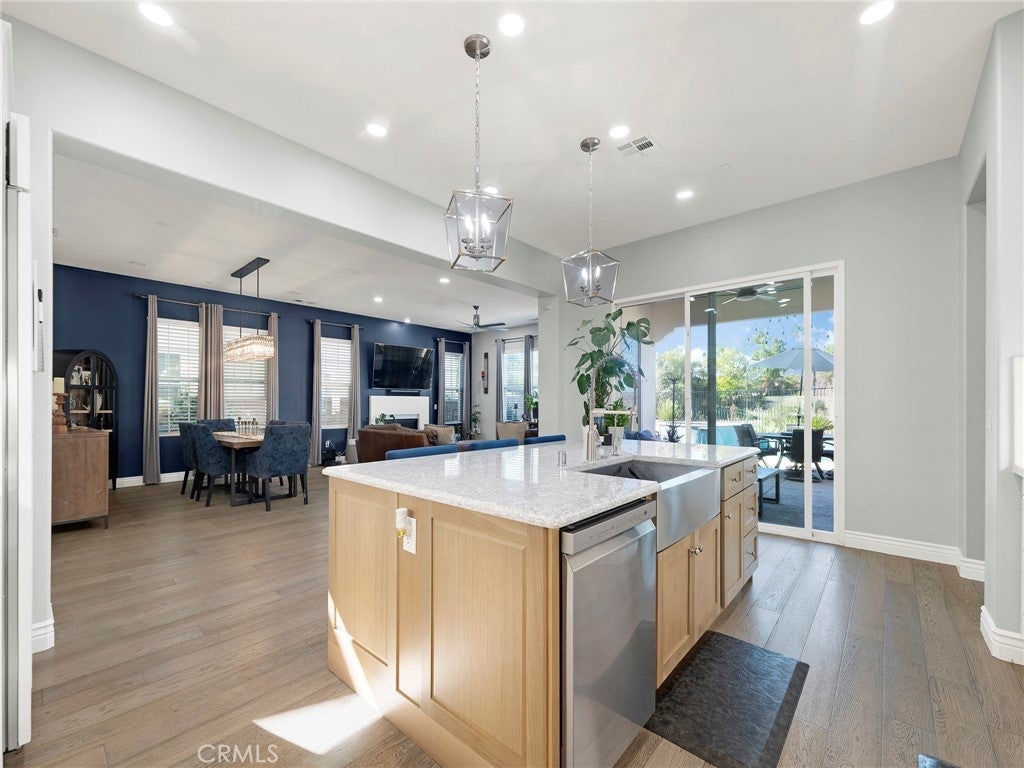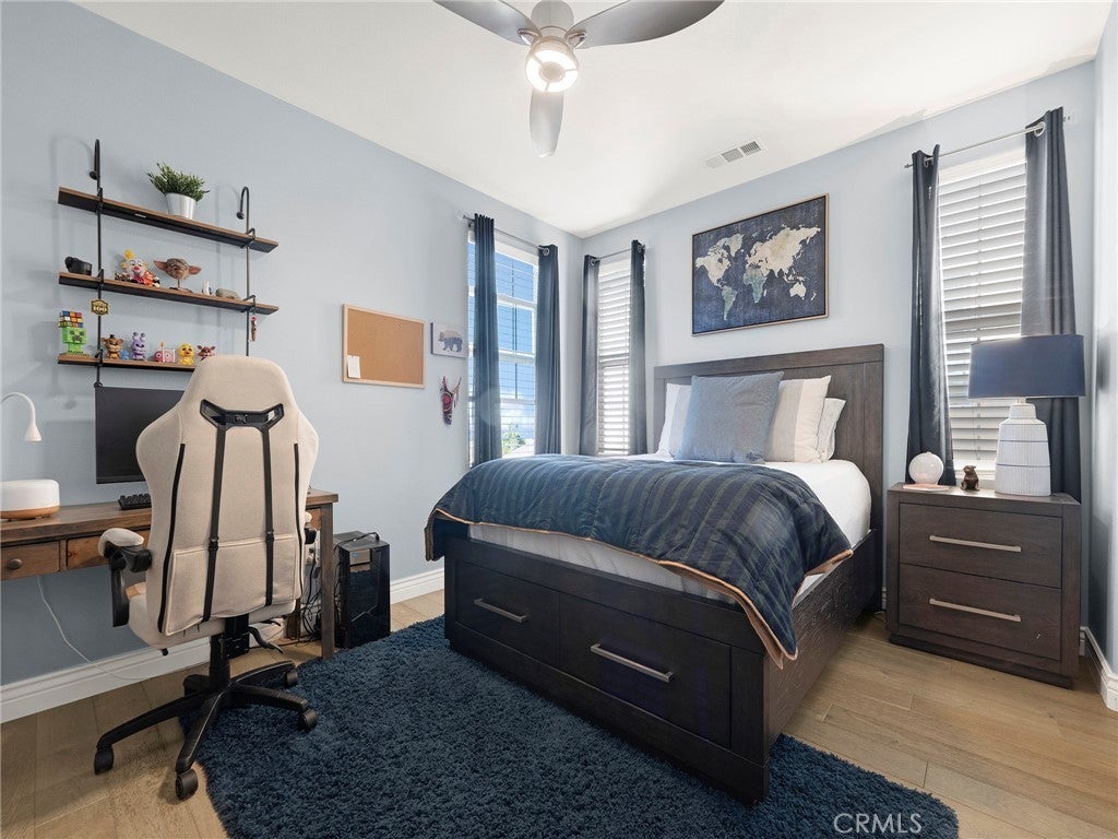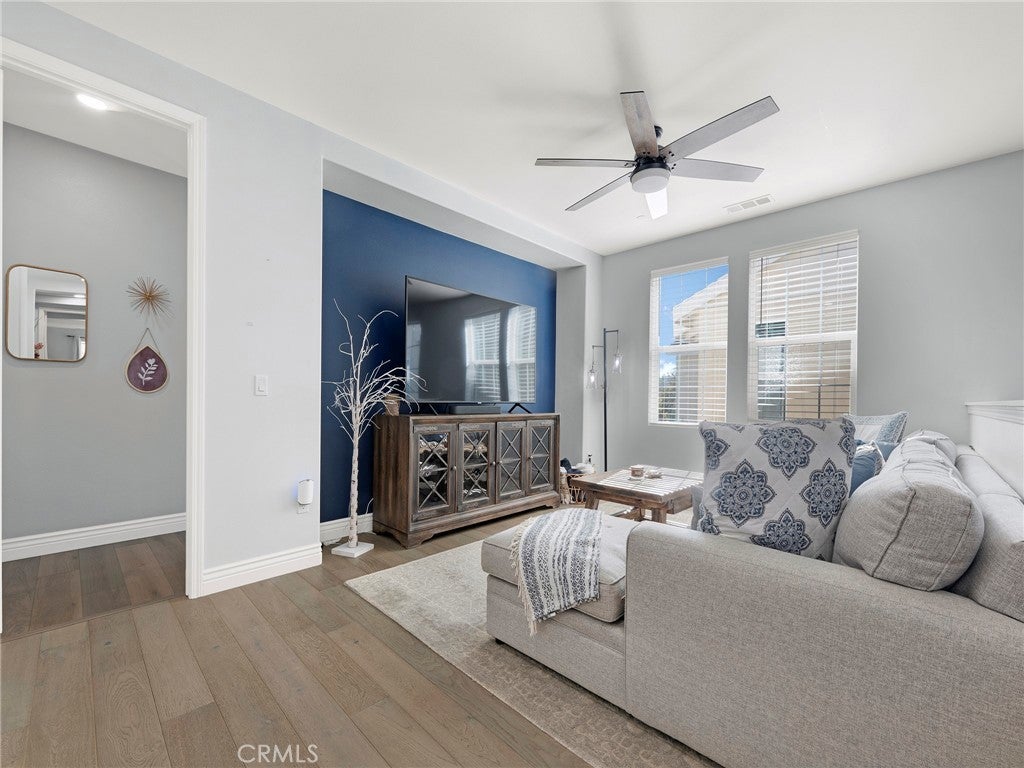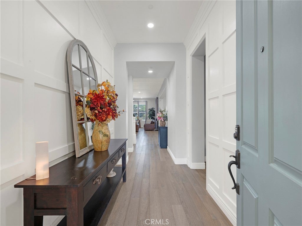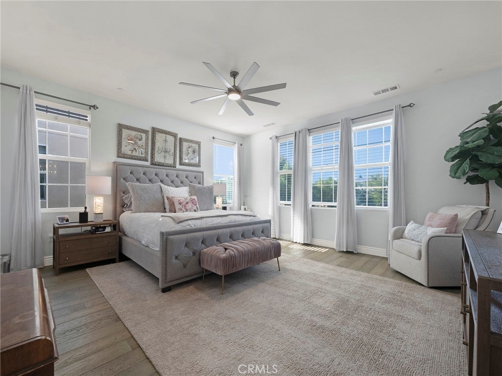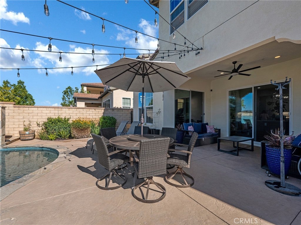 Prepare to be captivated by this stunning, customized residence nestled within the prestigious, guard-gated community of The Heights in Five Knolls. You will feel the designer luxury the moment you enter, with soaring ten-foot ceilings and abundant natural light illuminating the French oak engineered floors throughout the first level. This spacious home offers five flexible bedrooms, including the convenience of a potential downstairs primary suite. The gourmet kitchen is a chef's dream, showcasing exquisite Cambria stone countertops and backsplash, a professional Sub-Zero refrigerator, a wine fridge, and a custom-enlarged center island. Upstairs, the lavish primary suite is a true spa-like sanctuary, complete with a soaking tub, walk-in shower with bench, and a beautifully designed custom closet system. An airy loft provides versatile secondary living space, and the home is equipped with impressive features like fully-paid solar power, separate dual-floor AC, tankless water heaters, and a Rayne whole-house water filtration system. Step outside to your private oasis featuring a beautiful pool and spa with Baja shelves and built-in stools. A dog run and 3 car garage are also coveted features. As an added benefit, the community offers a luxurious clubhouse with a large pool, spa, and a dedicated dog-friendly park. This custom home is the pinnacle of turnkey Santa Clarita luxury.
