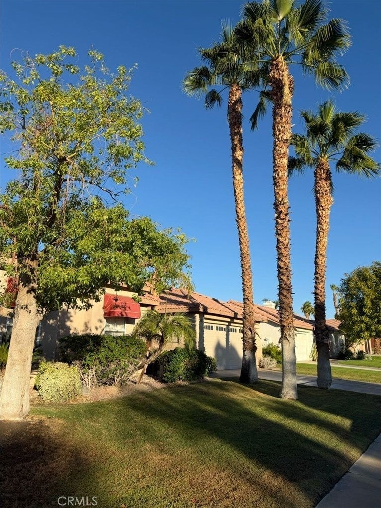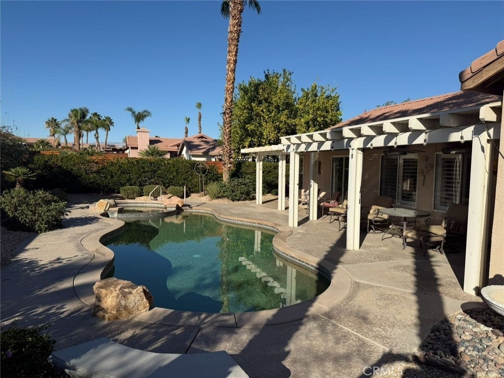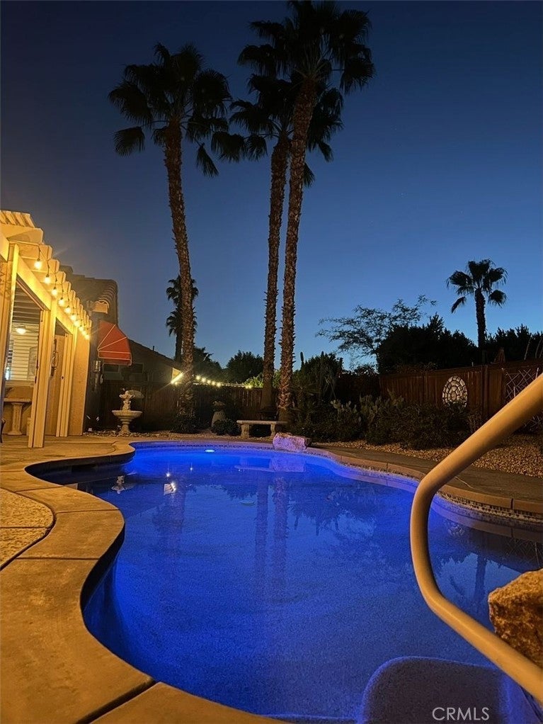 Cozy, bright, with high ceilings 3 beds 2 baths retreat house is located in one of the quiet and clean areas of sunny Palm Desert. Very well maintained and kept house has lots to offer: from wide opening double doors to an airy and spacious formal living room which opens through the sliding doors to the oasis backyard with sparkling pool and warm spa, covered sitting area, beautiful landscape with gorgeous palm trees, cactus trees and flower beds. Spacious kitchen with vaulted ceilings opens up to the dining area and cozy family room with a fireplace. Master bedroom has an ensuite bathroom with a walk-in closet and separate area for the toilet. You also have an access to the backyard through a sliding door from the MB. There are 2 specious and bright bedrooms that share a full bathroom and a separate dining room for special occasions. Separate laundry area off of the 2car neat and clean garage. Fully furnished and equipped with all the appliances, TVs and patio furniture. Ready to move-in, just bring your clothes with you and make it your home!