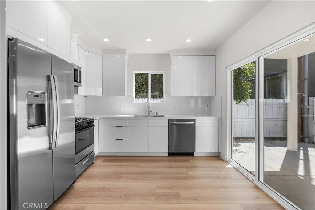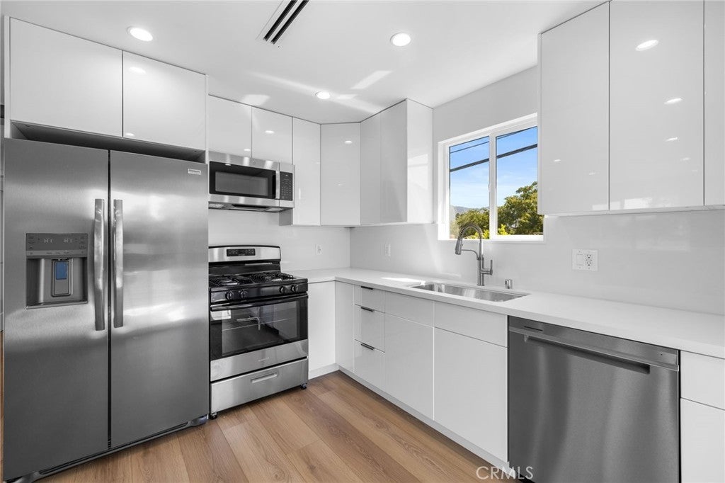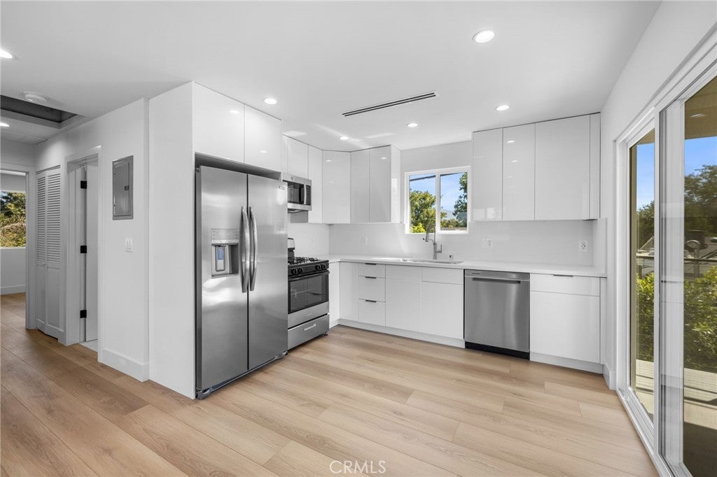 This a brand new construction with 3 new ADU's and a completely remodeled front house. Designed with a blend of innovative architecture, sustainability and efficient use of space, this is an ideal income property in which the new owner is able to set the rents as all units are vacant. The redesigned front house with its charming front porch, features 3 bedrooms and 1 3/4 baths, an open living space with high ceilings and a custom kitchen with stainless steel appliances and an eating area on the quartz topped island. There is also a laundry closet with a stackable washer and dryer. The one bedroom unit features 10 ft. ceilings and is attached to the back of the front house but has a separate entrance. It features a full bath, a laundry closet and custom kitchen cabinetry with quartz stone counters. The back two story structure consists of two new identical 2 bedroom, 1 bath units. The ten foot ceilings are featured throughout with an abundance of kitchen cabinetry and quartz counters. The downstairs units has a private patio off of the kitchen. The upstairs unit offers lots of natural light and view from several of the windows. There is also outdoor living on a generous sized balcony. These two units are newly built and therefore have completely paid for solar panels. All units feature tankless water heaters. There is also an attached single car garage. This new development provides an ideal combination of classic charm, advanced design and great income potential for all 4 units or an owner user for the front house. This makes it a perfect addition to a real estate portfolio. Projected income on these iunits could potentially be just over $14,000 a month
