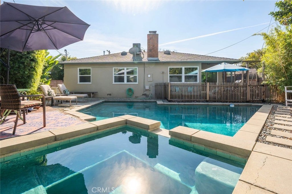 Welcome to this inviting North Hollywood retreat—a charming 1950s single-story bungalow offering comfort, style, and classic California indoor/outdoor living. Located on a quiet residential street in the heart of the Valley, this well-maintained home blends everyday convenience with a relaxed, welcoming atmosphere. The residence features three spacious bedrooms and two bathrooms, along with a bright open-concept living area filled with natural light. A cozy fireplace anchors the living room, while the updated kitchen offers ample cabinetry, built-in appliances, and excellent flow for daily living and entertaining. Warm wood-style flooring runs throughout, creating continuity and character. Step outside to a private backyard oasis complete with a sparkling in-ground pool, relaxing spa, and a large sun-drenched patio—perfect for lounging or entertaining. The fully fenced yard provides privacy and space to unwind. Additional highlights include a garage and driveway parking. Ideally located near the NoHo Arts District, NOHO West, major studios, freeways, shopping, dining, parks, and everyday amenities, this home offers an exceptional North Hollywood lifestyle. Gardening service, pool service, termite pest control, ADT security system, outdoor patio furniture, BBQ, and TVs are included. Interior staging furniture is optional. Pets will be considered.