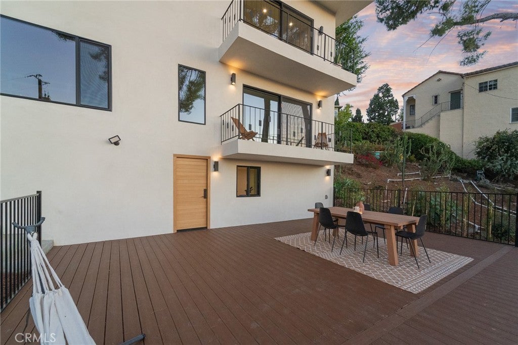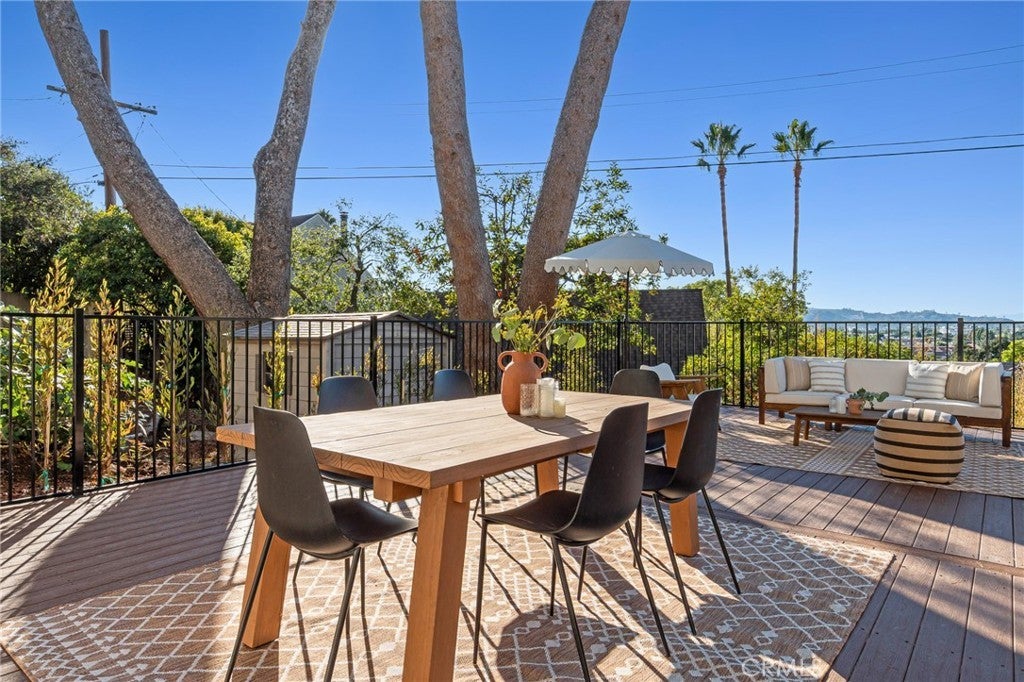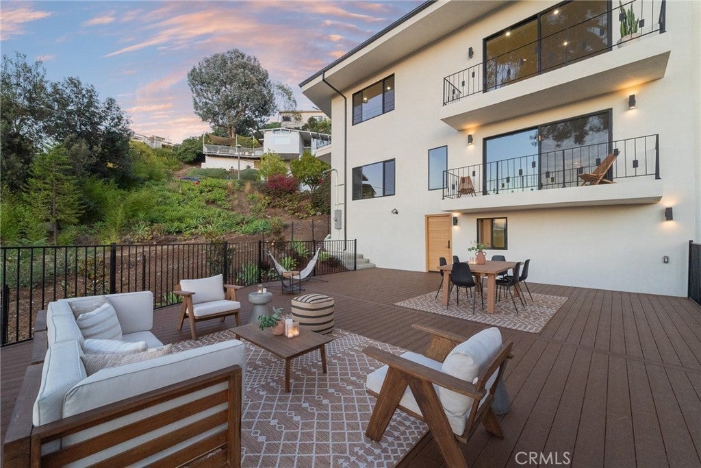 Views, Views, Views! Perched in Glendale’s coveted Adams Hill, 1117 Oberlin Drive is a 3,000 sqft fully reimagined organic modern home with spectacular views, timeless design, and refined craftsmanship. Flooded with natural light through the panoramic windows, the house features 3 large balconies with stunning views and offers a 220 sqft additional bonus recreation room with endless flexibility — gym, playroom, or home theatre. Ideally situated near Atwater Village, Silver Lake, and downtown Glendale, this home offers unbeatable access to some of L.A.’s most vibrant restaurants, bars, and entertainment hotspots—all just minutes away. The chef’s kitchen anchors the home with brand new stainless steel appliances, including a 48-inch double-oven range with 8 burners and griddle, a 47-inch refrigerator, a wine fridge, a dishwasher, and new custom cabinetry. The massive 12-foot island with waterfall stone finish offers abundant storage and seating, ideal for both everyday use and entertaining. A large formal dining room flows gracefully down to the living room, where high ceilings, a fireplace, and expansive windows frame panoramic views of Adams Hill. The living room opens to a spacious balcony, seamlessly blending indoor and outdoor living. The primary suite offers a fireplace, walk-in closet, and private balcony, with a spa-like bath featuring dual vanities, a soaking tub, and a walk-in shower. Two guest bedrooms capture stunning city views, one with direct access to a private patio and to the backyard through sliding doors, while a fourth en-suite bedroom provides perfect privacy for guests or a home office. Downstairs, the back door opens to a large entertainer’s deck surrounded by magnolia trees, privacy hedges, and lush native vegetation. A true retreat where design, comfort, and nature coexist in perfect harmony. Recent Enhancements & Structural Upgrades Include: Comprehensive foundation upgrades; smooth-finish stucco and seamless gutters; new bridge with concrete foundation, full plumbing repipe and new 1-inch main line with tankless water heater and sump pump; new 5-ton A/C system with ducts and custom grills; all-new electrical wiring and panel, new recessed lighting; newly framed bedroom, bath, and stairway; new windows and solid white-oak doors; new Trex deck and metal railings; waterproofed balconies with new tile; and new luxury looking epoxy-finished large garage (433 sqft) with high ceilings and new motorized door.