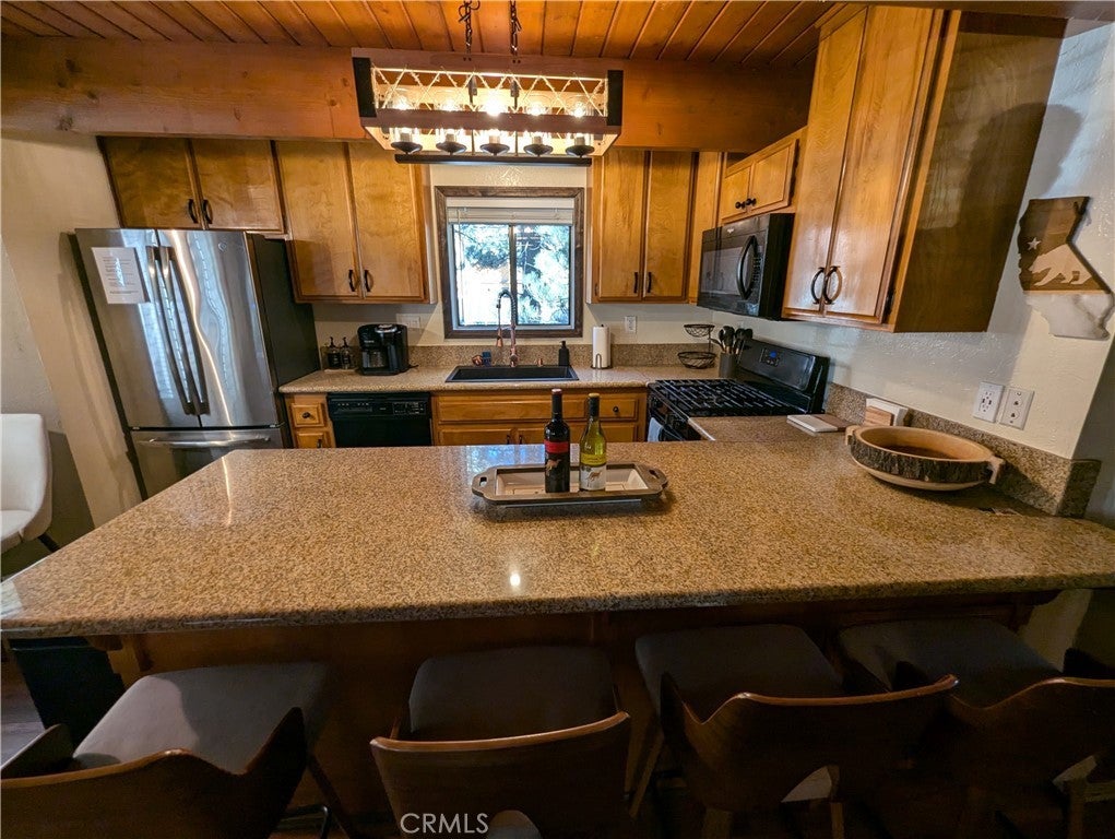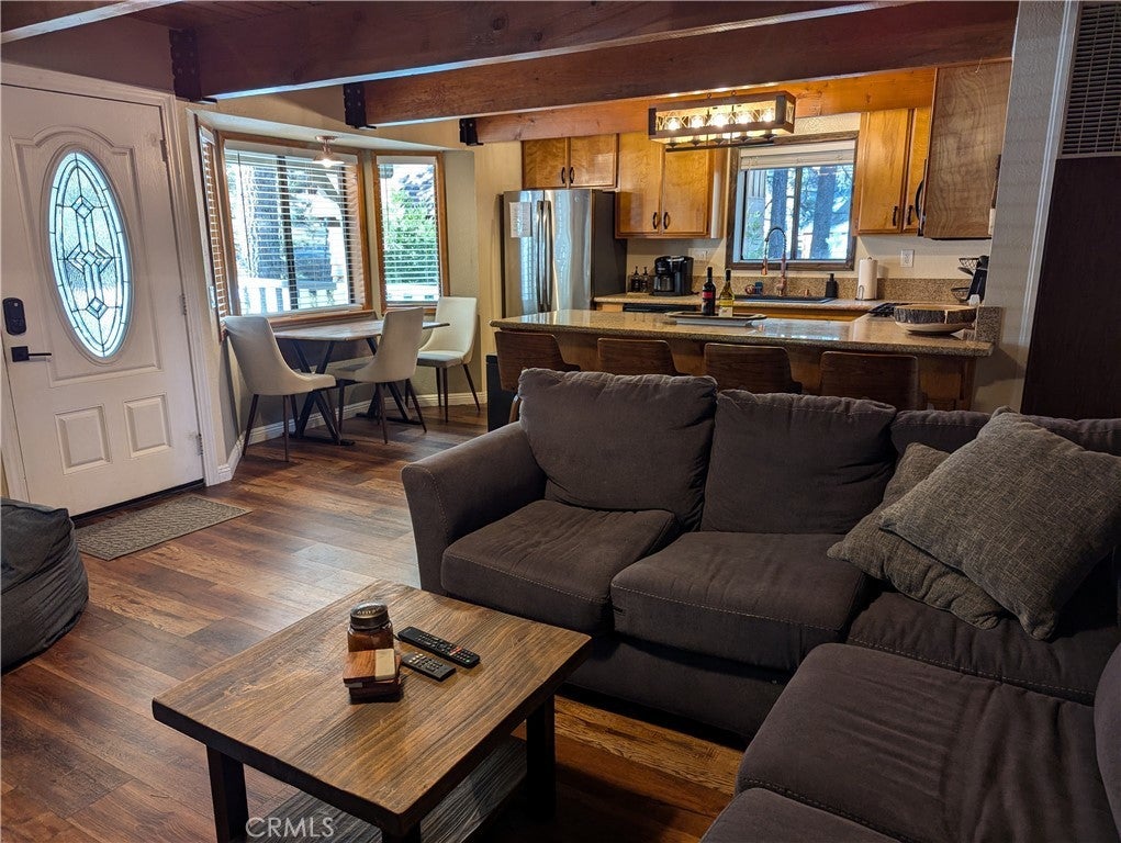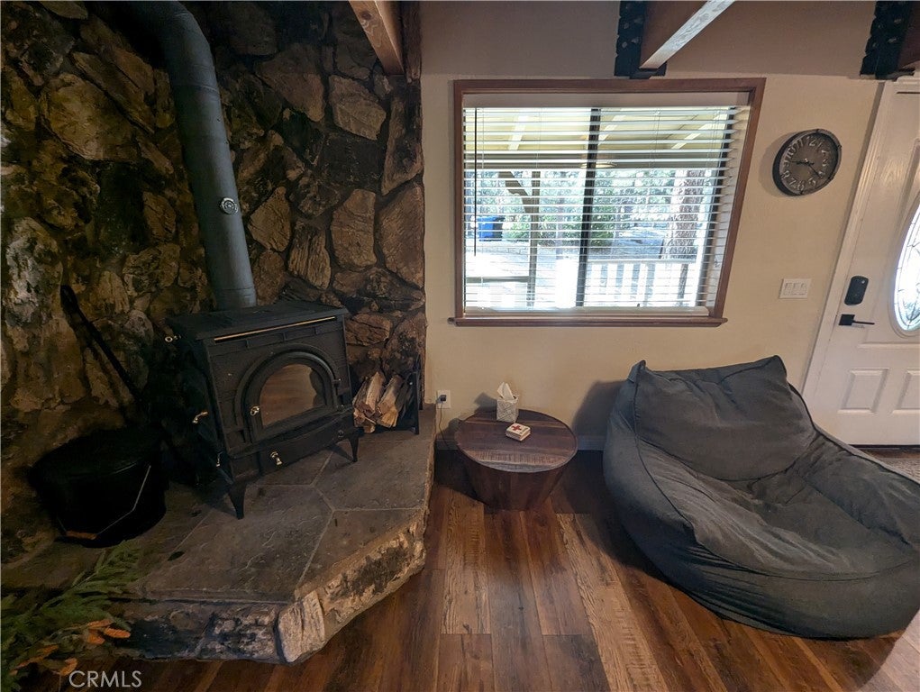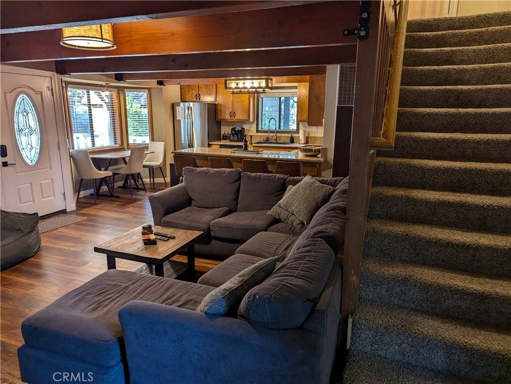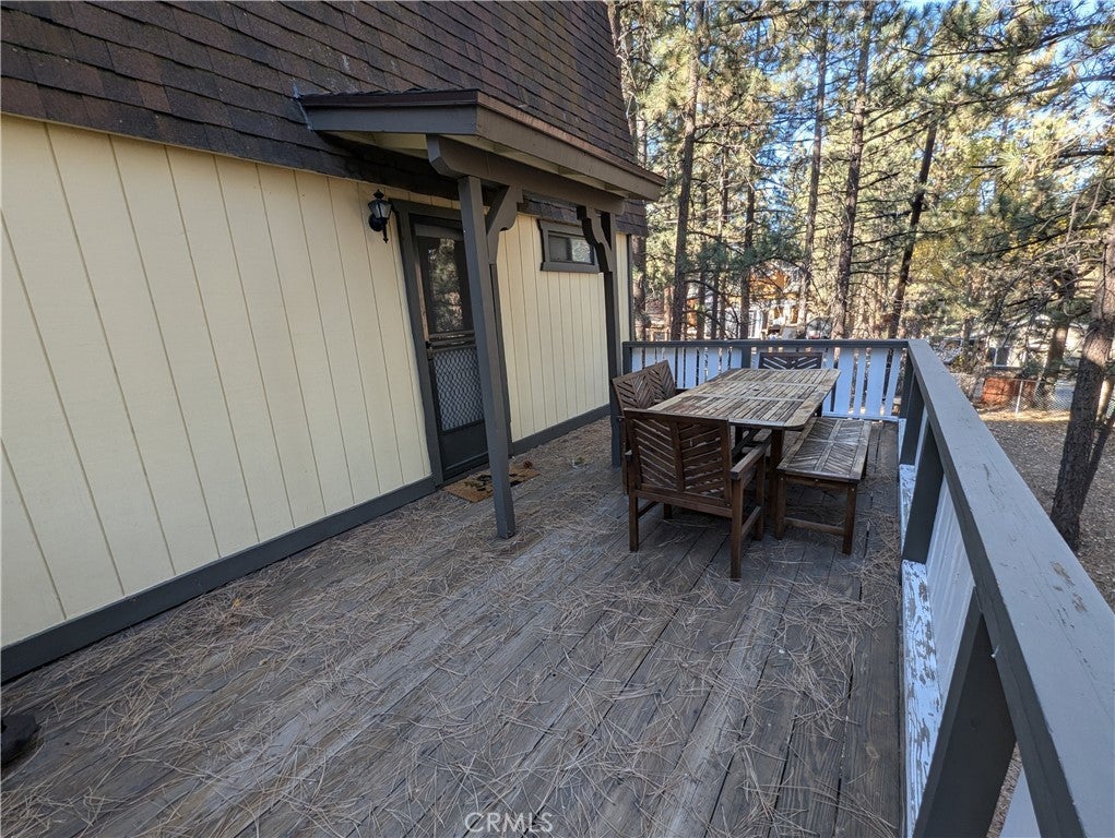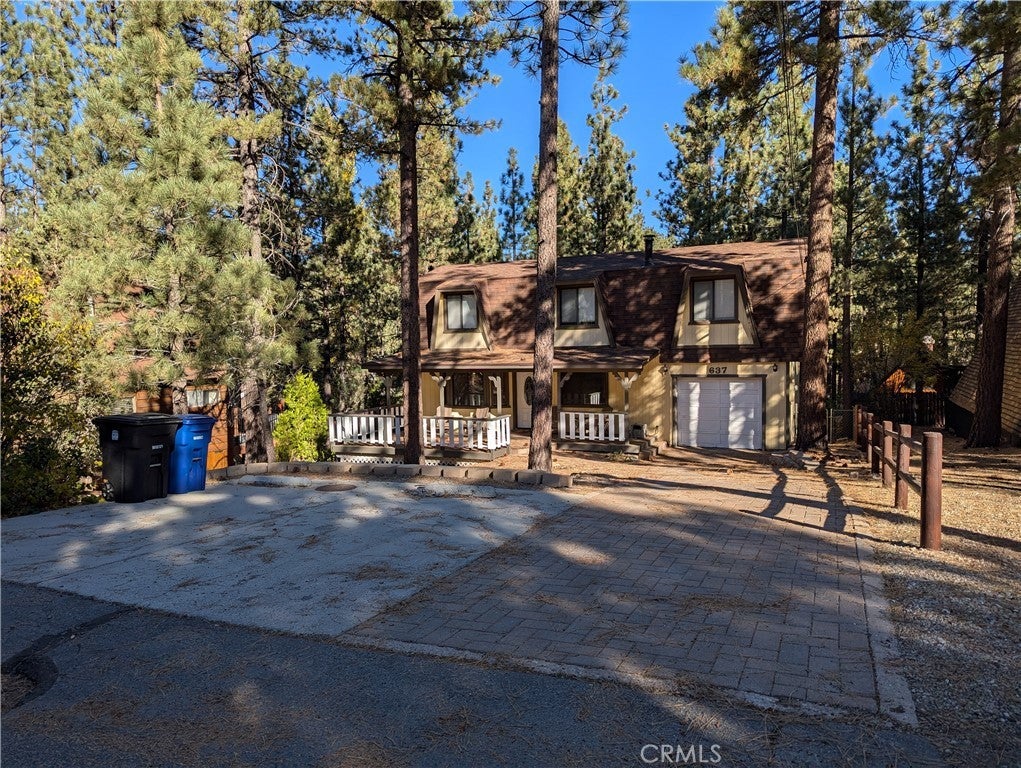 Welcome to this charming gambrel-style property, centrally located in the heart of Big Bear, California. Perfectly suited as either a short-term rental or a primary residence, this home is currently permitted for short-term rentals and comes fully furnished, ready for immediate occupancy or guest hosting. Ideal for year-round adventure seekers, it offers quick access to mountain biking, hiking, and fishing in the summer, and skiing and snowboarding in the winter. Inside, dual-pane windows fill the home with natural light, highlighting the warmth and ambiance of the wood-burning stove in the living room. The kitchen is tastefully updated with newer appliances and granite countertops, while a convenient half bath and laundry hookups complete the main floor. Upstairs, you’ll find three bedrooms, including a primary suite with an ensuite bath, and an additional full bathroom. Outside, enjoy spacious wood decks at both the front and back, perfect for relaxing or entertaining. The fully fenced backyard and generous concrete-paved parking area add practicality, ensuring ample room for friends and family. Located just 10 minutes from Big Bear Airport, this property is a fantastic investment or mountain escape.