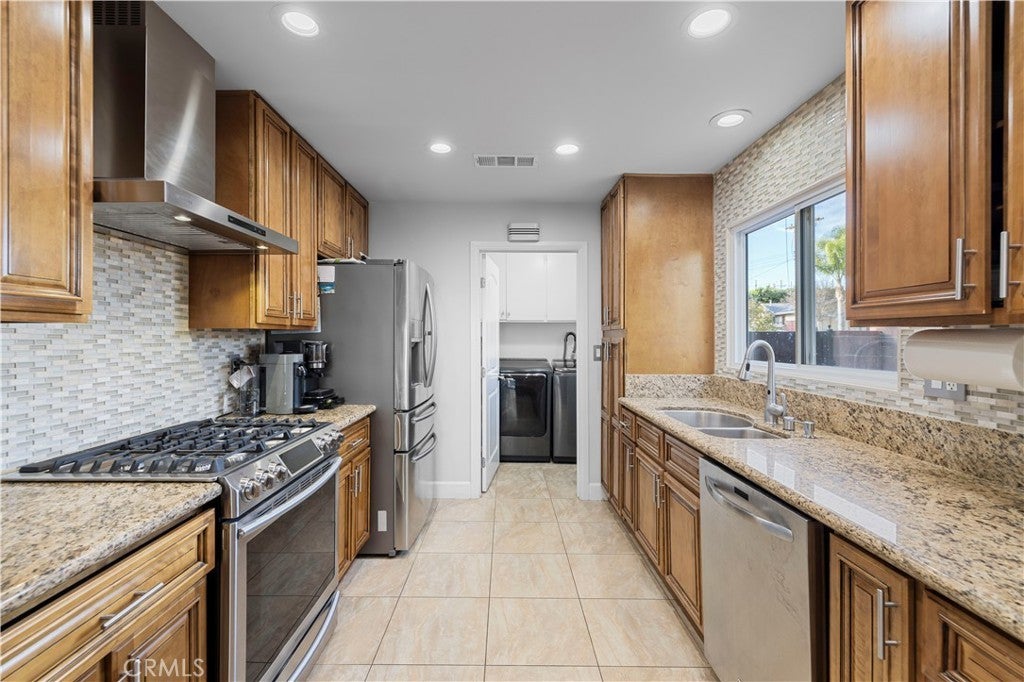 Welcome to 9434 McLennan located at the end of a quiet cul-de-sac. This home offers strong curb appeal with a stacked stone archway entry, custom wood garage door, and double doors featuring smoked glass and wrought iron inlay. Enter inside to an beautiful open layout, complemented by crown molding and recessed lighting. The home features 3 bedrooms and 2 bathrooms in approximately 1,700 sq ft on a nearly 7,700 sq ft lot. The kitchen includes stainless steel Samsung appliances with a 5-burner range, walnut cabinetry, and separate laundry area and pantry. An arched entry leads from the dining area to the living room with a wood-burning tile fireplace and wood mantle. The primary suite offers a walk-in closet, and ensuite bath with granite counters and a tub with glass enclosure, plus access to a private balcony. The backyard is designed for entertaining with slate flooring, a covered patio with high ceilings, and a large gas firepit. This one is ready to call home!