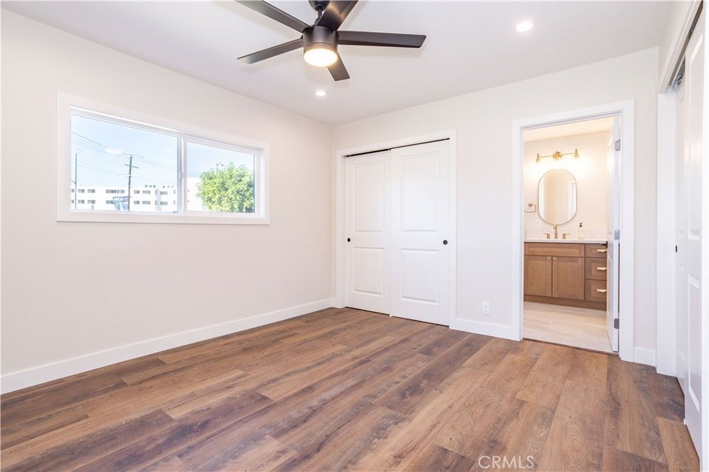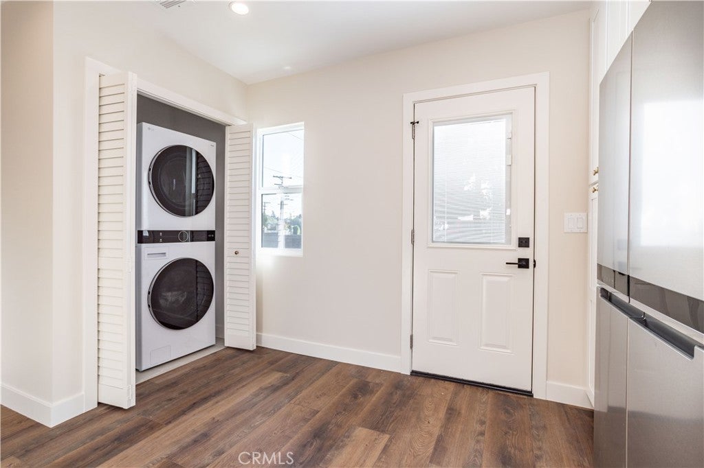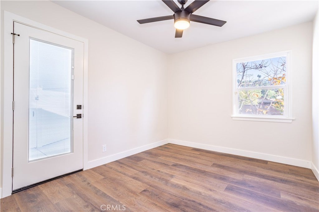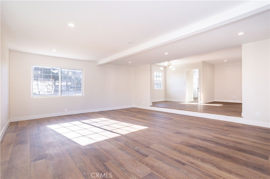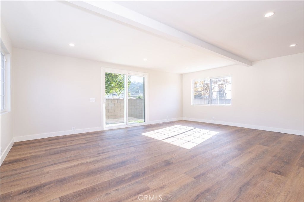 Beautiful freshly remodeled 3-bedroom 2-bath home in prime Sun Valley area with large lot adjacent to Burbank. The spacious interior features open concept living and family rooms, a refined separate dining area with modern chandelier, a large & bright kitchen boasting brand new appliances – including refrigerator, dishwasher, oven range, microwave, washer & dryer, and abundant cabinet space. The new stacking washer & dryer set is discreetly located in the kitchen nook, and a convenient kitchen side door leads to a generous lot of over 9K square feet. The primary bathroom features a beautiful walk-in shower with upscale finishes and wall cabinetry. Towards the back, the rear bedroom opens to a newly paved, smooth-concrete side yard that connects to the garage entrance. Extending from here, the concrete walkway leads to an outdoor space with gorgeous mountain views, a variety of fruit trees, and a wrap-around path to a side yard offering an expansive green space. Each bedroom is equipped with modern ceiling fans and wall-secured remotes. Recessed lighting & dimmable light switches and beautiful new faux-wood window blinds throughout; premium vinyl flooring; and a new electrical panel are among more of the numerous upgrades. Full use of 1.5 car garage for storage and parking included in monthly lease. Come see this beautiful remodeled home on a generous lot near the Hollywood-Burbank Airport, Woodbury University, vibrant Burbank shopping, and easy freeway access!