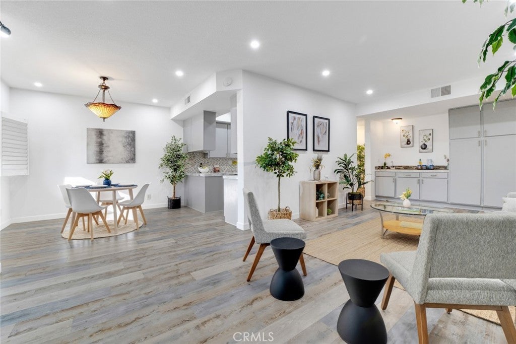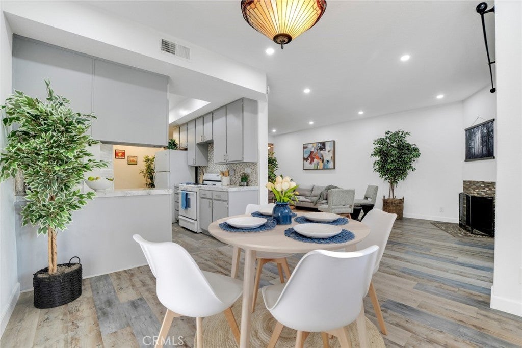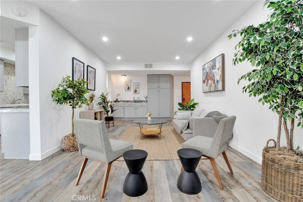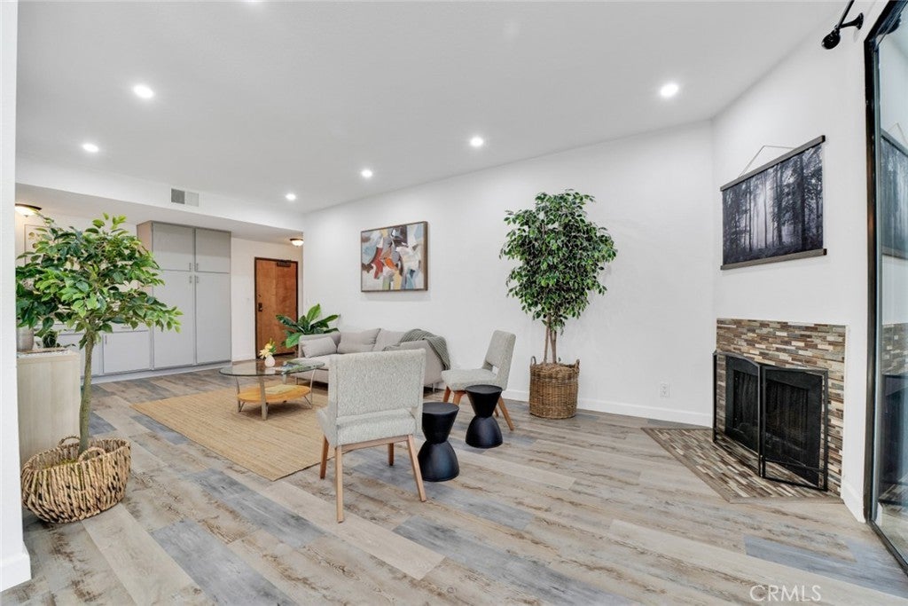Modern elegance blends seamlessly with resort-style living in this stylish 2-bedroom, 2-bath condo set in the heart of Sherman Oaks. The expansive living area showcases plank flooring, a cozy fireplace, wet bar, and dining space, all flowing effortlessly to a generous balcony overlooking tranquil tree-lined views. The refreshed kitchen provides abundant cabinetry and a convenient in-unit laundry area. Retreat to the serene primary suite, complete with its own private balcony, a walk-in closet, and a spa-inspired bath featuring a deep soaking tub. Situated in a beautifully landscaped, resort-like community, residents enjoy two sparkling pools, a fitness center, and an inviting clubhouse—just minutes from premier shopping, dining, and all that Sherman Oaks has to offer.