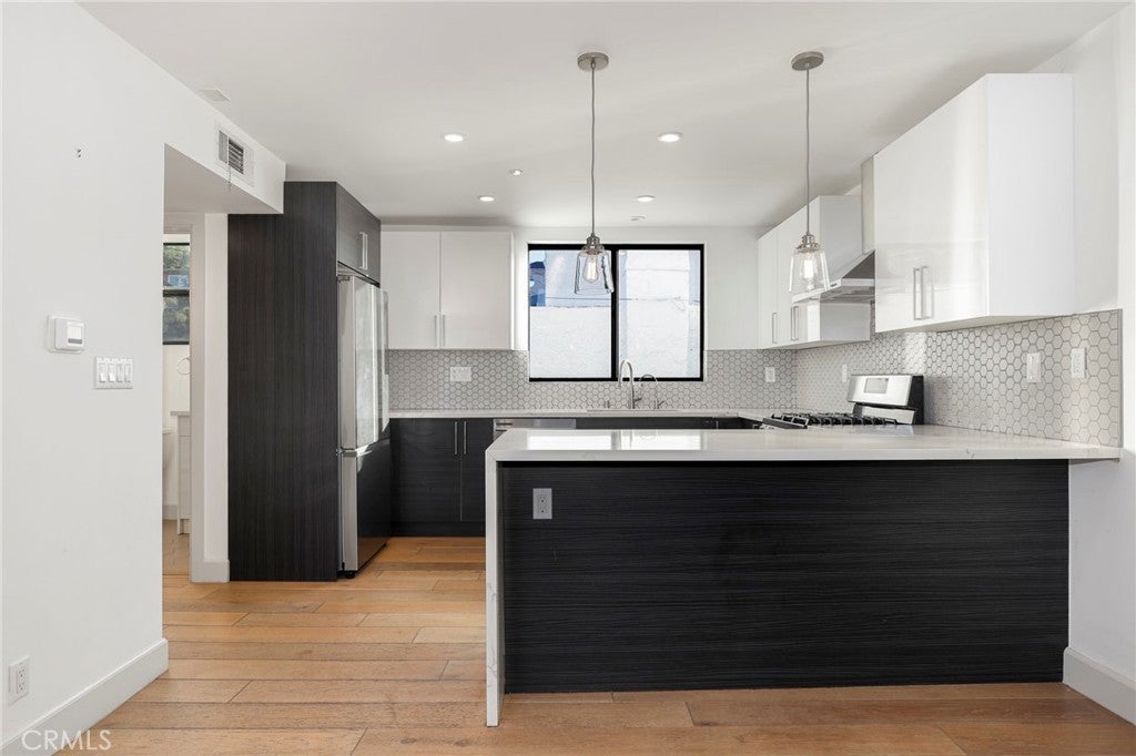 Nestled in the vibrant heart of Silver Lake, your new home at Glendale 5 is a masterpiece crafted by the award-winning William Adams Architects, specifically designed with the discerning professional in mind. This exceptional residence embodies the pinnacle of modern living, where every detail has been meticulously curated to offer an unparalleled lifestyle. As you step inside, you are greeted by the warmth of European oak flooring that flows seamlessly throughout the open-concept living space. The elegant design of the living room invites both relaxation and sophistication, providing the perfect backdrop for entertaining guests or enjoying quiet evenings at home. The high-quality finishes extend to the upscale kitchen and bath fixtures, ensuring that every aspect of your living experience is infused with luxury. This home boasts two expansive primary suites, each a private sanctuary designed for comfort and tranquility. The thoughtful layout allows for an abundance of natural light, creating an inviting atmosphere that makes you feel right at home. Additionally, the charming mezzanine offers a versatile space that can serve as a third bedroom or an inspiring office, overlooking the main living and dining areas. One of the standout features of your residence is the private rooftop deck, positioned 35 feet above the ground. From this vantage point, you can enjoy breathtaking views of Silver Lake, making it the ideal spot for morning coffee, evening gatherings, or simply unwinding after a long day. At Glendale 5, you are not just acquiring a residence; you are embracing a lifestyle that celebrates sophistication, comfort, and the unique spirit of Silver Lake. Your new home awaits, ready to offer you an extraordinary living experience.