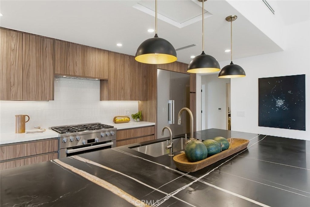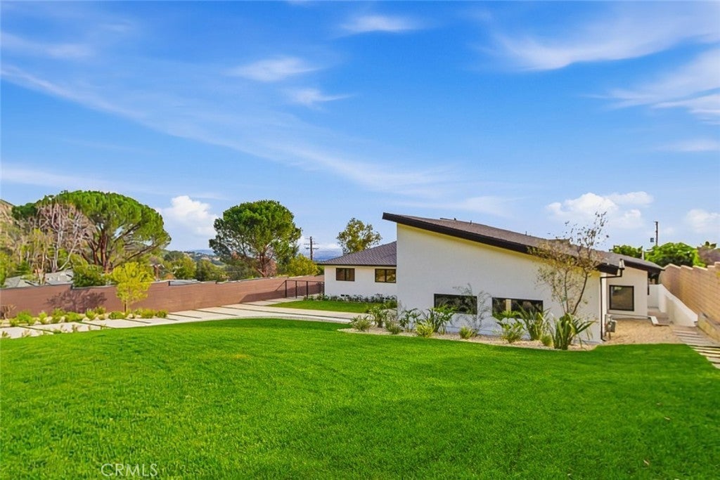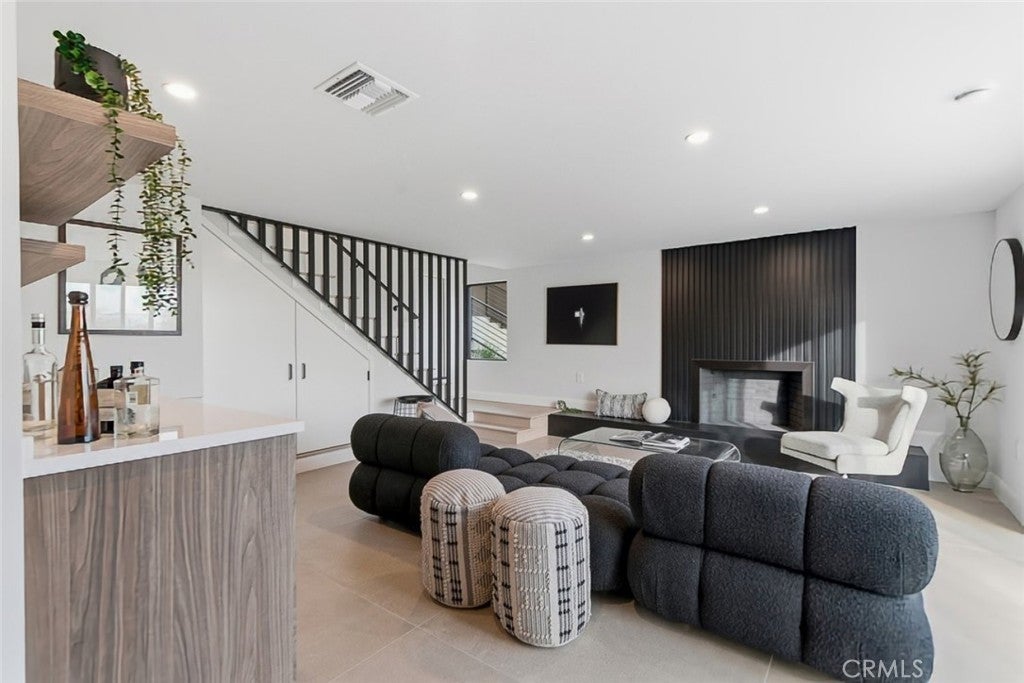 Welcome to this stunning fully remodeled residence offering 4 bedrooms and 4 bathrooms with over 3000 square feet of thoughtfully designed living space. Completely rebuilt down to the studs, this home showcases quality craftsmanship, modern design, and functional luxury throughout. The expansive open floor plan features bright living areas, recessed lighting, and seamless indoor outdoor flow ideal for both everyday living and entertaining. The chef inspired kitchen is a true centerpiece, highlighted by an oversized island, premium Miele appliances, abundant cabinetry, and a dedicated pantry for added storage and convenience. A separate laundry room enhances everyday functionality. A spacious downstairs family room offers flexible use and can easily function as a fifth bedroom, guest suite, or home office. This space provides direct access to the backyard, creating effortless connectivity to the outdoor living areas. Outside, you'll find a beautifully upgraded yard featuring new pool plaster and updated hardscaping, designed for relaxation and entertaining. The newly added patio deck with fireplace creates a perfect setting for gatherings or quiet evenings at home. This exceptional property combines modern upgrades, flexible living space, and resort style outdoor amenities, delivering comfort, style, and sophistication in every detail.